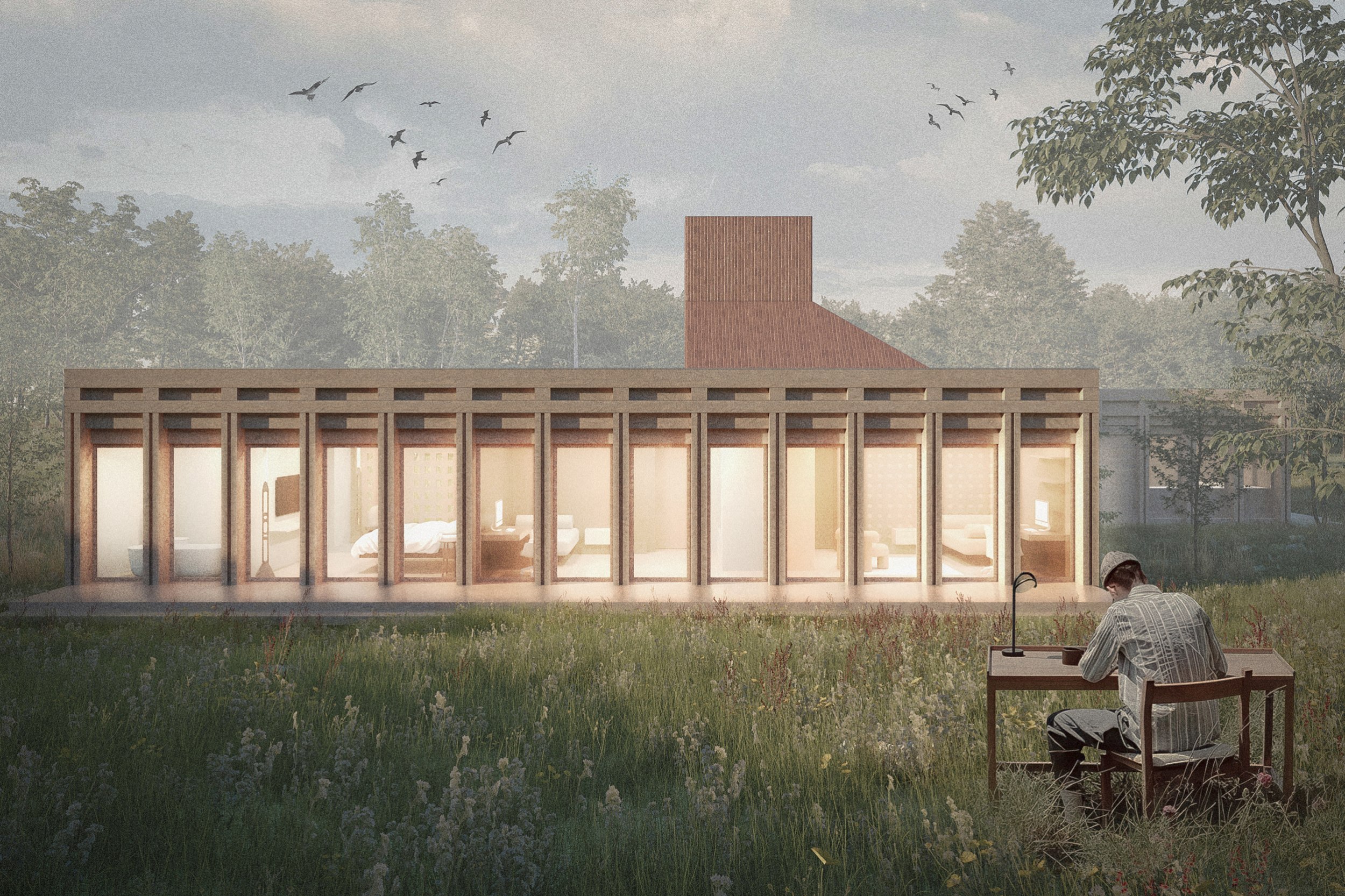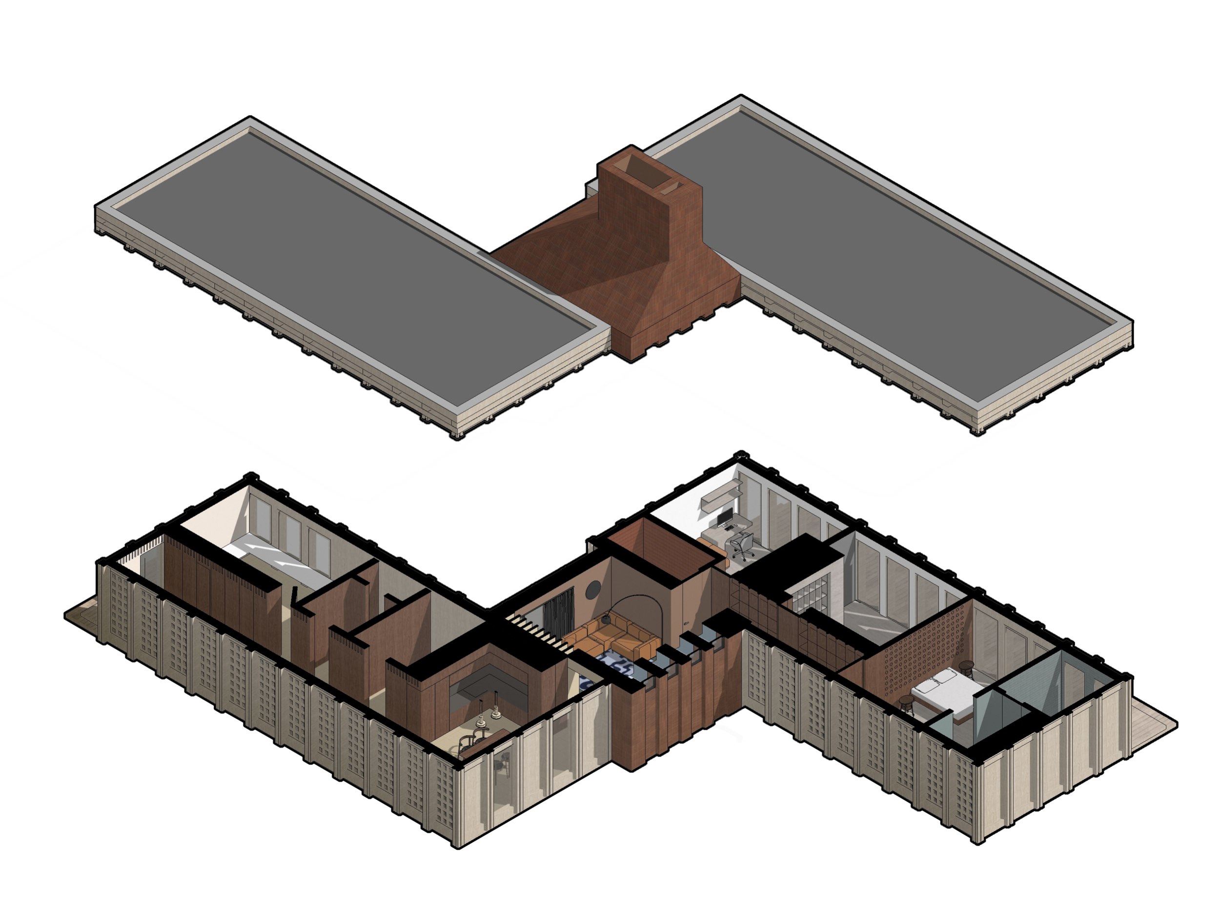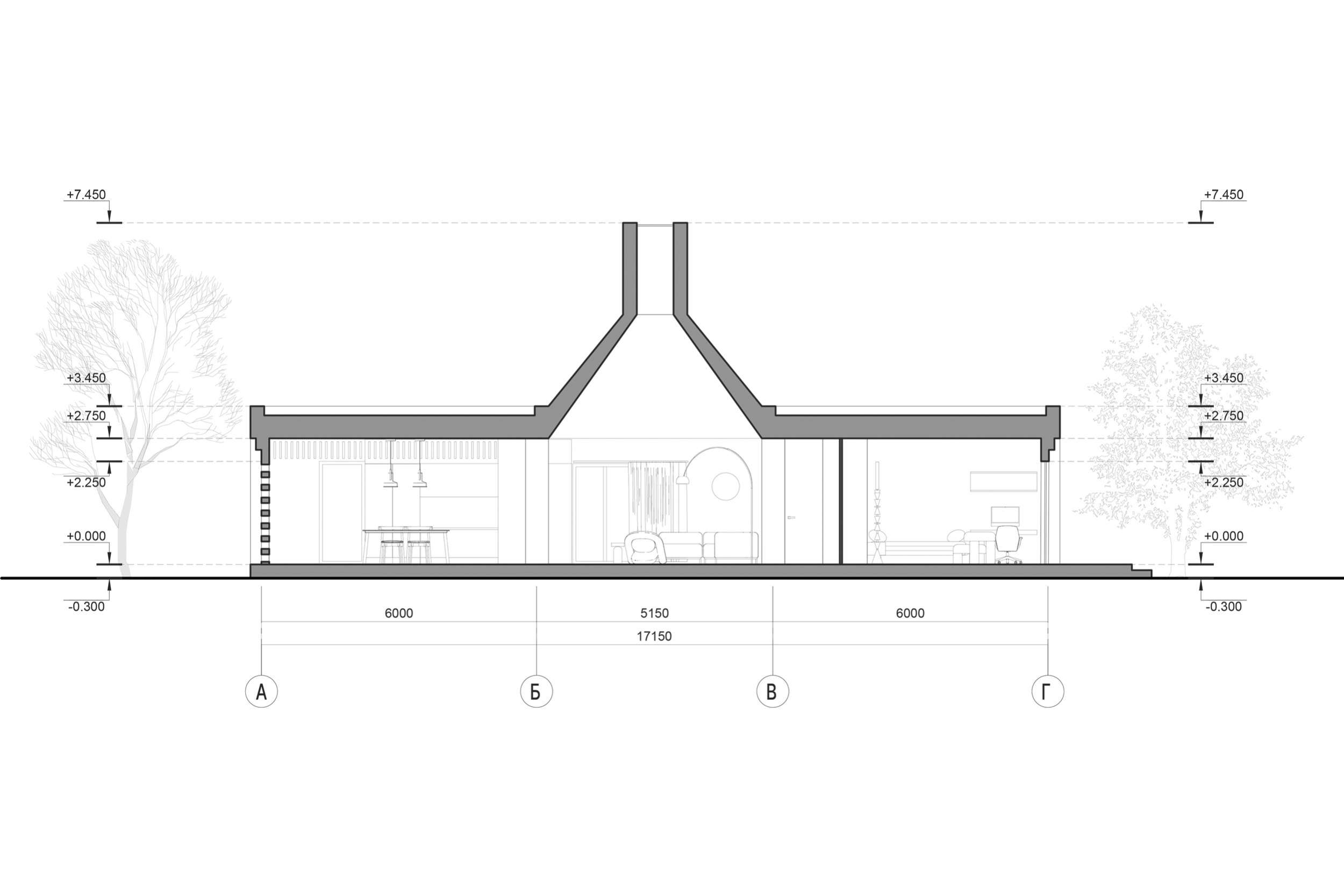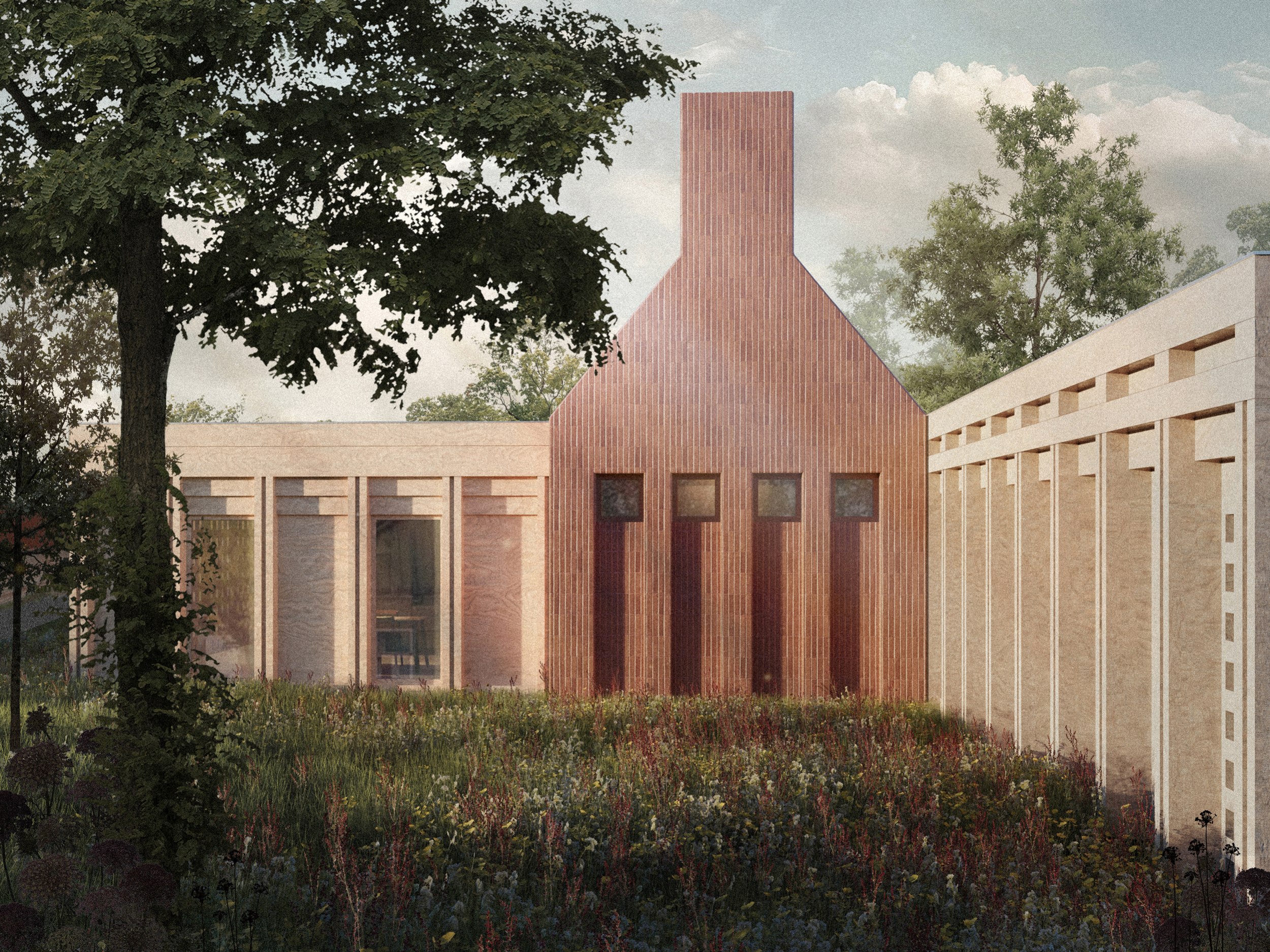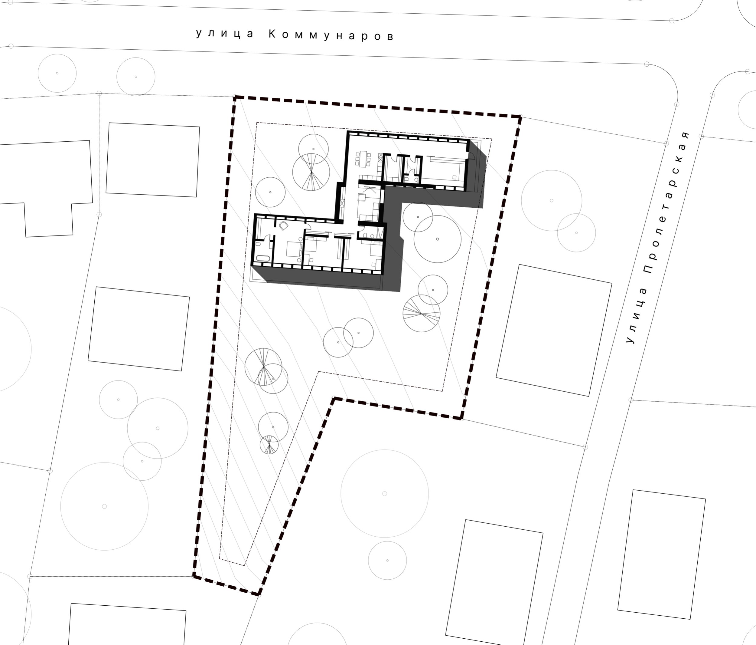 Архитектура Дома – это размышление на тему воронежского вернакуляра в современной русской архитектуре. Каким может быть современный русский дом, и как этот дом может рассказать о своей «русскости» прохожему, без прямого цитирования традиционных орнаментов? В поисках ответа мы пришли к, с одной стороны, случайной, с другой стороны очень понятной и лаконичной, почти брутальной, форме.