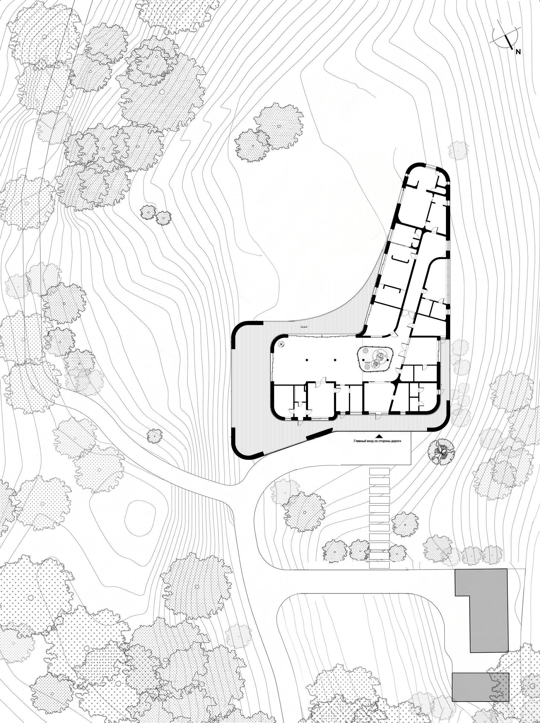 История этого проекта началась с частной рекомендации: к нам обратился заказчик с запросом на загородный объект в очень сложной труднодоступной природной локации. Главным условием была максимальная камерность. В силу строгой конфиденциальности и особого статуса территории, точные данные (координаты участка и кадастровый номер) остаются закрытыми даже на этапе проектирования, детали клиент предпочел не раскрывать. Но даже в условиях такой секретности мы с головой погрузились в общий контекст и глубокий анализ ландшафта. Так и родились «Холмы».