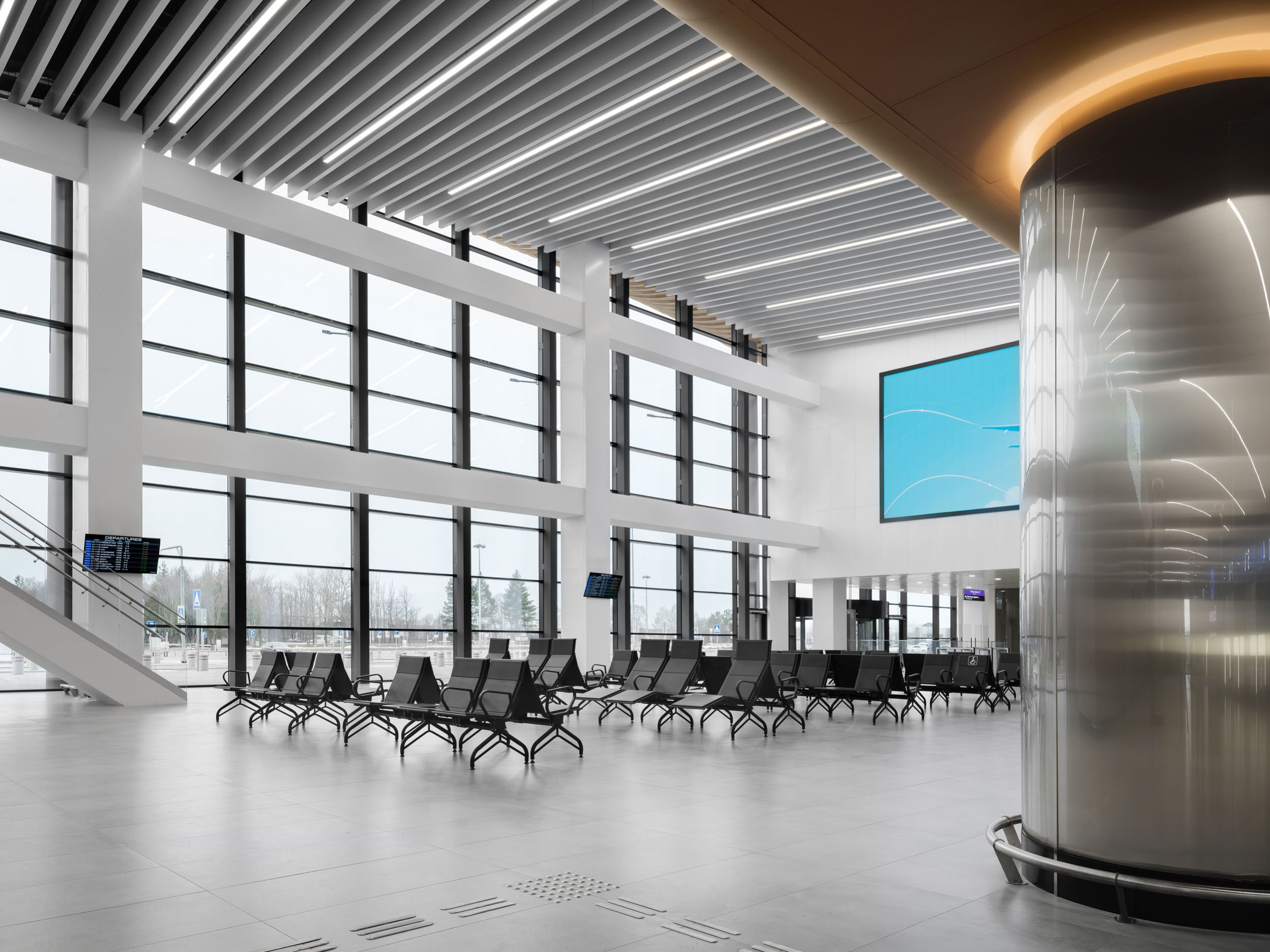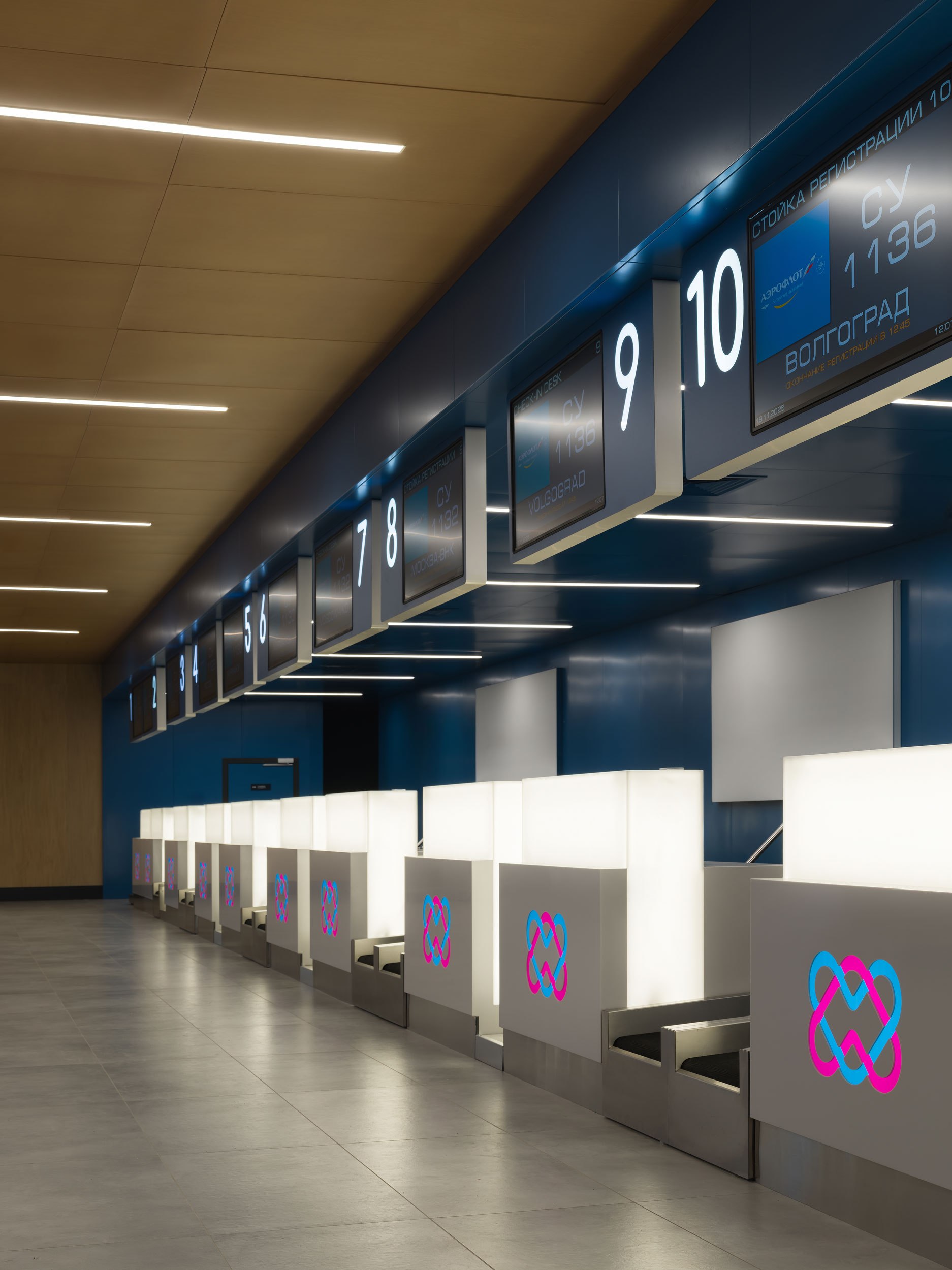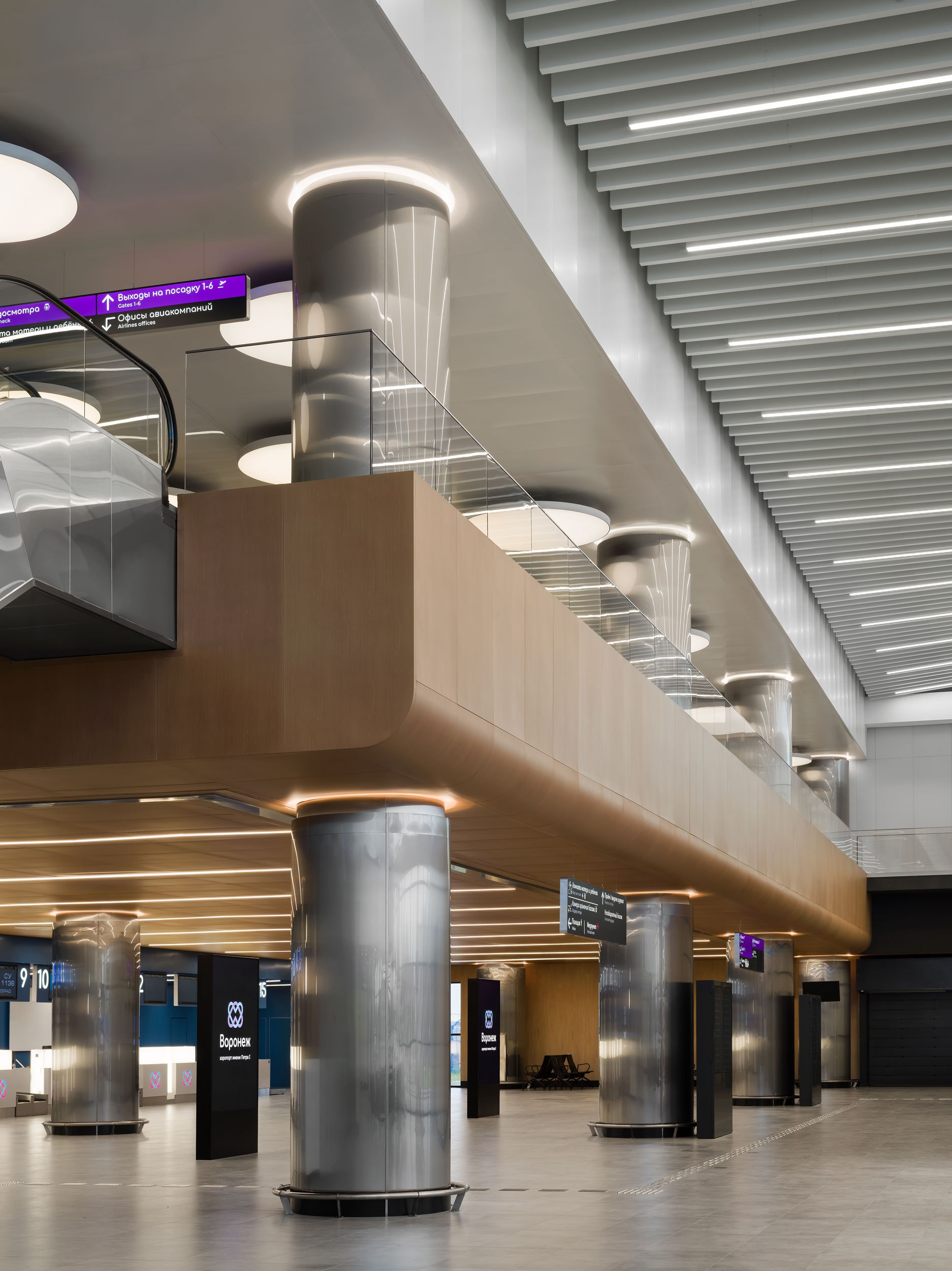 Проект сочетает архитектурную выразительность, технологические решения и культурный код Воронежа, превращая терминал в пространство, где пассажир ощущает комфорт, безопасность и смысловую глубину каждого элемента интерьера