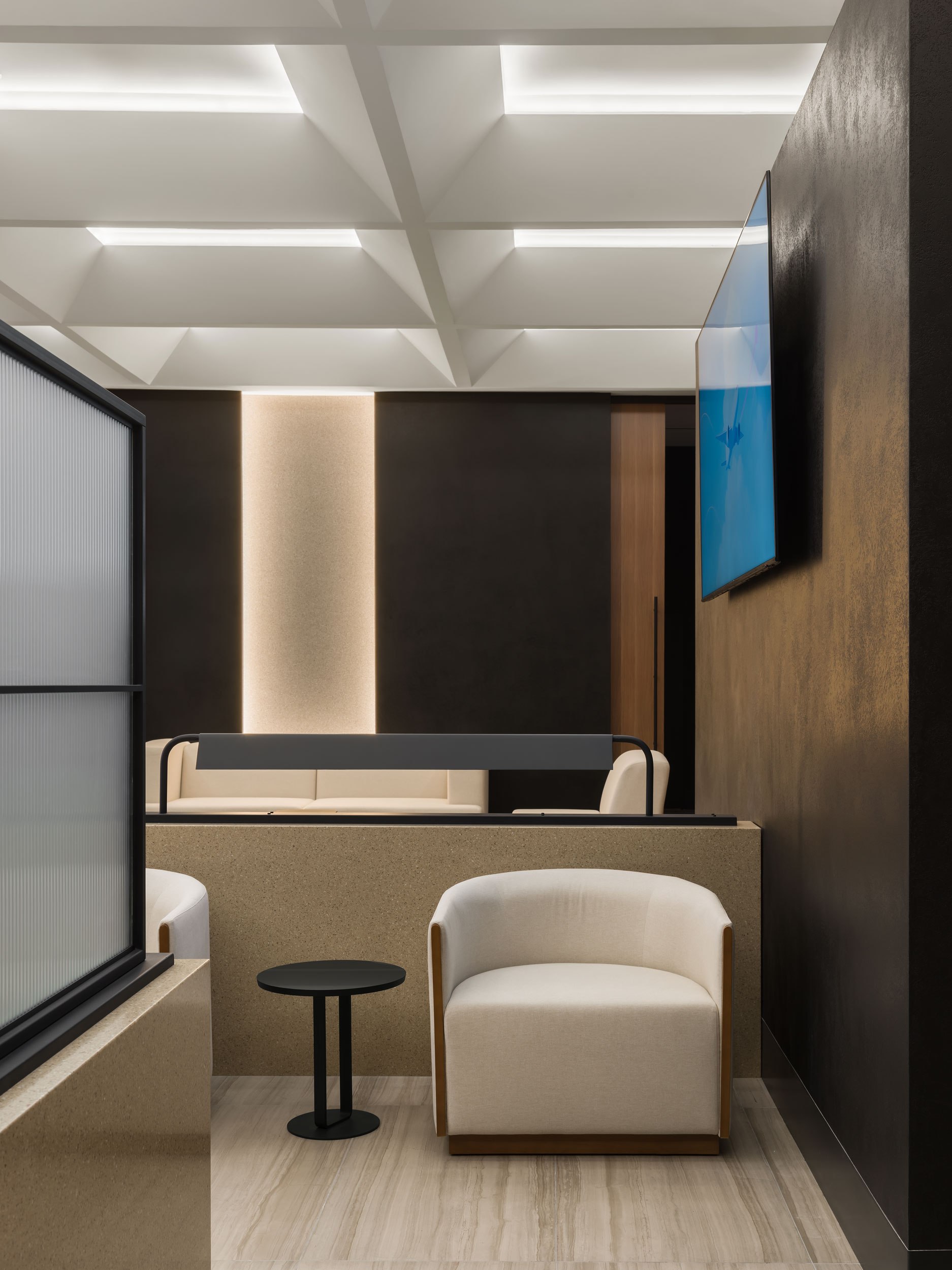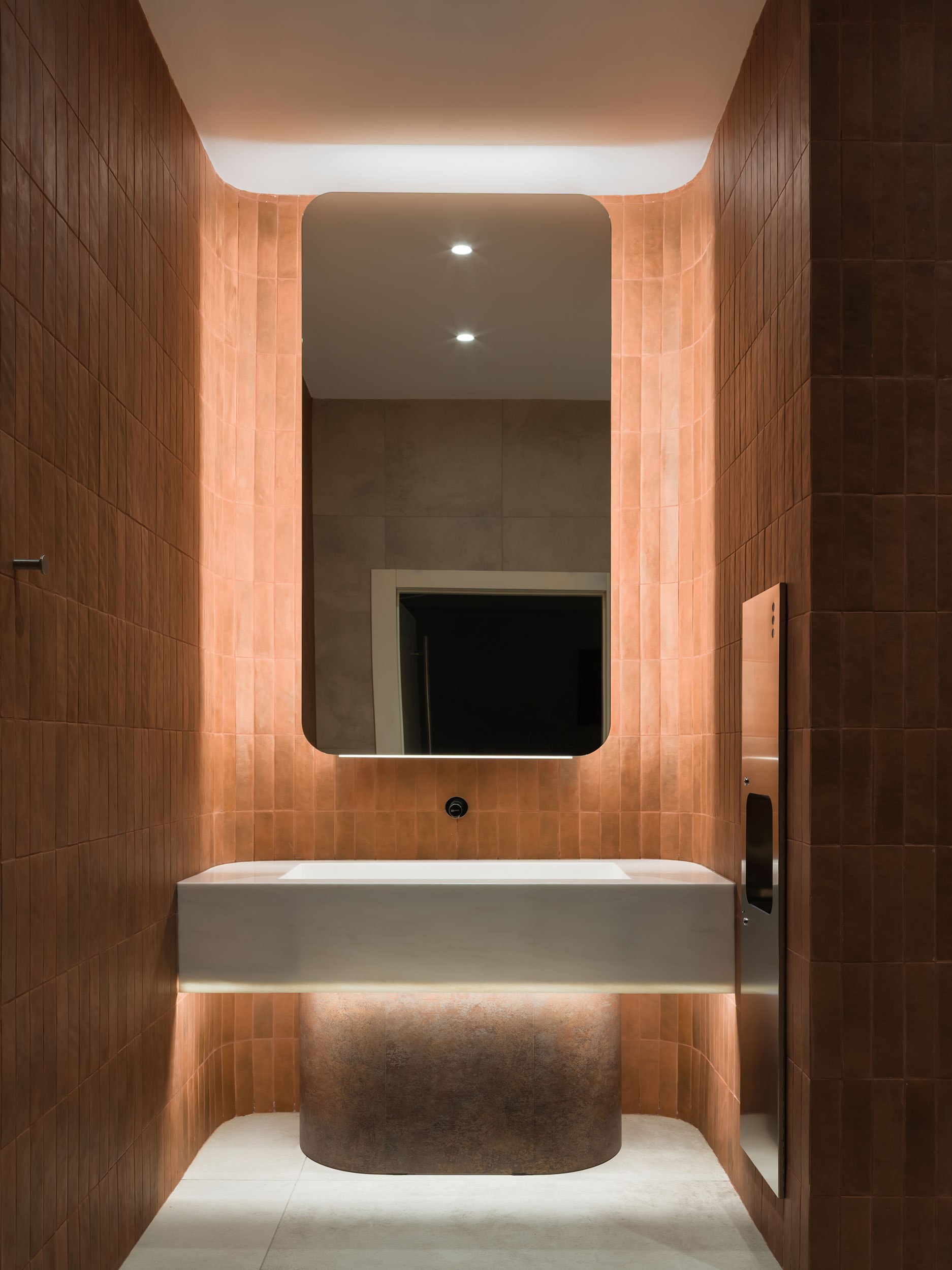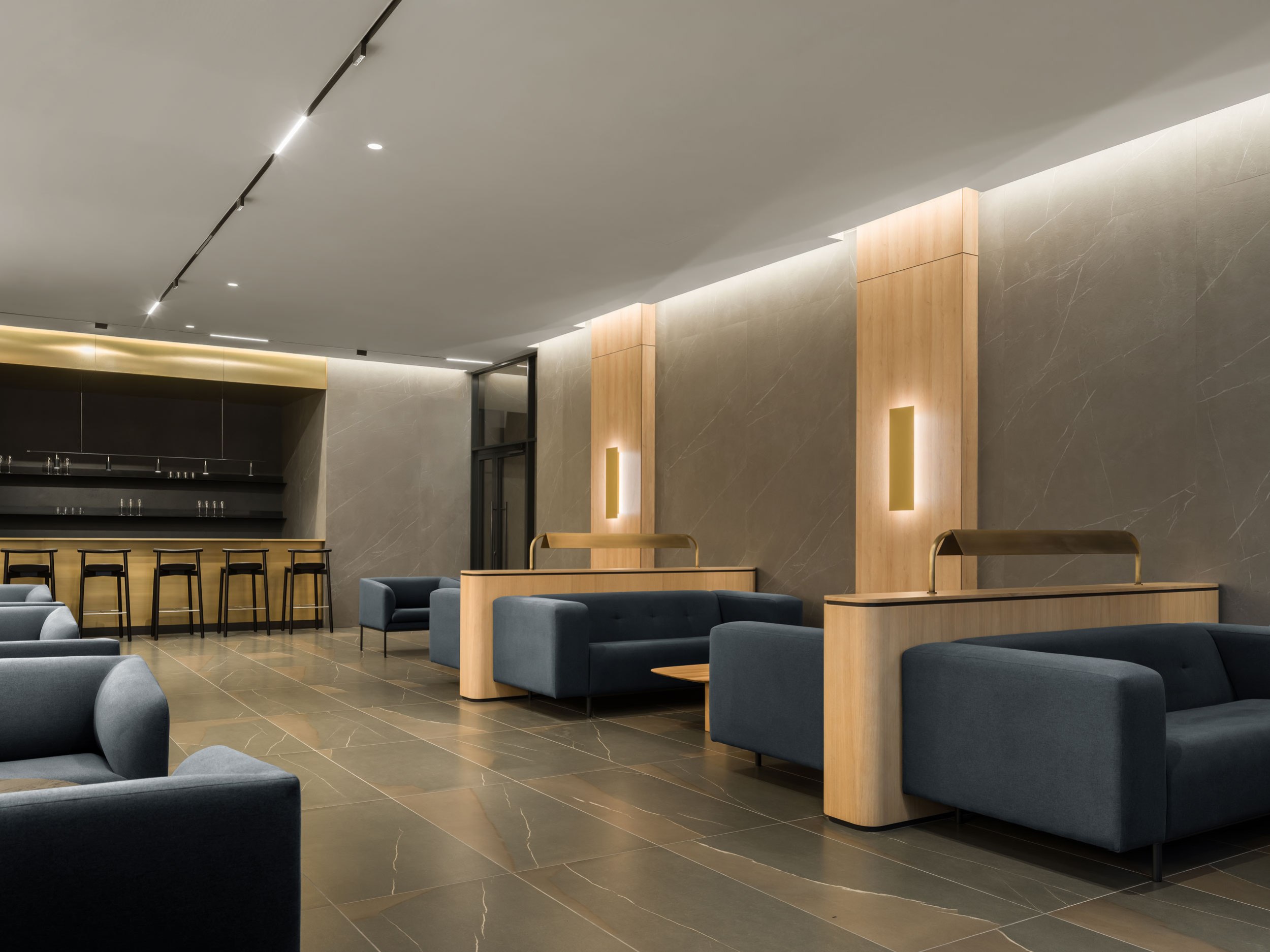 Дополнительной особенностью стало то, что мы работали с уже сформированной планировкой. Это потребовало точной и адаптивной работы, где ключевую роль играли пластика пространства, световые сценарии и визуальные акценты.