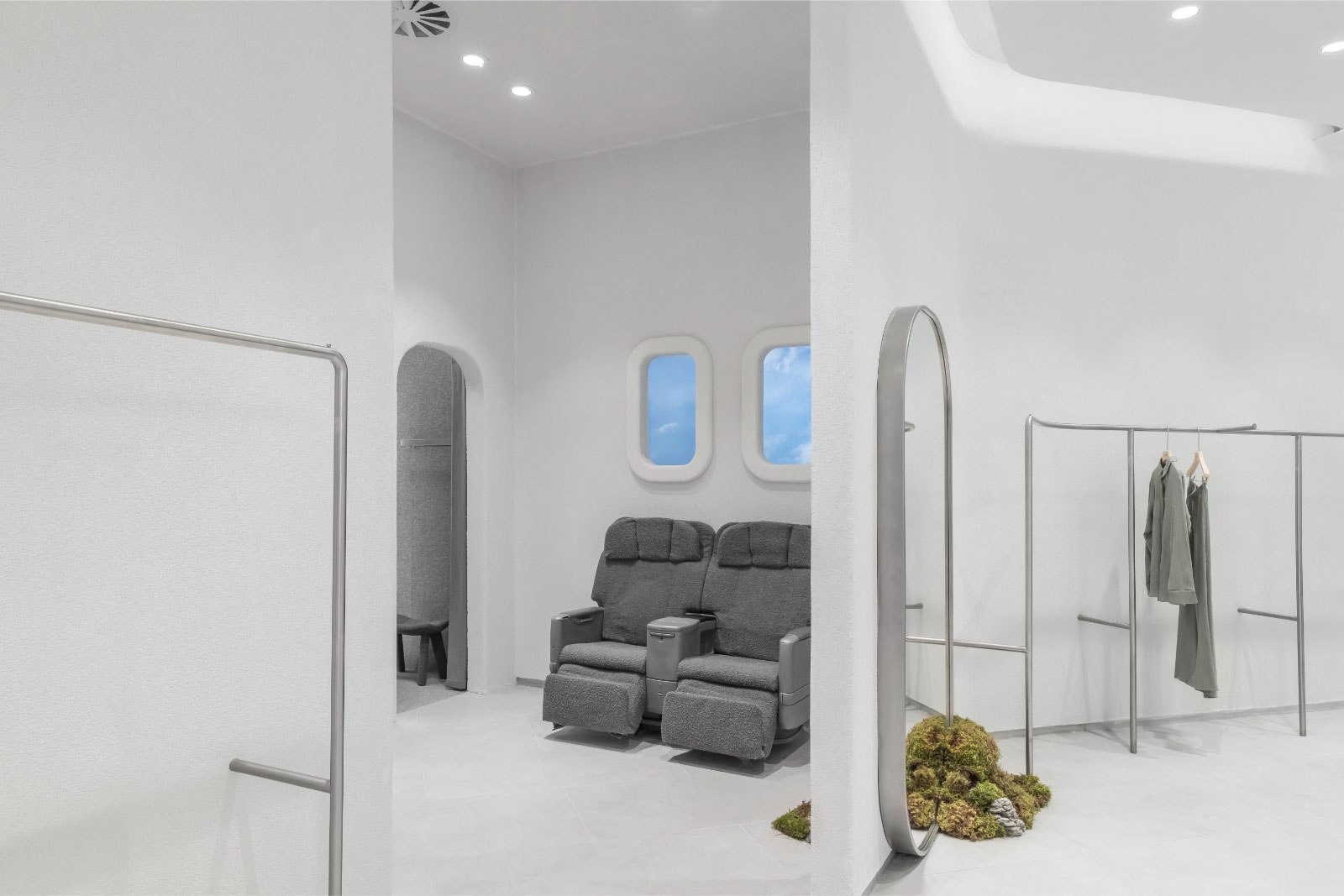 Разрабатывая концепцию, мы с основателем Денисом Шевченко исследовали не только образ аэропорта, но и более широкую идею движения. Проект стал архитектурной интерпретацией транзита как состояния. Мы представляем магазин как чистую белую промежуточную зону – пространство паузы, выбора, перехода и нового опыта.
