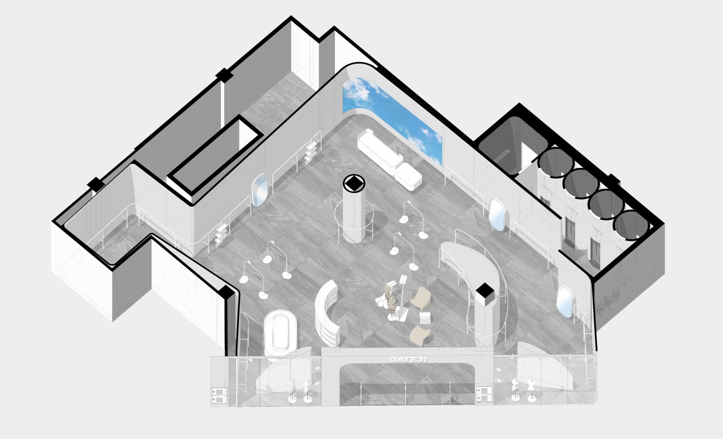 Флагманский магазин Gate31 объединяет решения, разработанные для бренда, и формирует единый архитектурный язык – пространственную систему, которая уже реализована более чем в пяти магазинах и будет использоваться в будущих открытиях.