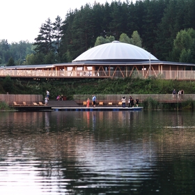 Двухэтажный жилой дом с подвалом расположен на берегу реки Вуокса в живописном районе Карелии, органично вписываясь в окружающую среду. Здание с плоскими кровлями выполнено из массивного соснового бруса тощиной 250 мм, крепящегося к внутренней металлической конструкции. Структурное остекление панорамных окон от пола до потолка, запроектированное встворе с наружней поверхностью стен, обеспечивает максимальное проникновение света во внутренние помещения и объединяя их с окружающей природой. Последовательное использование принципа выступающих и нависающих геометрических объемов здания, посредством контраста выбранных материалов и традиционного для Карельского перешейка использования дерева, как строительного материала, образуют структурированный, архитектонический акцент на реке Вуокса.