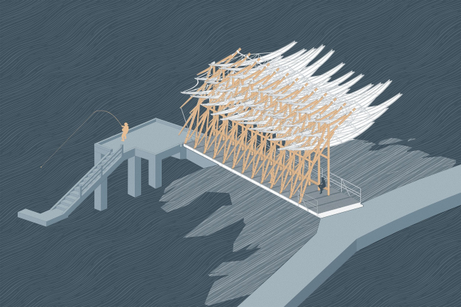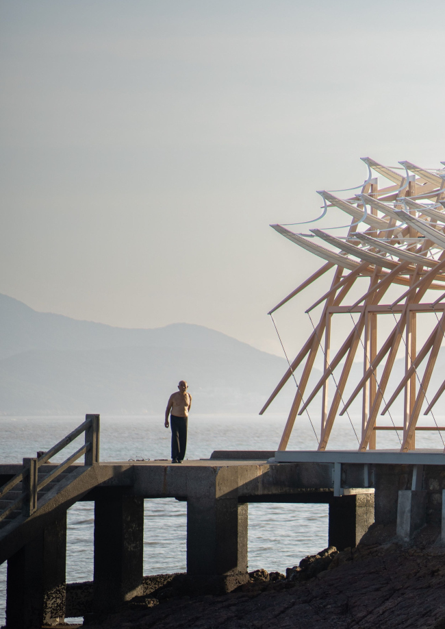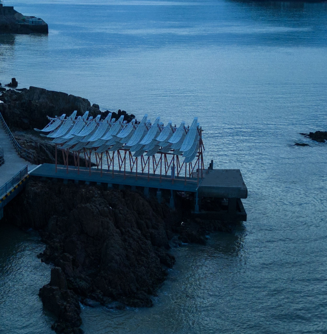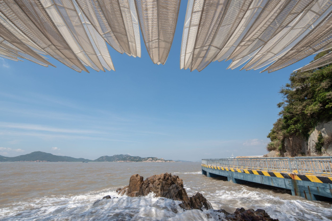 Павильон по проекту шанхайского бюро GN Architects, подчеркивая красоту пейзажа, служит для привлечения туристов на островок Чайшань в Восточно-Китайском море.