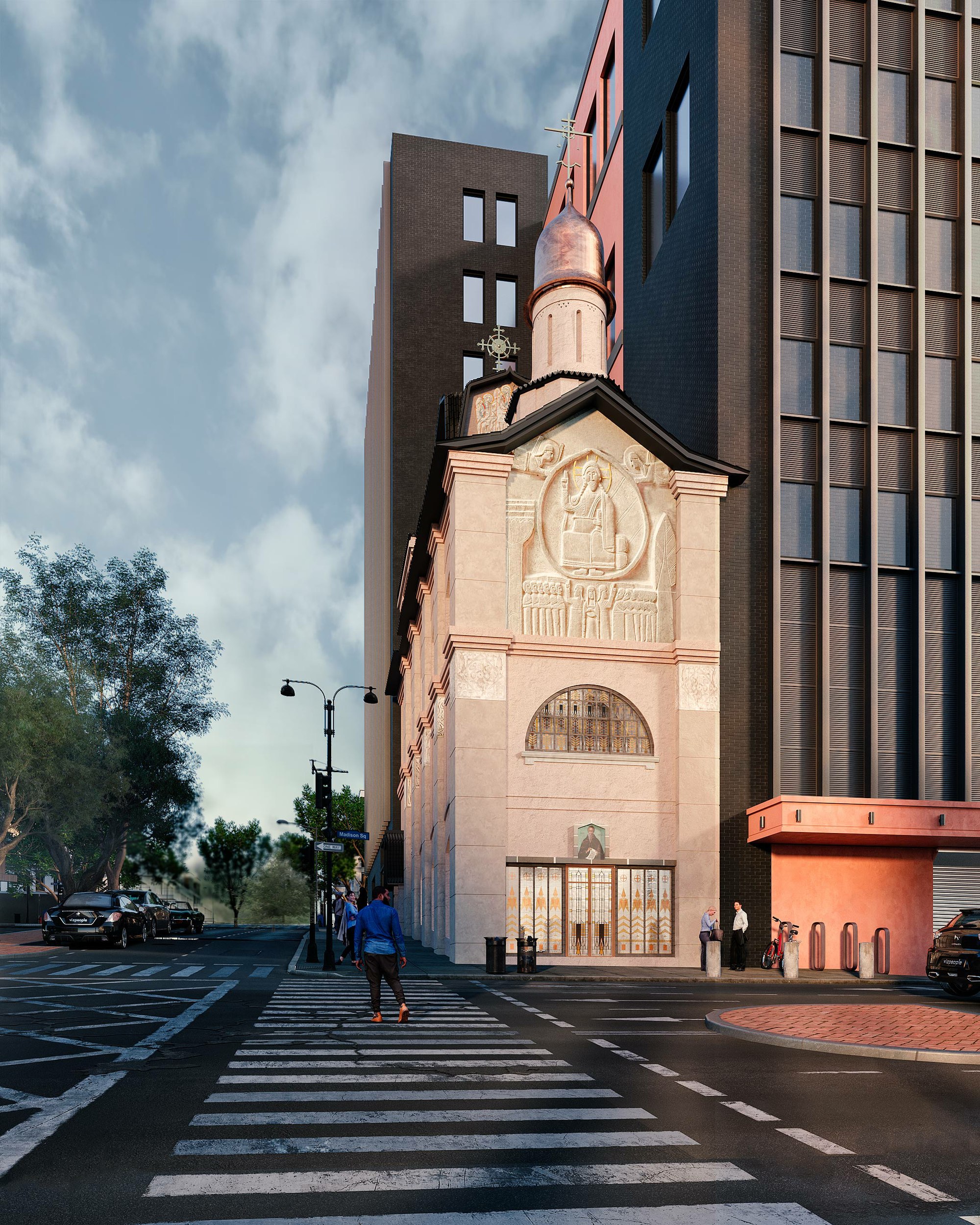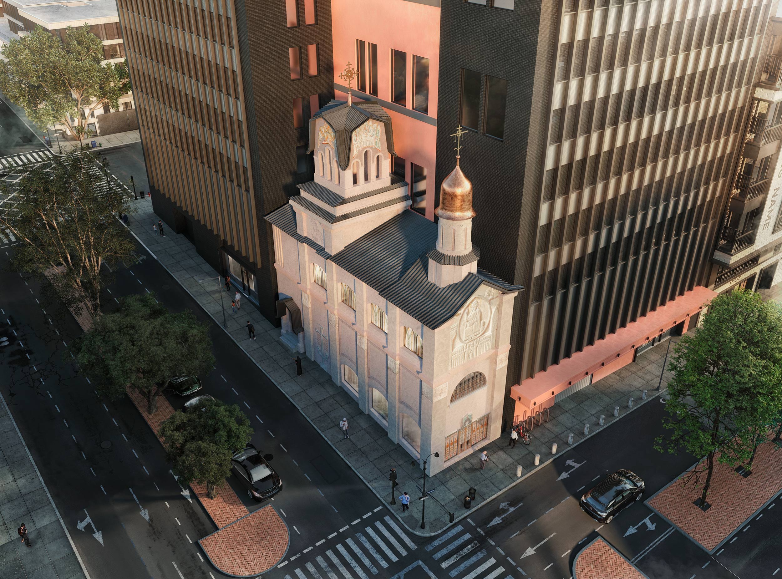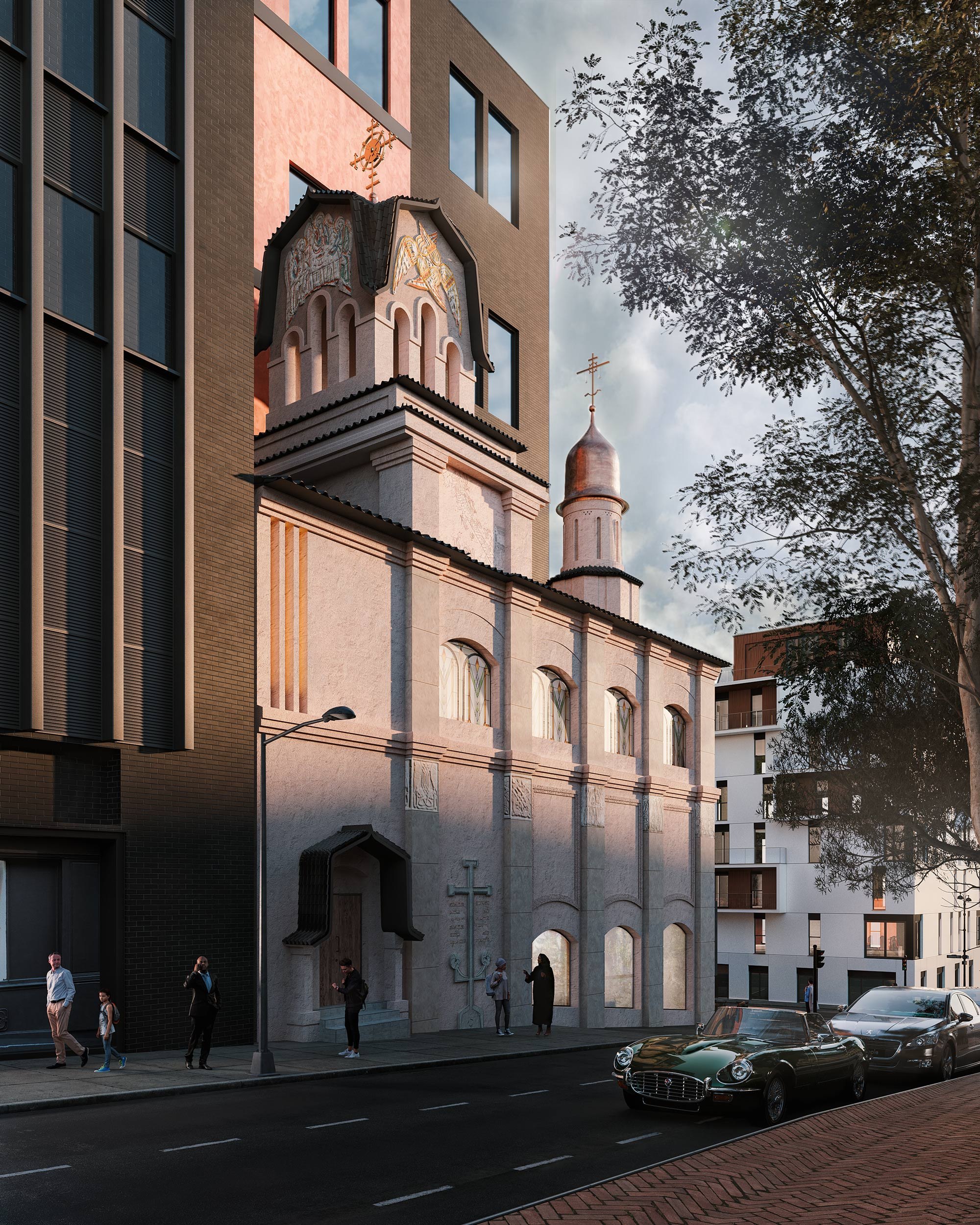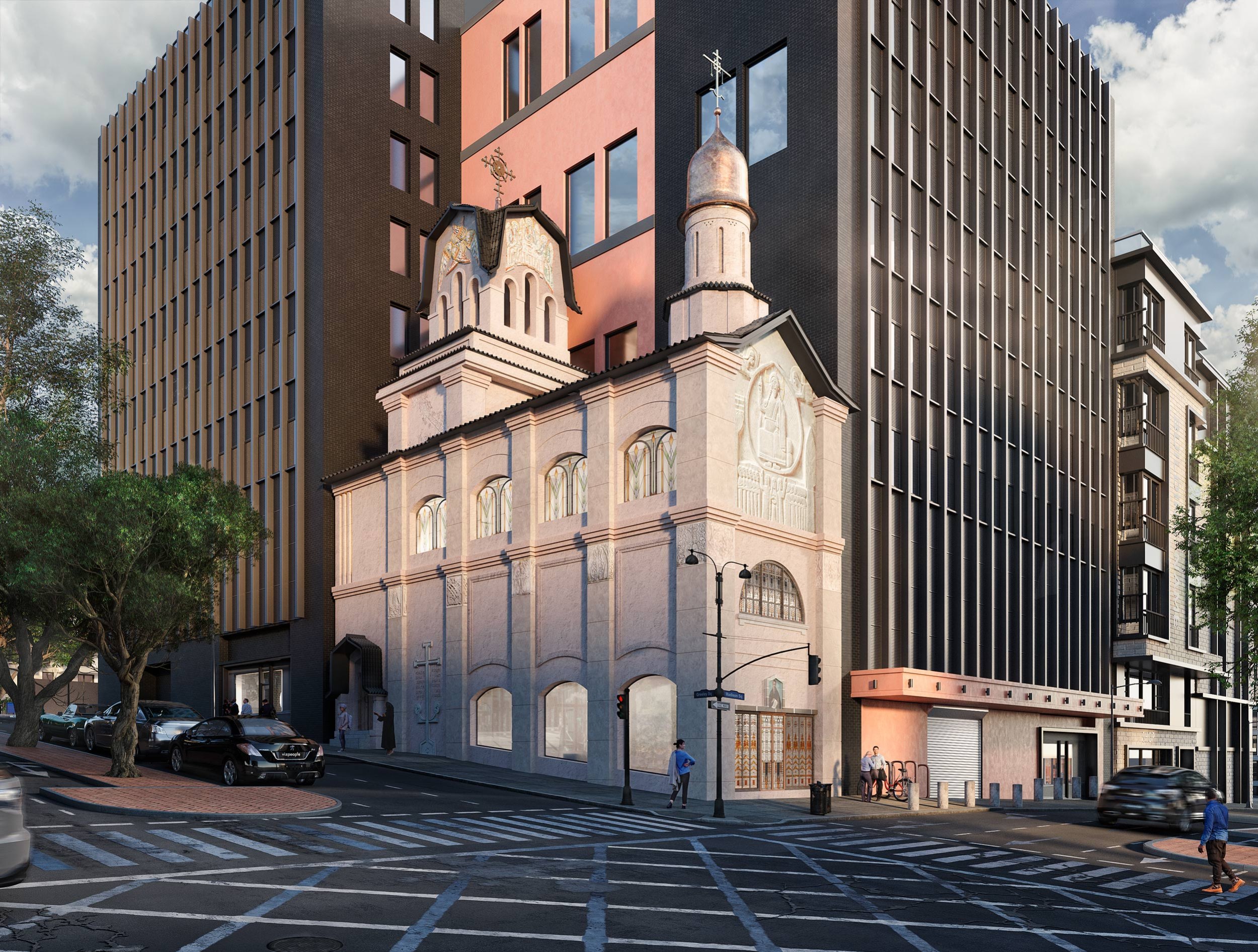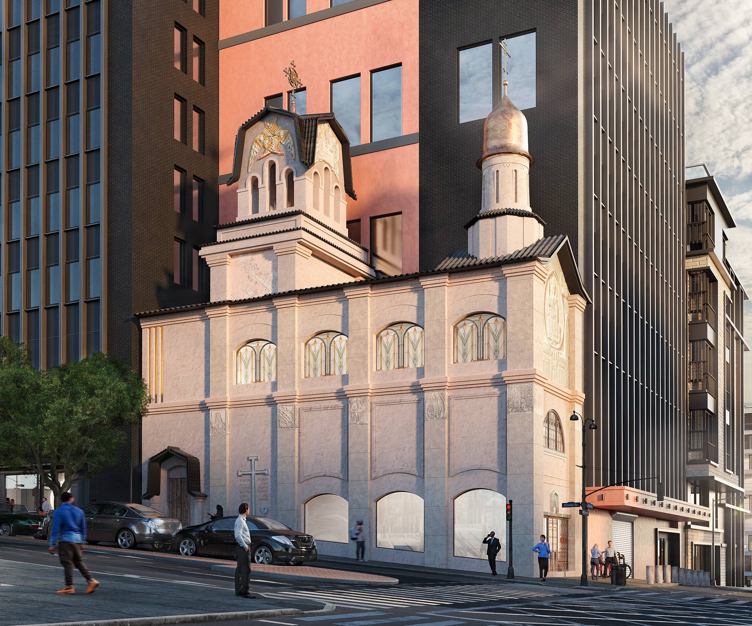 Проект предусматривает переосмысление объема, расширение храмового пространства, обновление входной группы и кровли. Архитектурные решения сочетают русский модерн с элементами местной культуры.