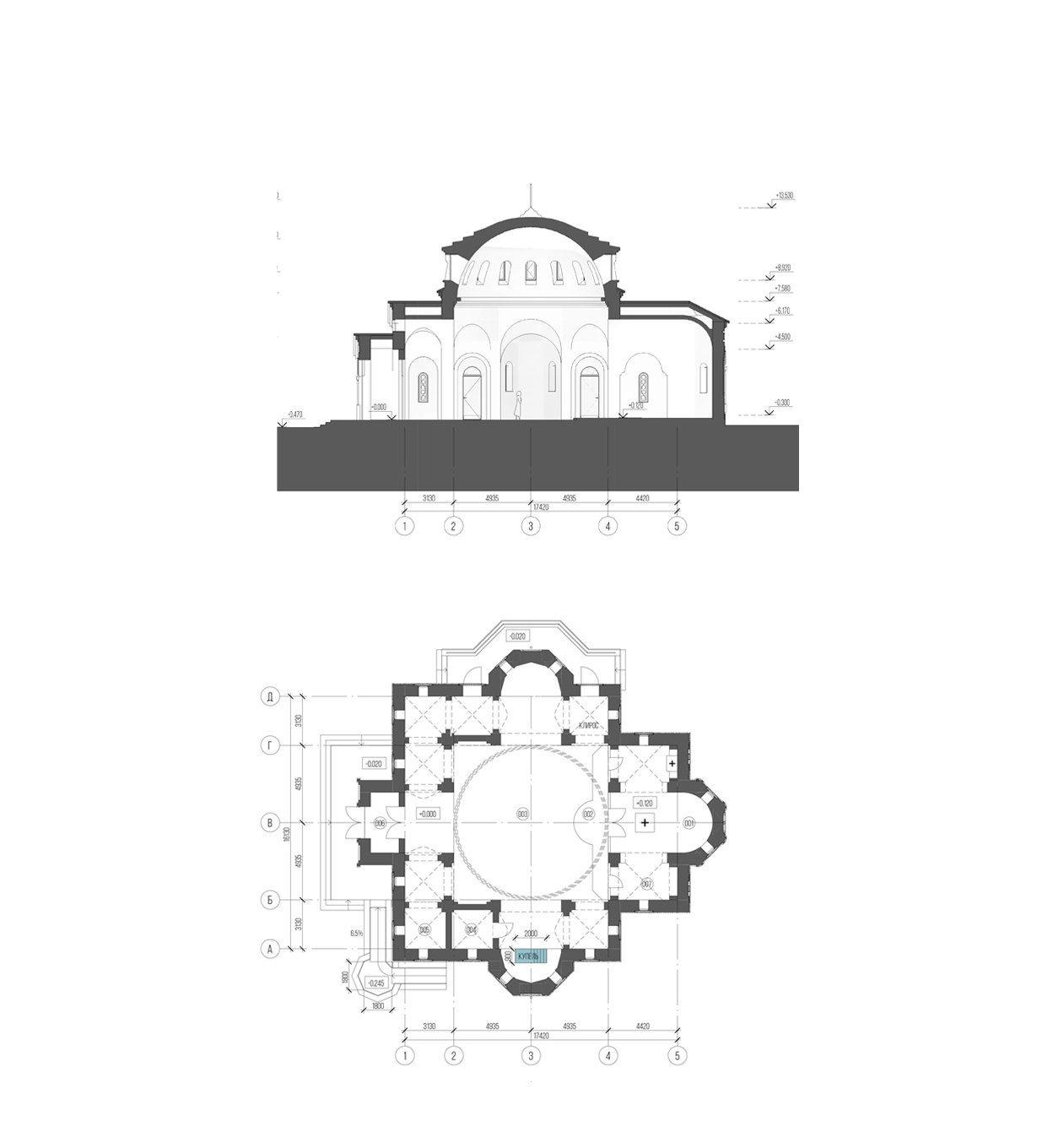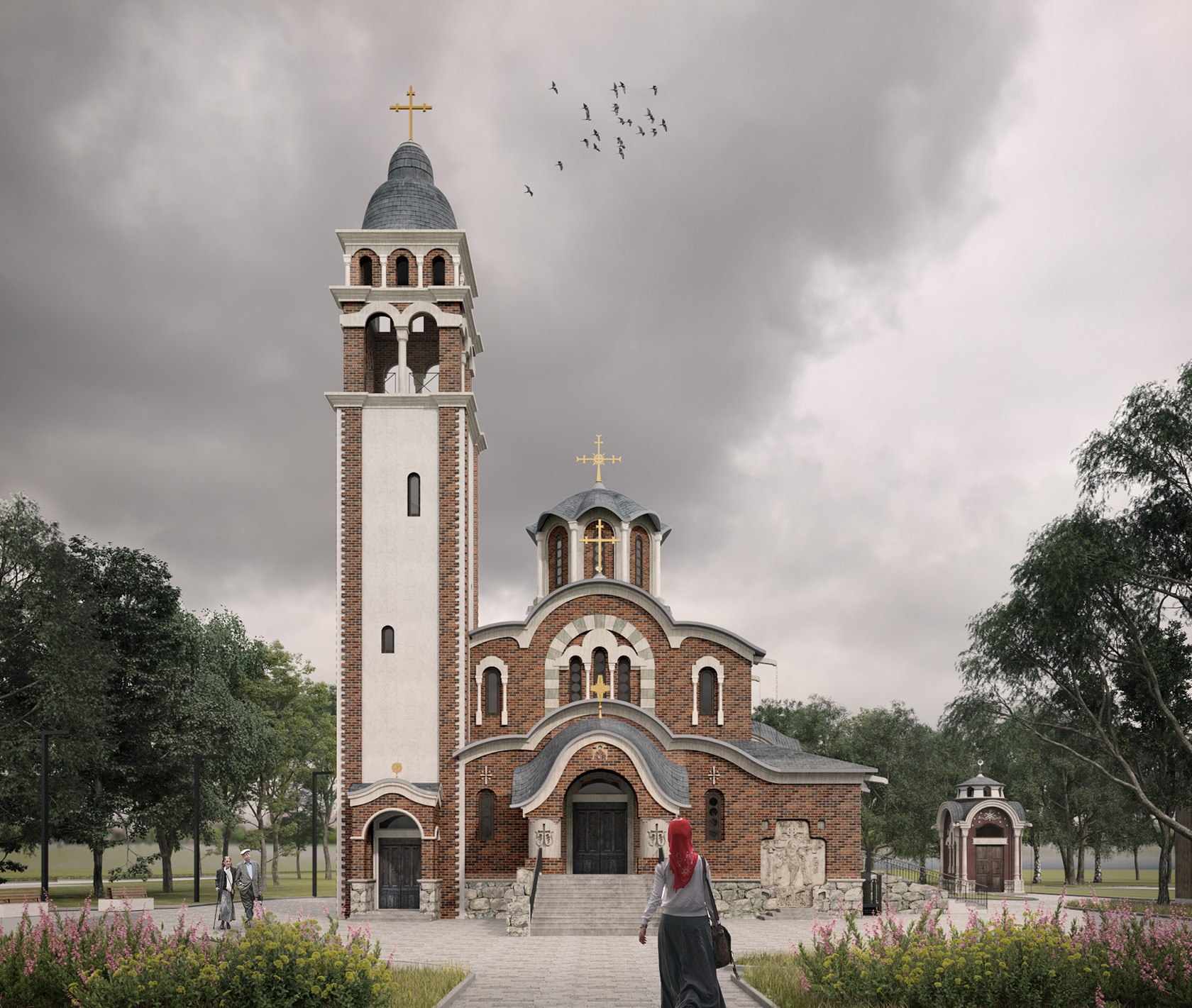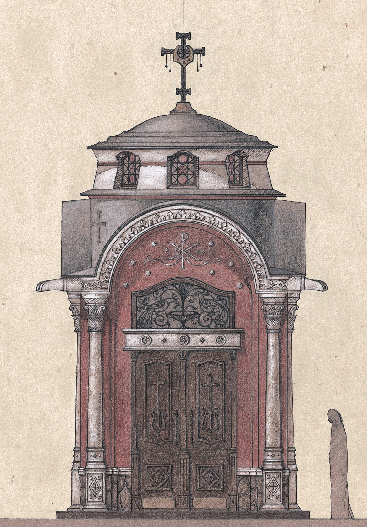 Малый храм – компактная ротонда на 350 человек, с обходной галереей и эркерами, архитектурно ориентированная на раннехристианские византийские постройки, особенно на храм Санта-Фоско в Торчелло. Фасады обоих храмов украшены пилястрами, арочными молдингами, мозаикой, барельефами и декоративной кладкой.