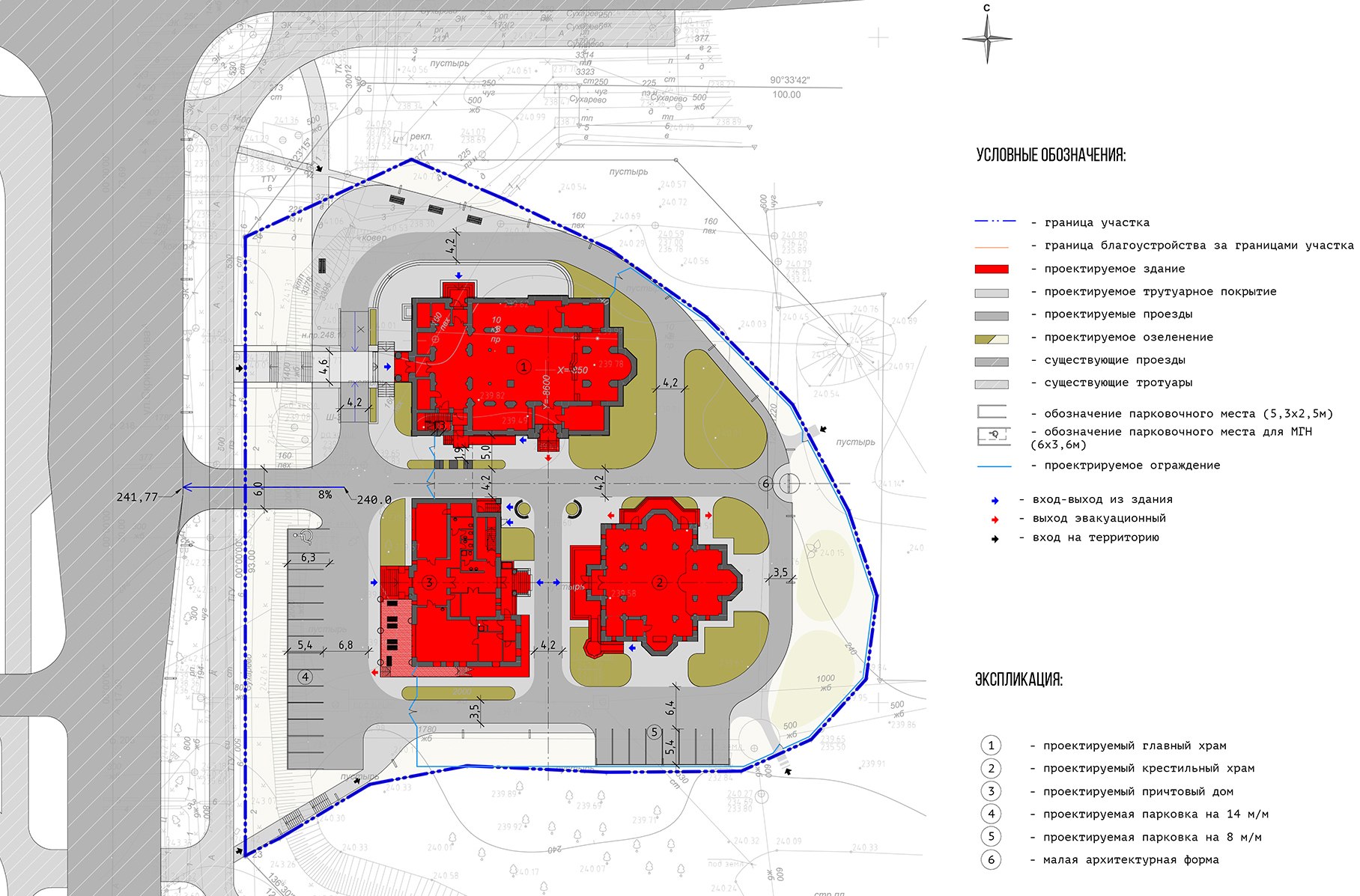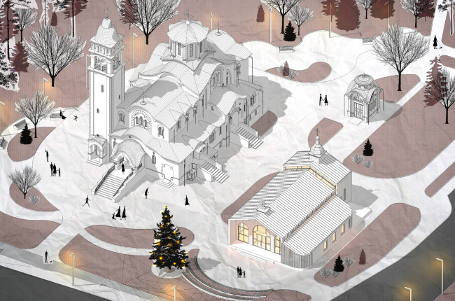 Первоначально проект включал также причтовый дом для приходской, миссионерской и благотворительной деятельности, но в ходе согласований его исключили. Вместо него в обоих храмах появились цокольные этажи