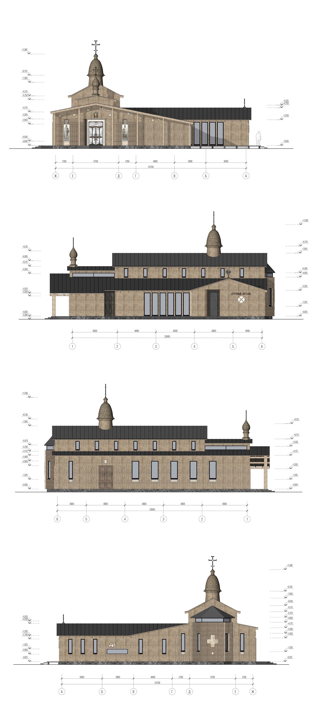Проект выполнен в соответствии с основными архитектурно-строительными нормативными актами в современных архитектурных формах с сохранением основных функциональных, богослужебных и символических особенностей храмового зодчества Православной Церкви.