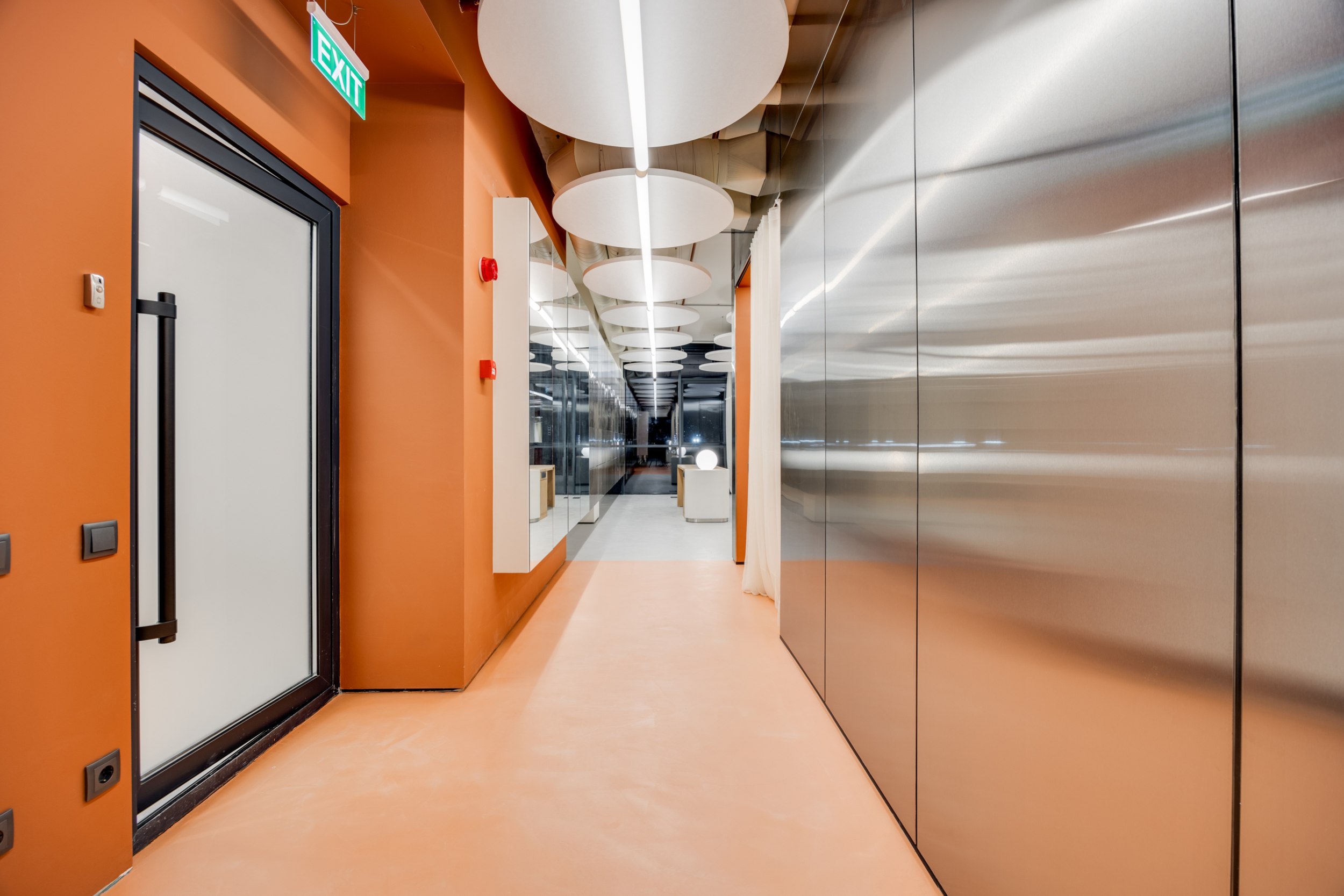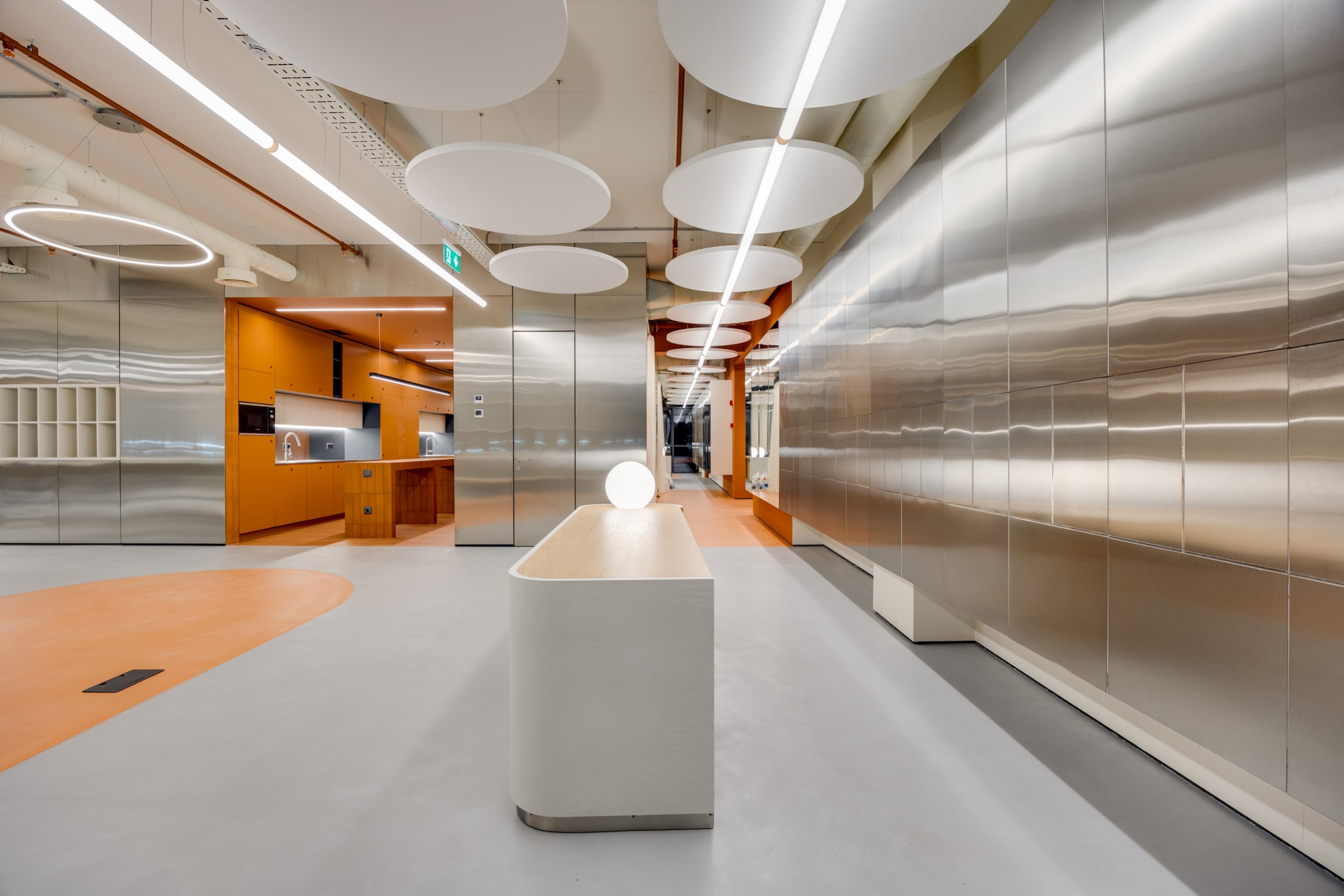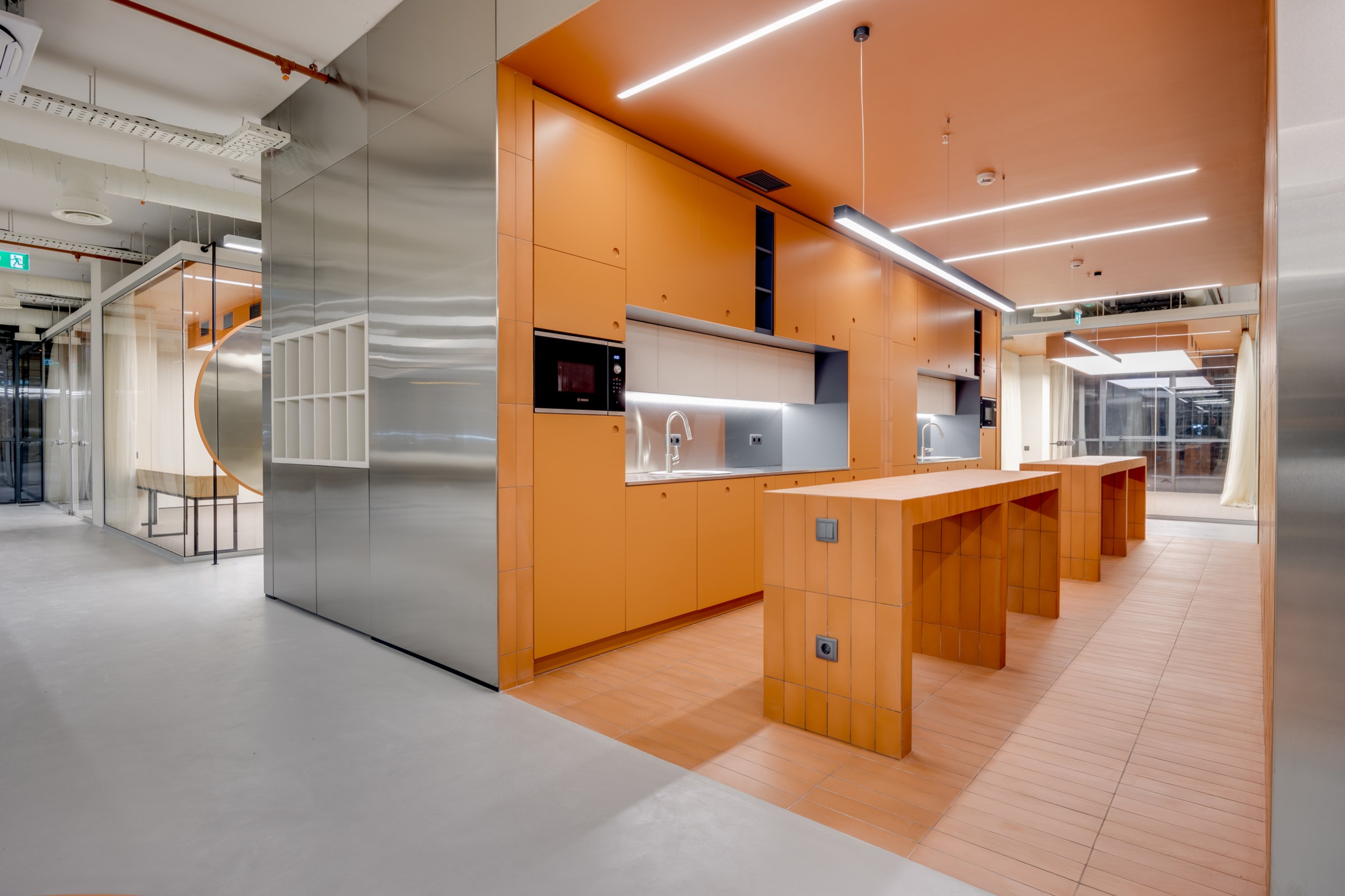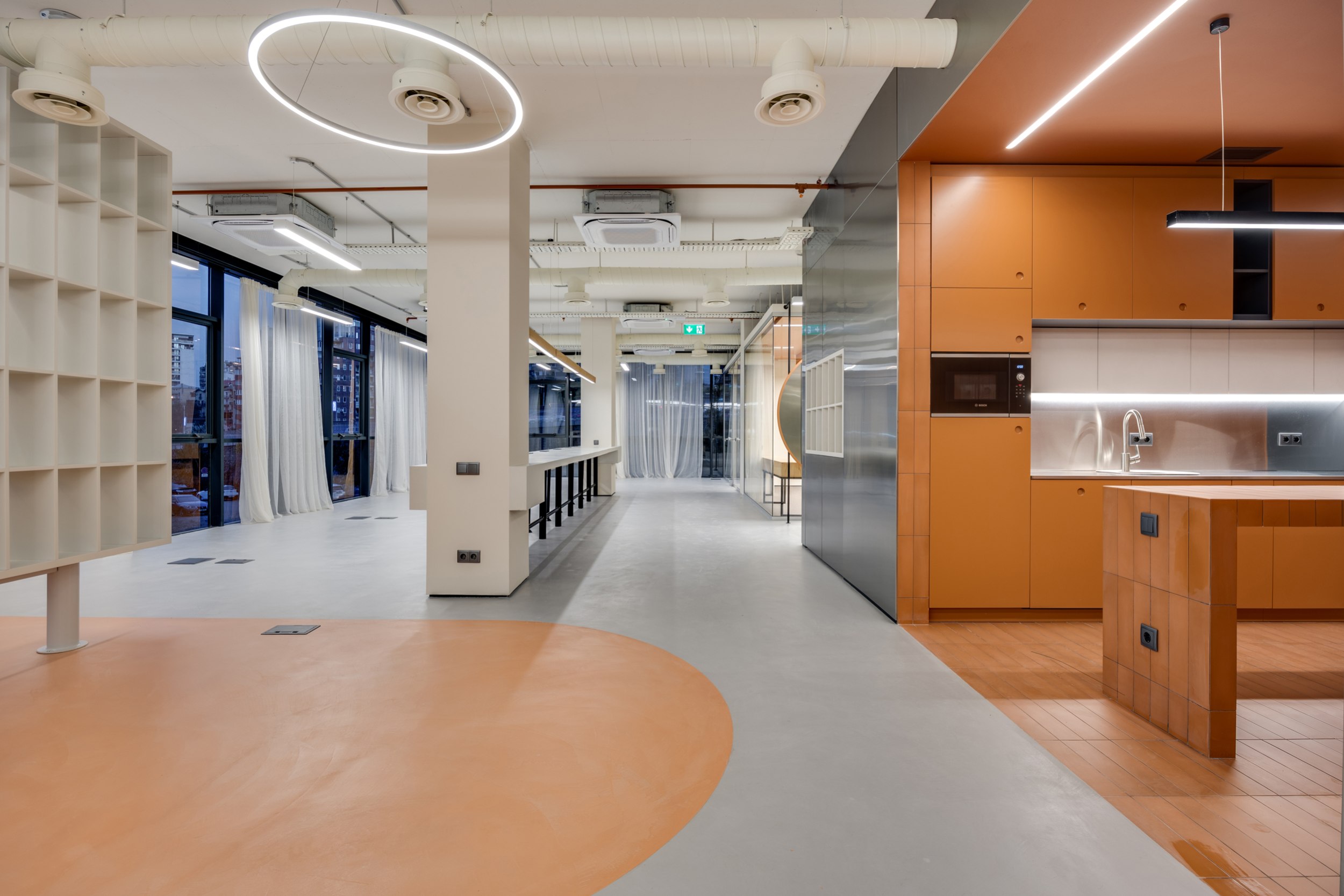 Мы сознательно оставили пространство гибким, чтобы каждый арендатор мог привнести собственный характер и айдентику. При этом общий визуальный язык остается цельным, с легкой узнаваемостью здания, в котором расположен офис. Благодаря архитектуре самого здания – с выразительным фасадом и панорамным остеклением – офис работает как самореклама: все в районе знают это место и связывают его с качественным современным интерьером.