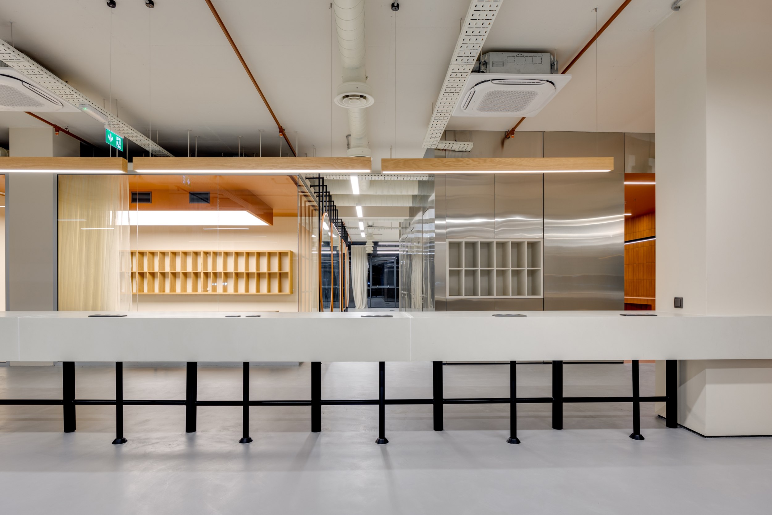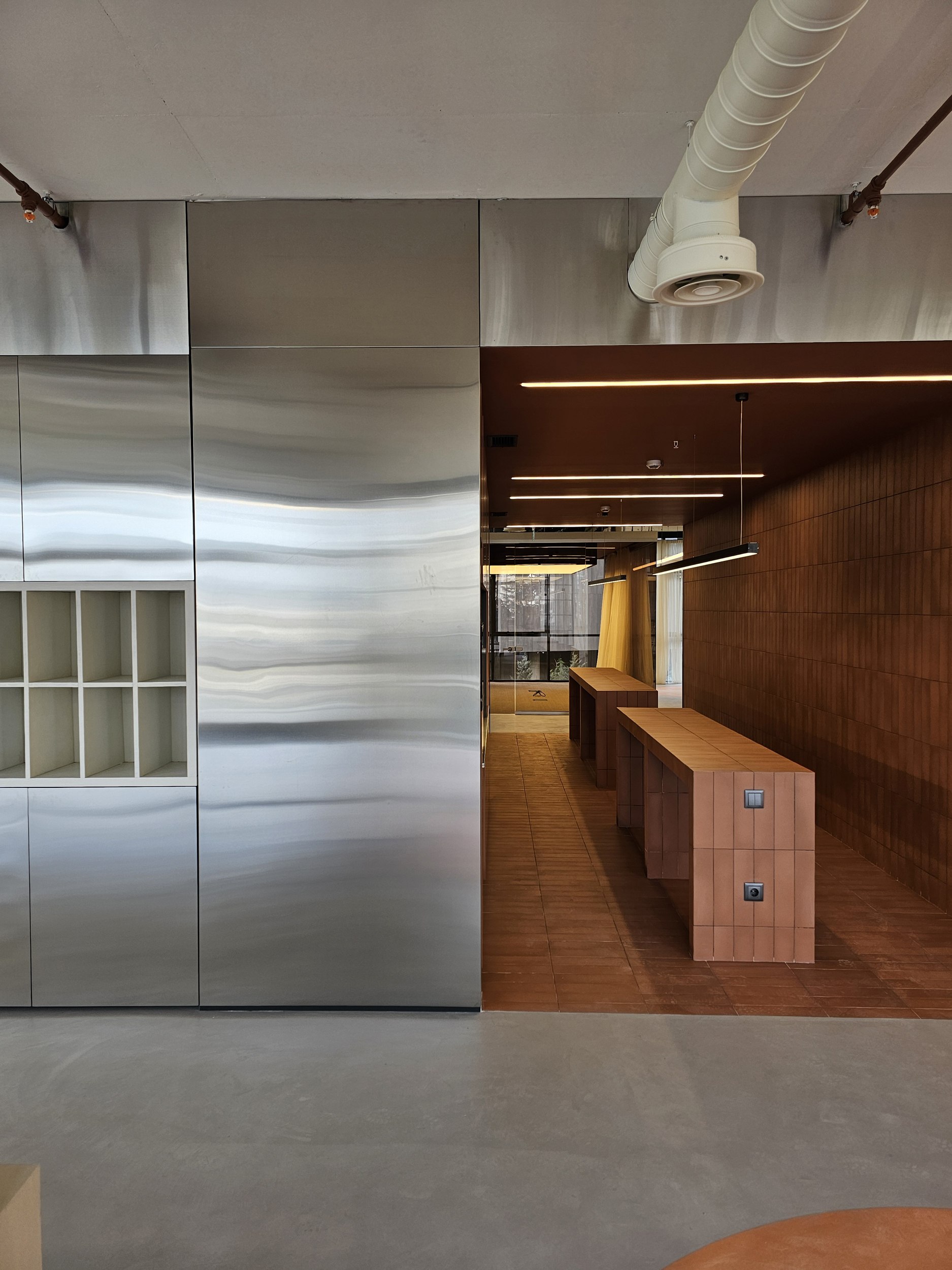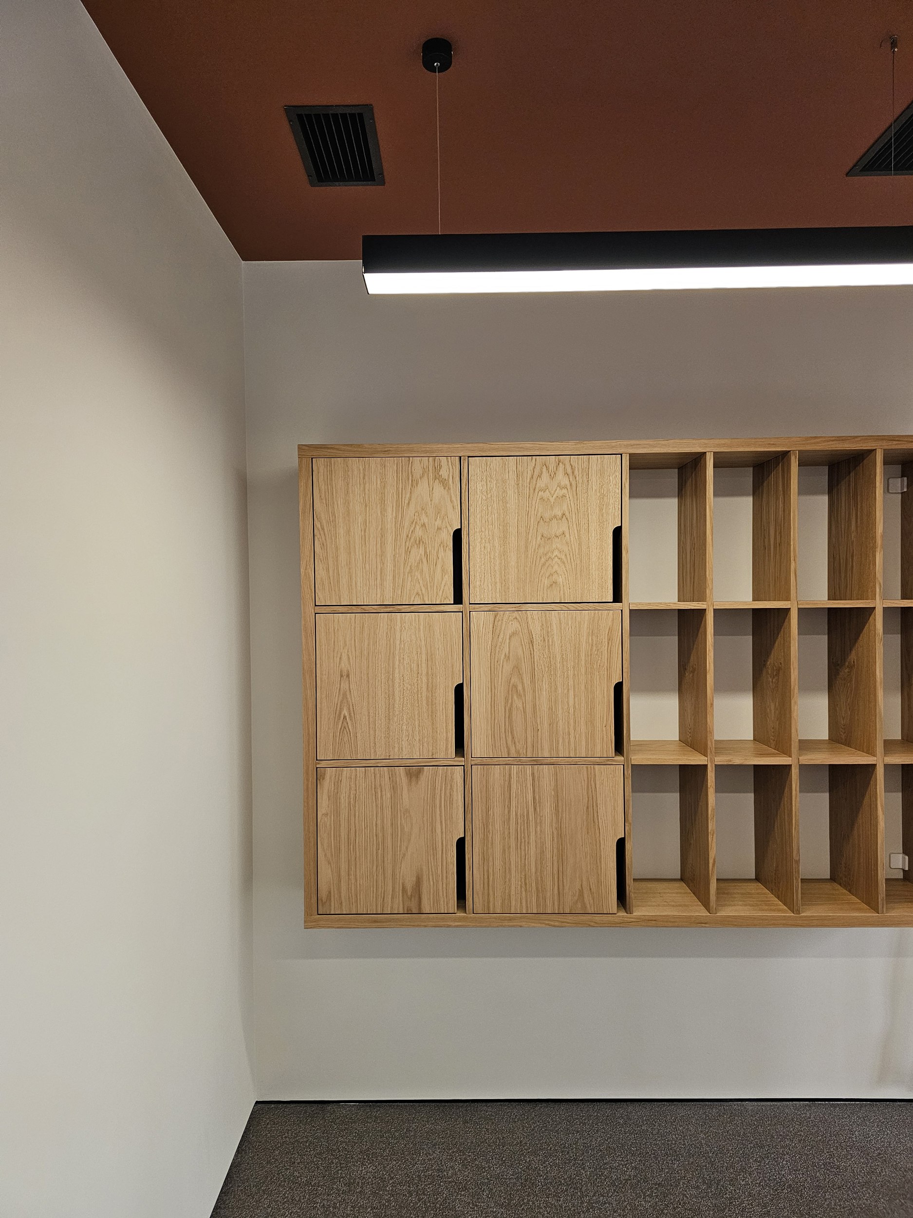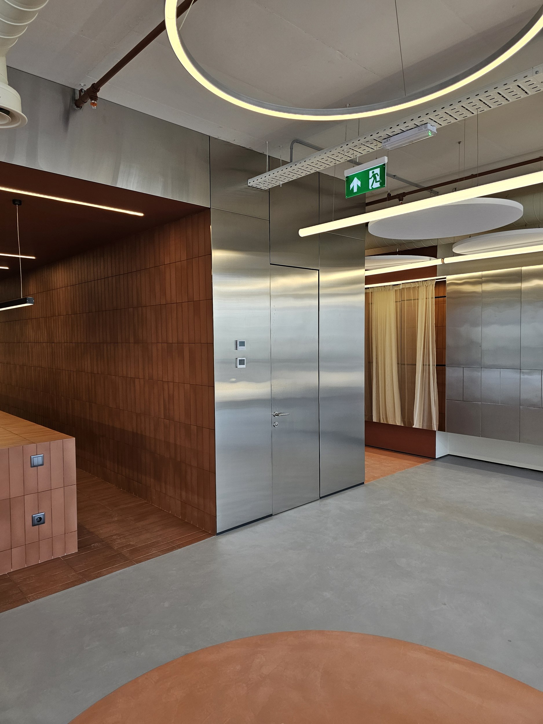 Мы сознательно оставили пространство гибким, чтобы каждый арендатор мог привнести собственный характер и айдентику. При этом общий визуальный язык остается цельным, с легкой узнаваемостью здания, в котором расположен офис. Благодаря архитектуре самого здания – с выразительным фасадом и панорамным остеклением – офис работает как самореклама: все в районе знают это место и связывают его с качественным современным интерьером.