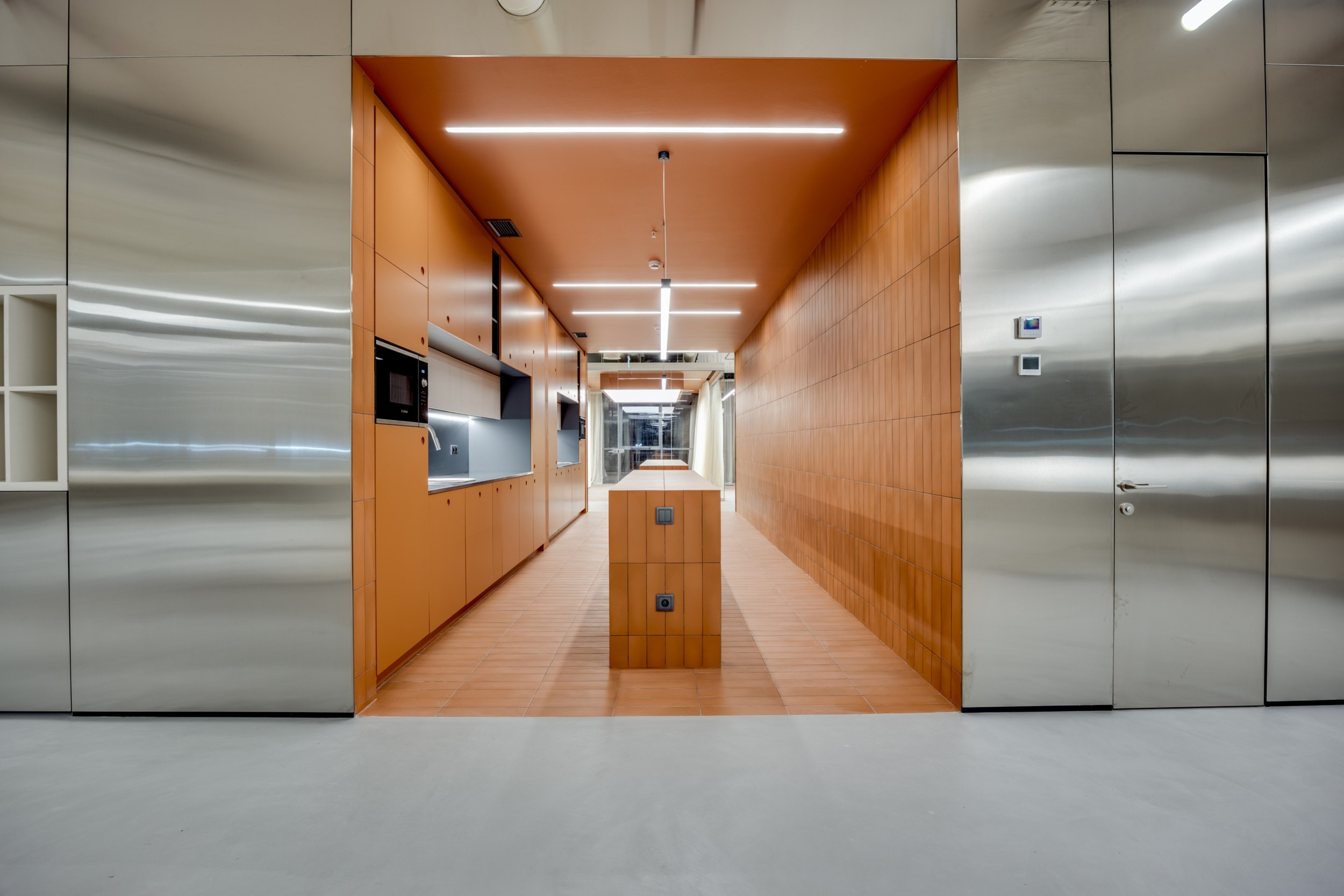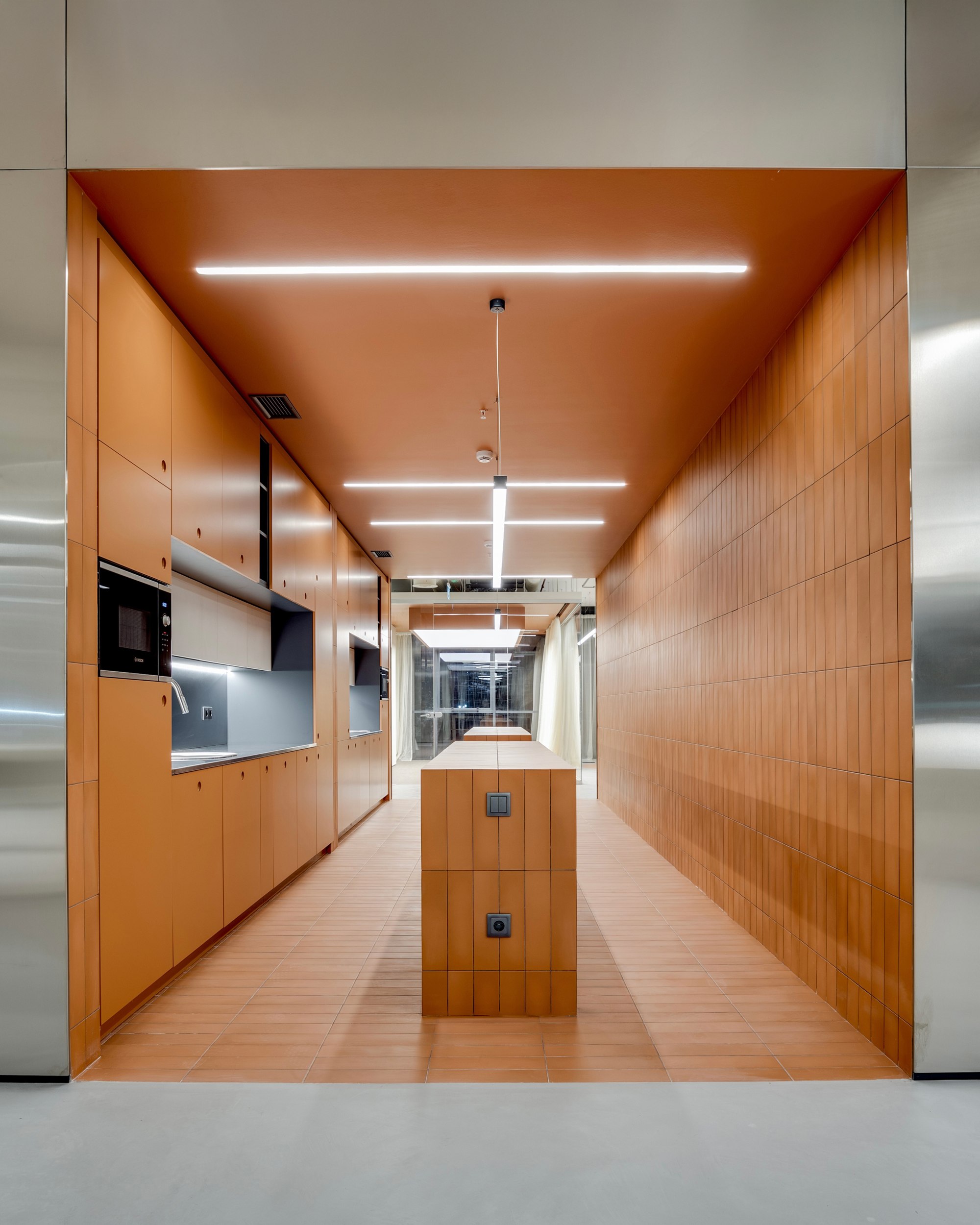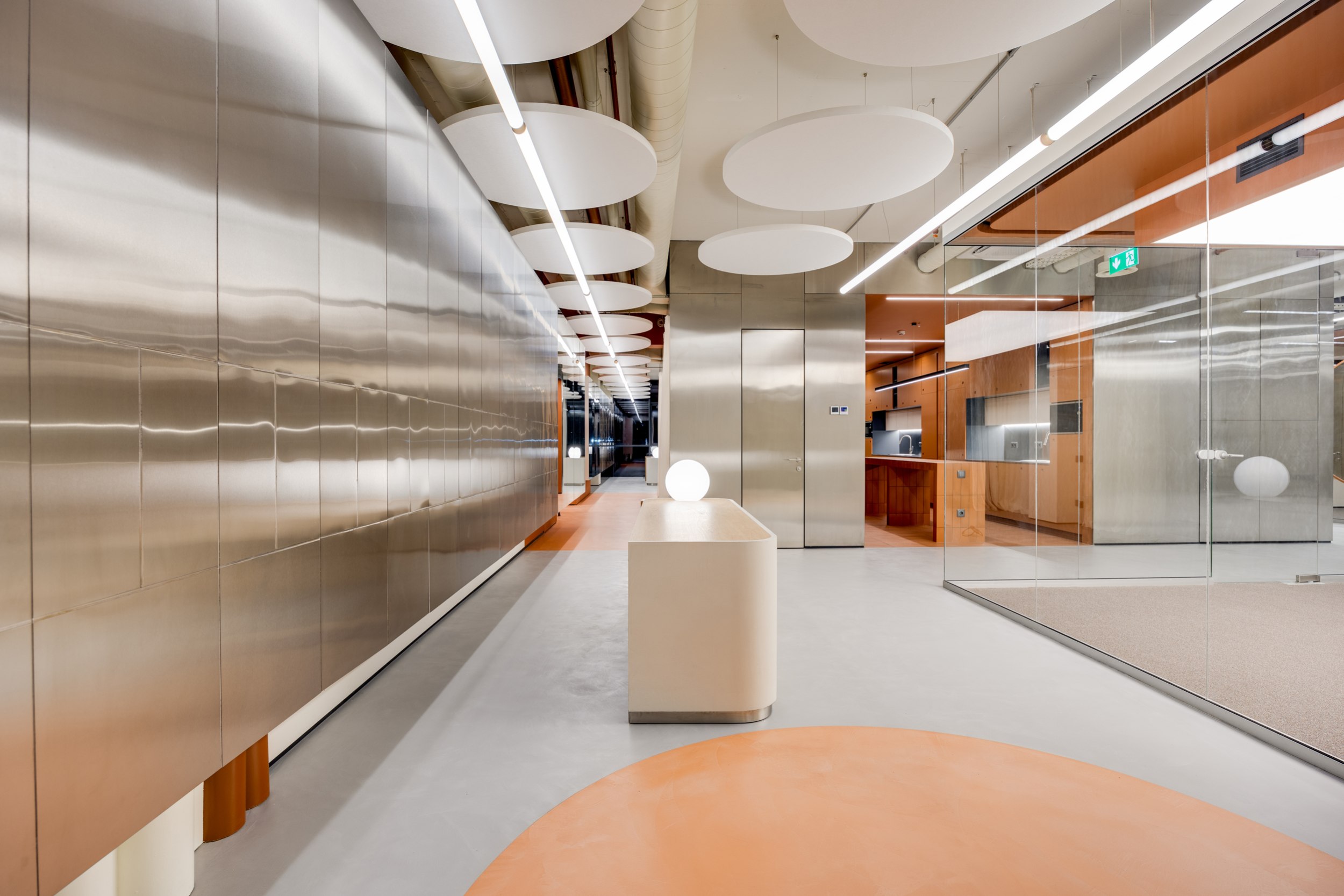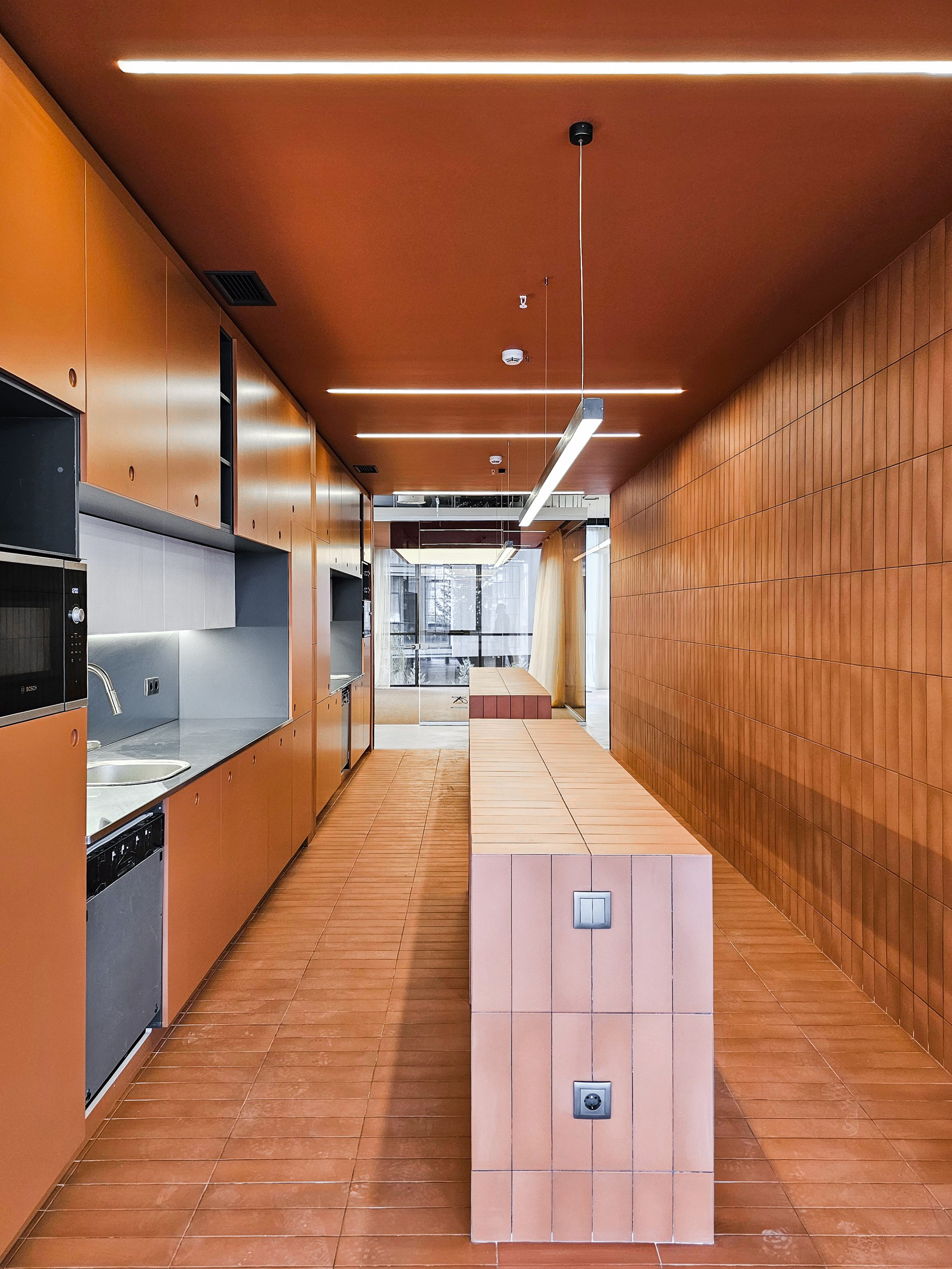 Так как офис предназначался для арендаторов, мы сделали интерьер максимально универсальным, нейтральным по идентике, но при этом современным и комфортным. Основу составили светлые оттенки в отделке и мебели, дополненные терракотовыми акцентами и вставками металла, – они добавляют тепла и ощущения современности.