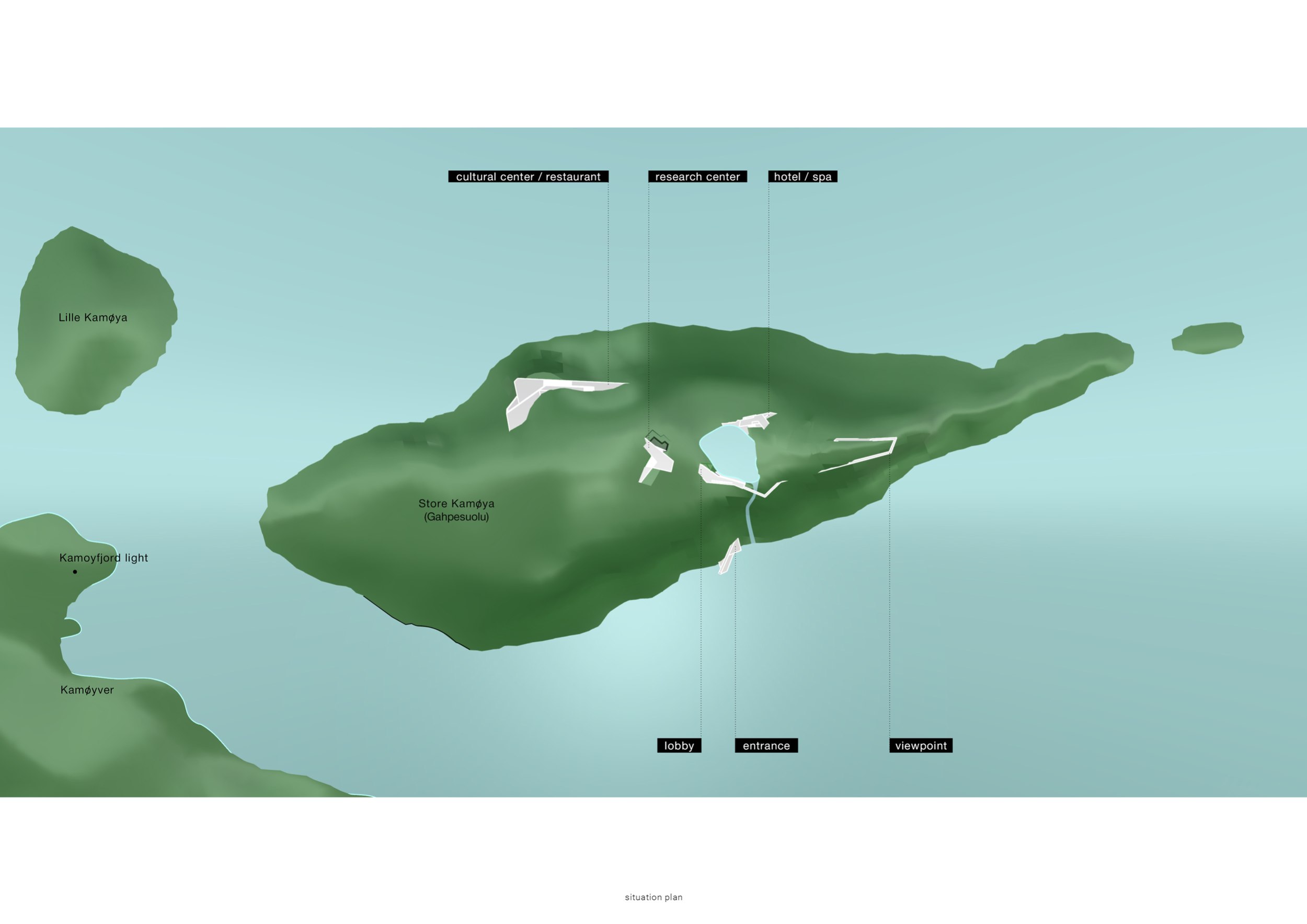 Культурно-рекреационный комплекс, интегрированный в природный ландшафт острова Камёйя. Проект создает последовательность пространств для познания, созерцания и проживания природы, где архитектура выступает инструментом взаимодействия человека с ландшафтом, светом и окружающей средой.