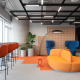 Архитектурный нарратив дополняют два знаковых элемента: цилиндрическая барная стойка, ставшая точкой неформальной коммуникации, и монументальный безграничный библиотечный стеллаж высотой 4,5 метра, огибающий периметр. Стеллаж вносит ноту академической серьезности и создает камерную атмосферу для уединенной работы. Панорамное остекление по всему периметру активно включает городской пейзаж Белграда в интерьер, делая его динамичным фоном для внутренней жизни центра.