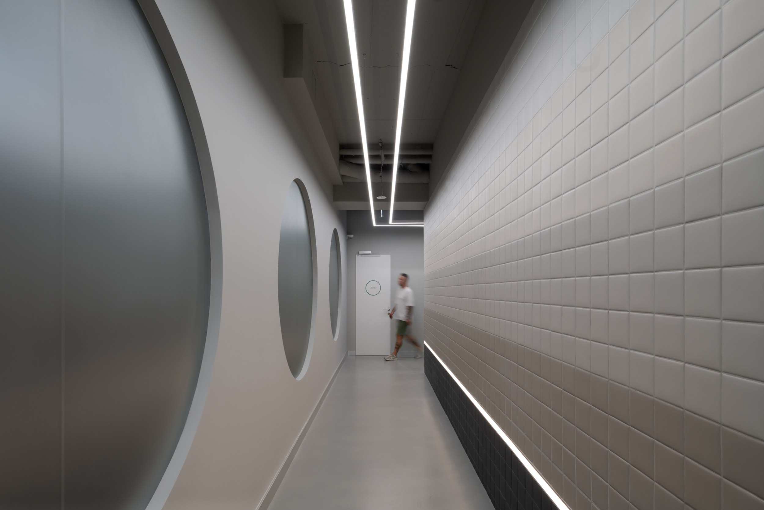 Круглый мотив, отсылающий к архитектуре белградского модернизма, повторяется в разных масштабах: в зеркалах, окнах и проемах для естественного света. Это придает интерьеру ритм и связывает его с локальным контекстом.