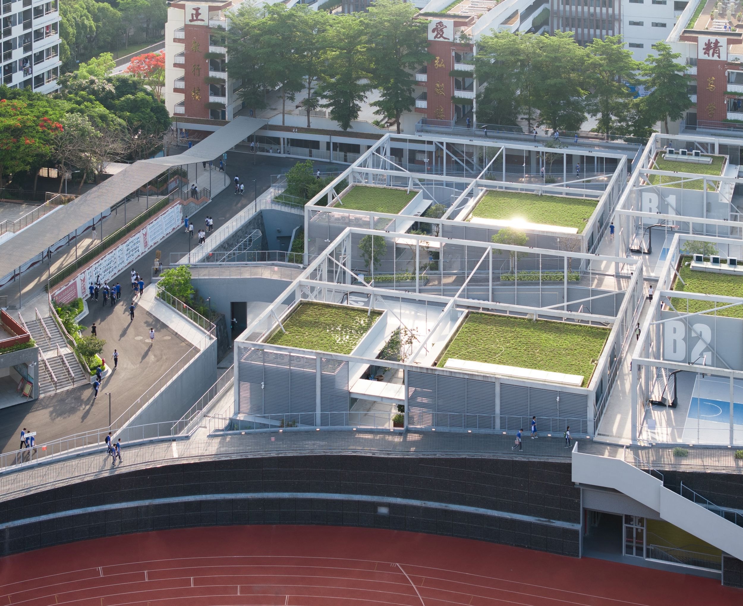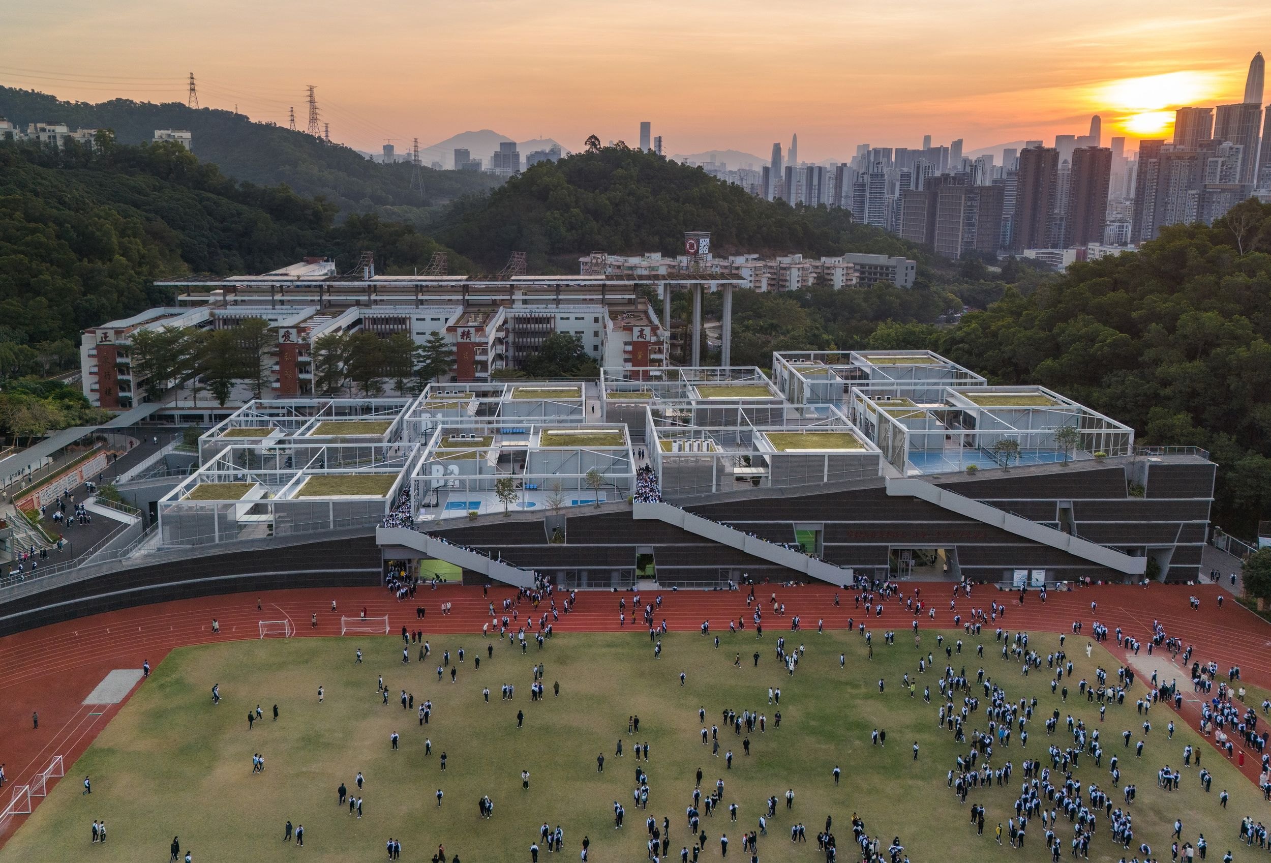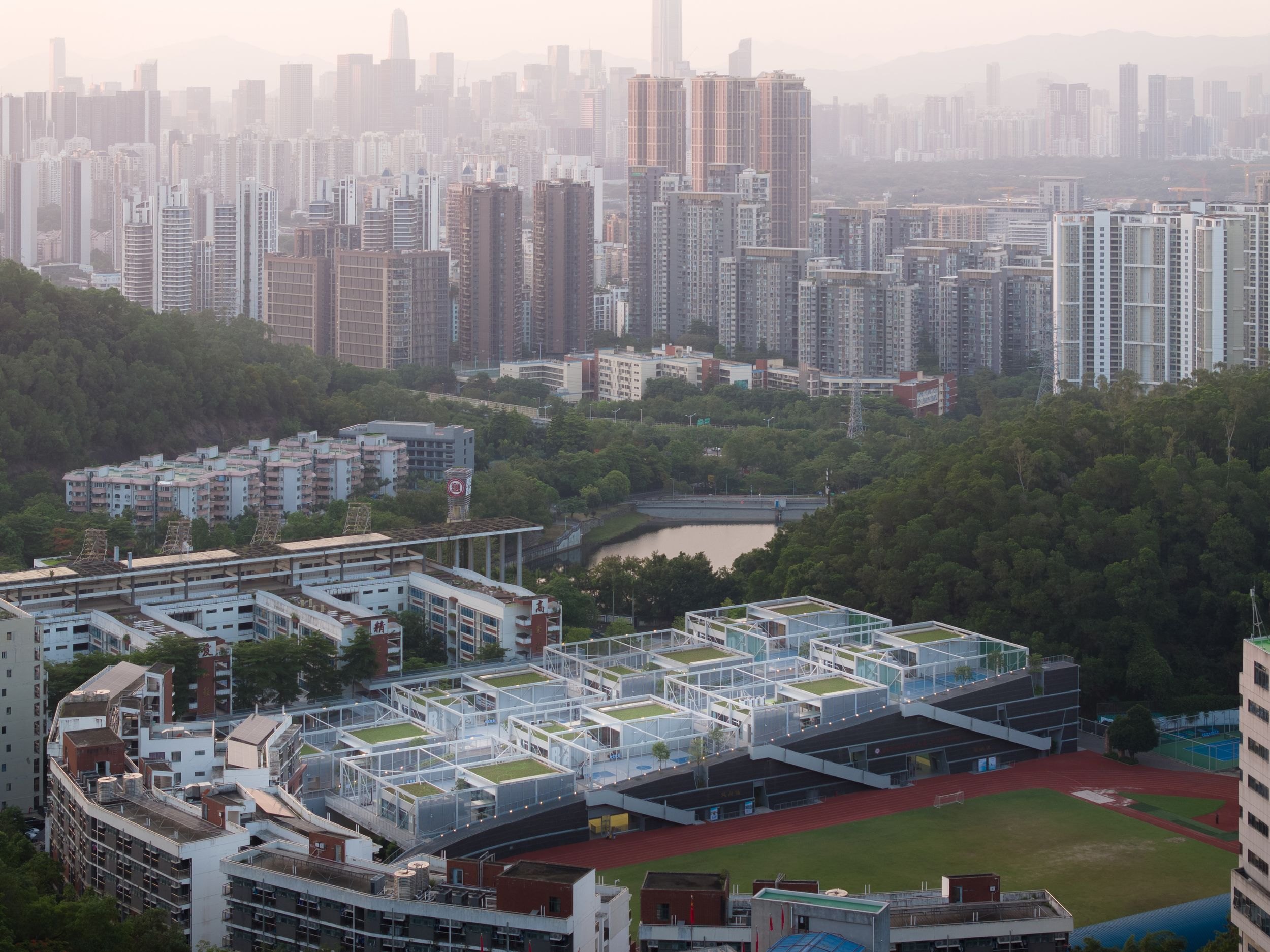 Проектируя модульные спортивный центр и центр искусств Старшей школы Хундин в Шэньчжэне, архитекторы O-Office устанавливали связь с окружающей природой и создавали внутренние связи.