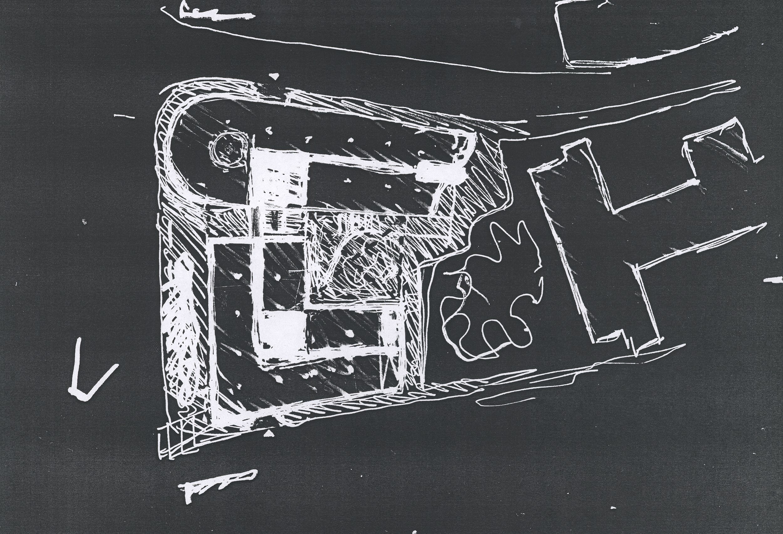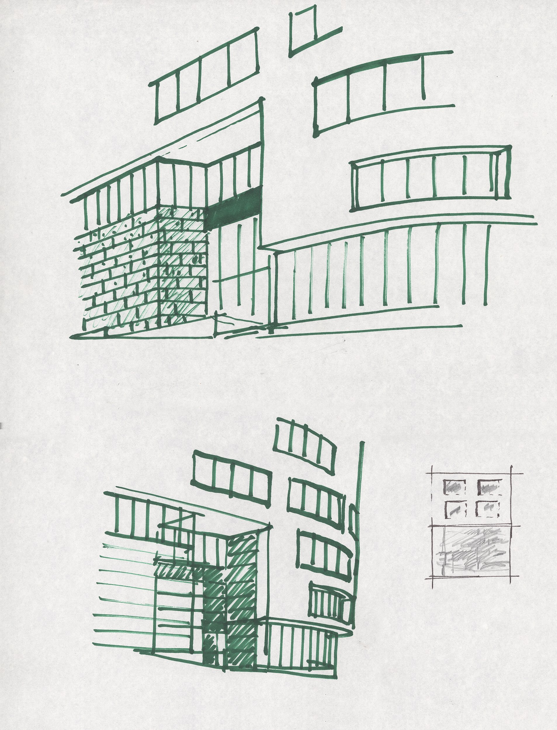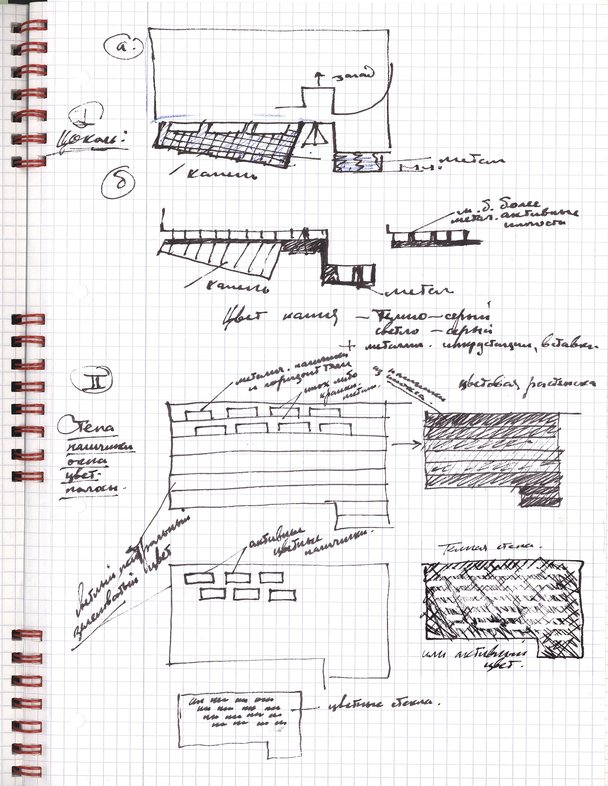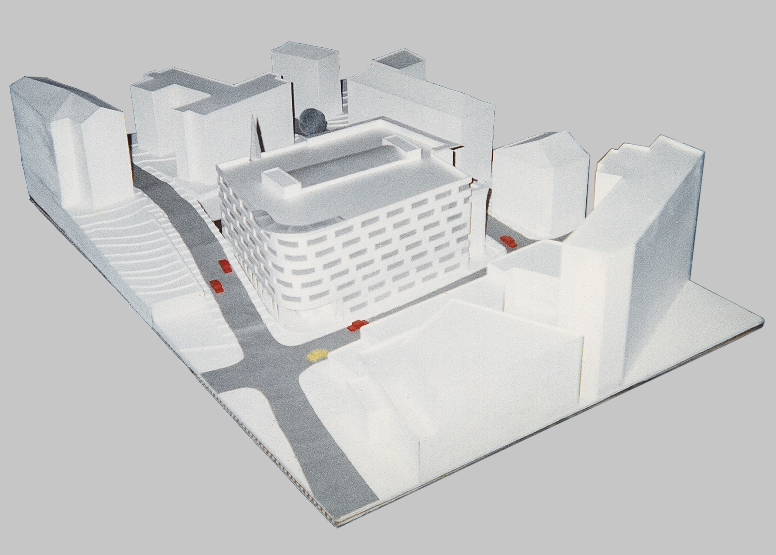 Слияние плавного изгиба Трубной улицы и Большого Сергиевского переулка, круто уходящего вверх к Сретенке, настолько само по себе пространственно выразительно, что нам оставалось только постараться не разрушить постройкой этого эффекта. Отсюда следующий топографии округленный торец здания и наматывающаяся на него перфорация фасадной оболочки с бегущими одновременно по горизонтали и «в гору» оконными проемами. Соединения основного объема с землей через вросший в склон сложного абриса цоколь – ключевой момент композиции, проявляющий неординарные свойства ландшафта.