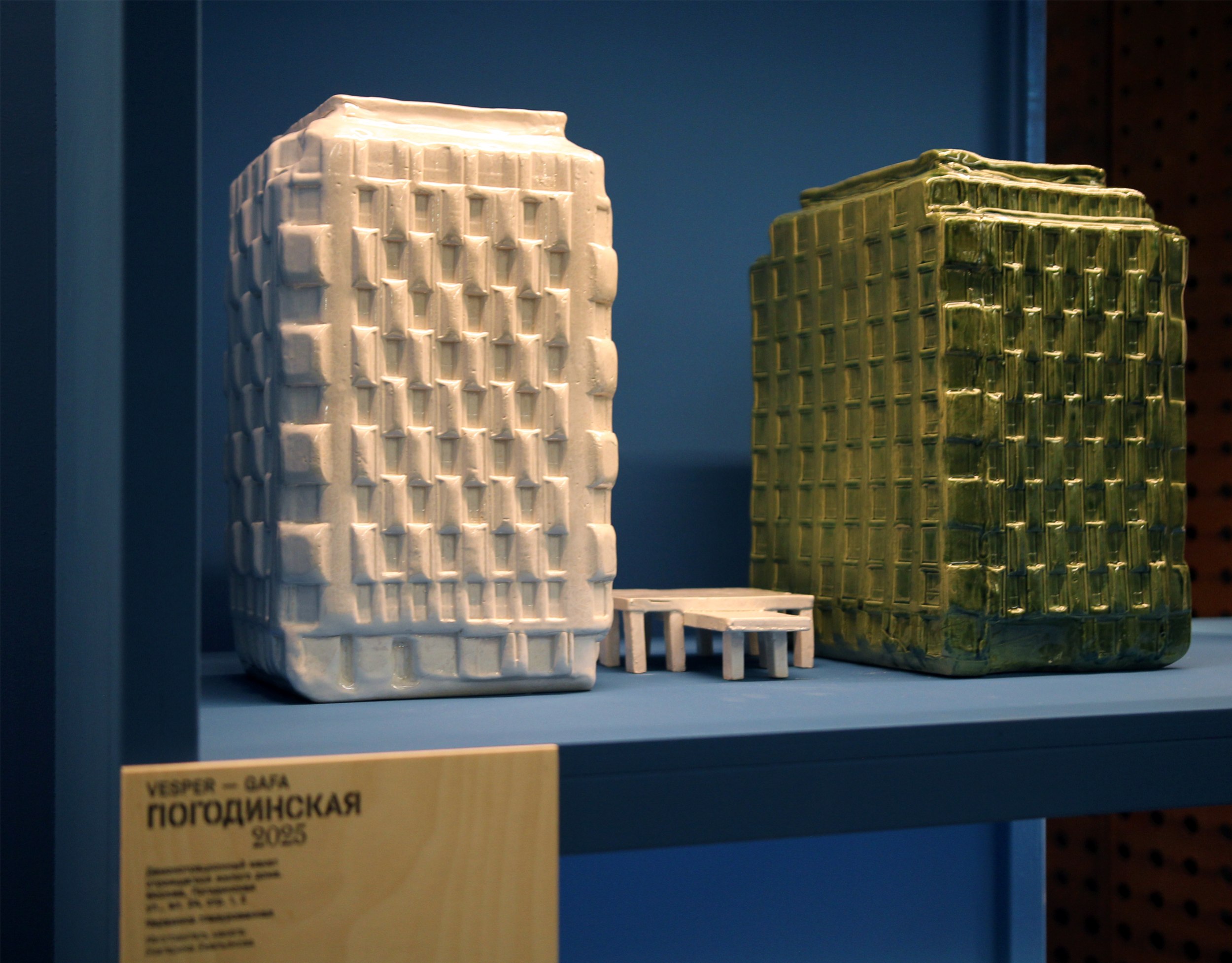 /|\Есть еще один новый макет, Погодинской от GAFA и компании Vesper, 2024–2025, это две вазы, в которые можно даже (!) ставить цветы. Эффектные керамические объемы, но – вазы. Тем не менее в данном случае исключение, а мой взгляд, не противоречит лейтмотиву, а только дополняет его. Рядом – макет СПА-центра La Perla от тех же GAFA.