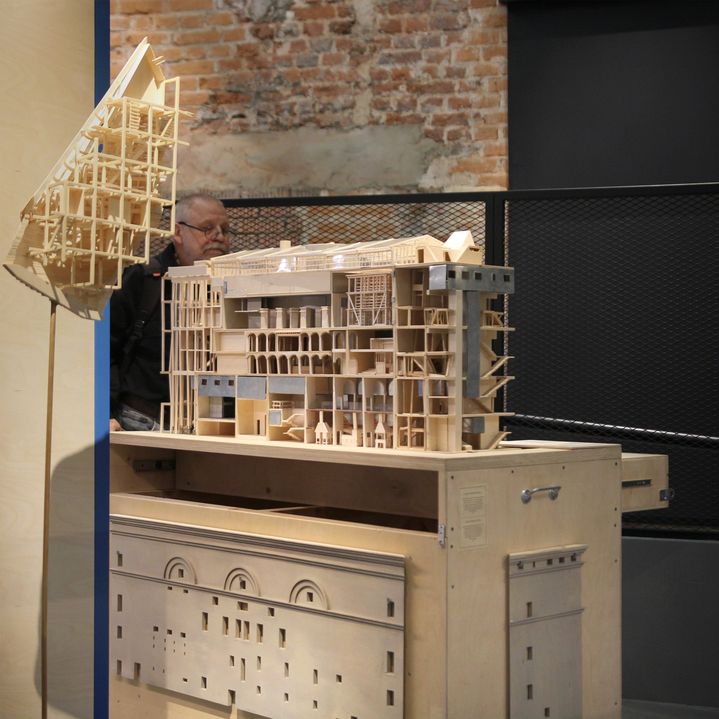 И все же образ макета «создающего», рабочего не то чтобы раскрыт, скорее обозначен. У меня есть собственная версия, почему – потому что это скучная история. Что макетов нет или их выбросили – правдой быть не может; лично мне в «Остоженке», да и не только там, регулярно показывают микромакеты разных версий объемных решений для одной и той же площадки, то распечатанные на 3D-принтере, то вырезанные из пенопласта.