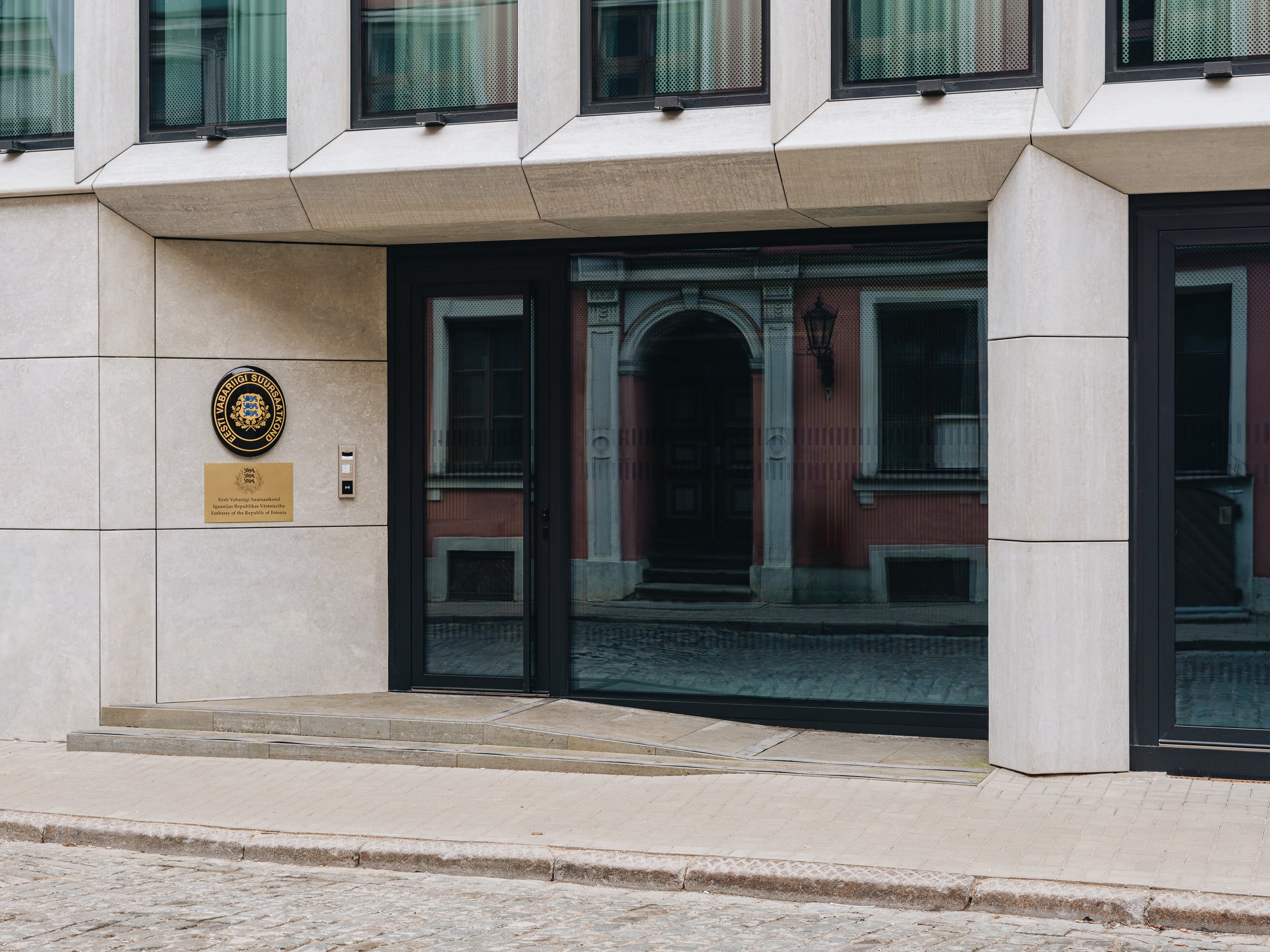 Здание включает посольство, консульство, выставочные пространства e-Estonia и официальную резиденцию посла с квартирой.