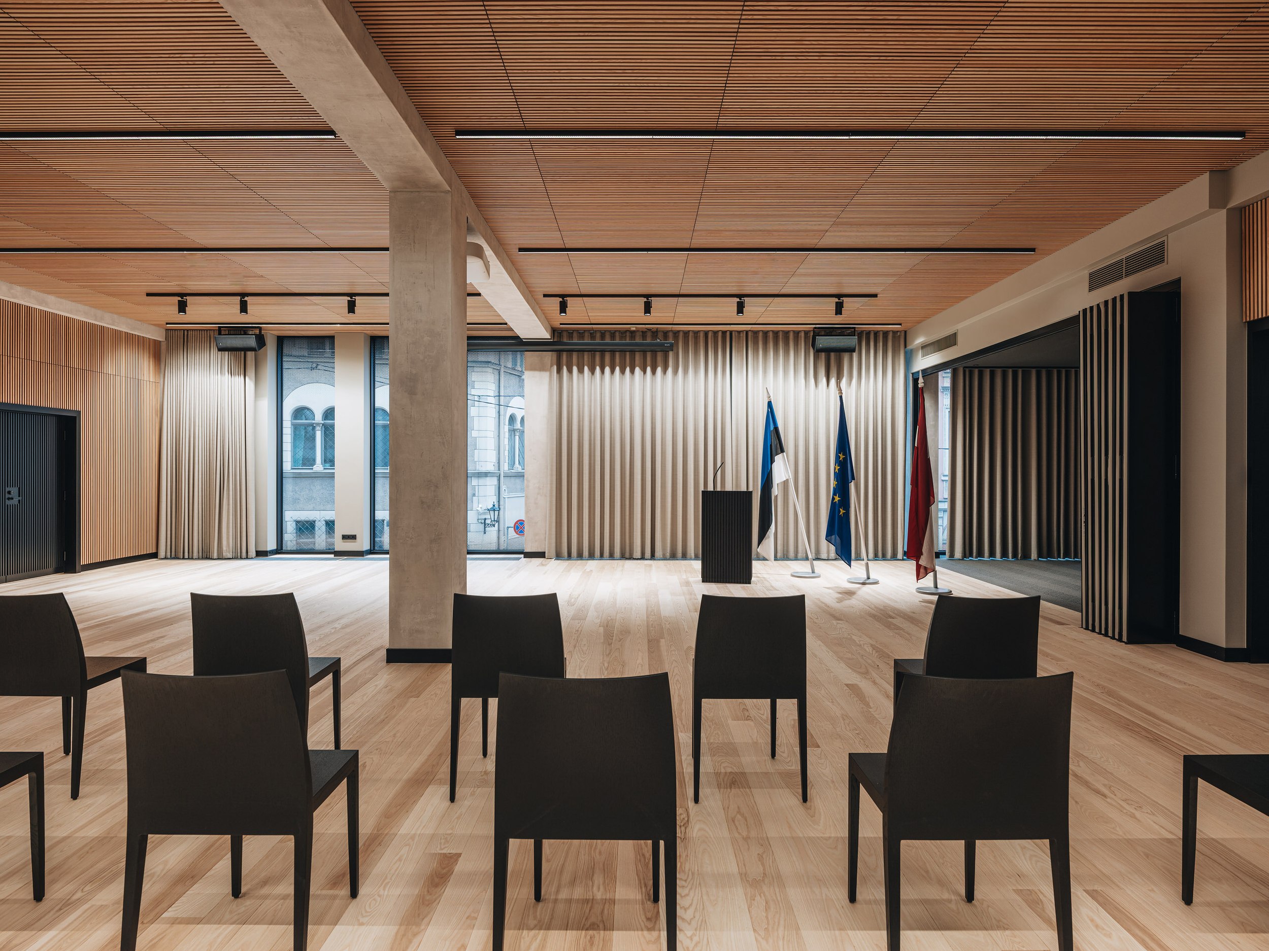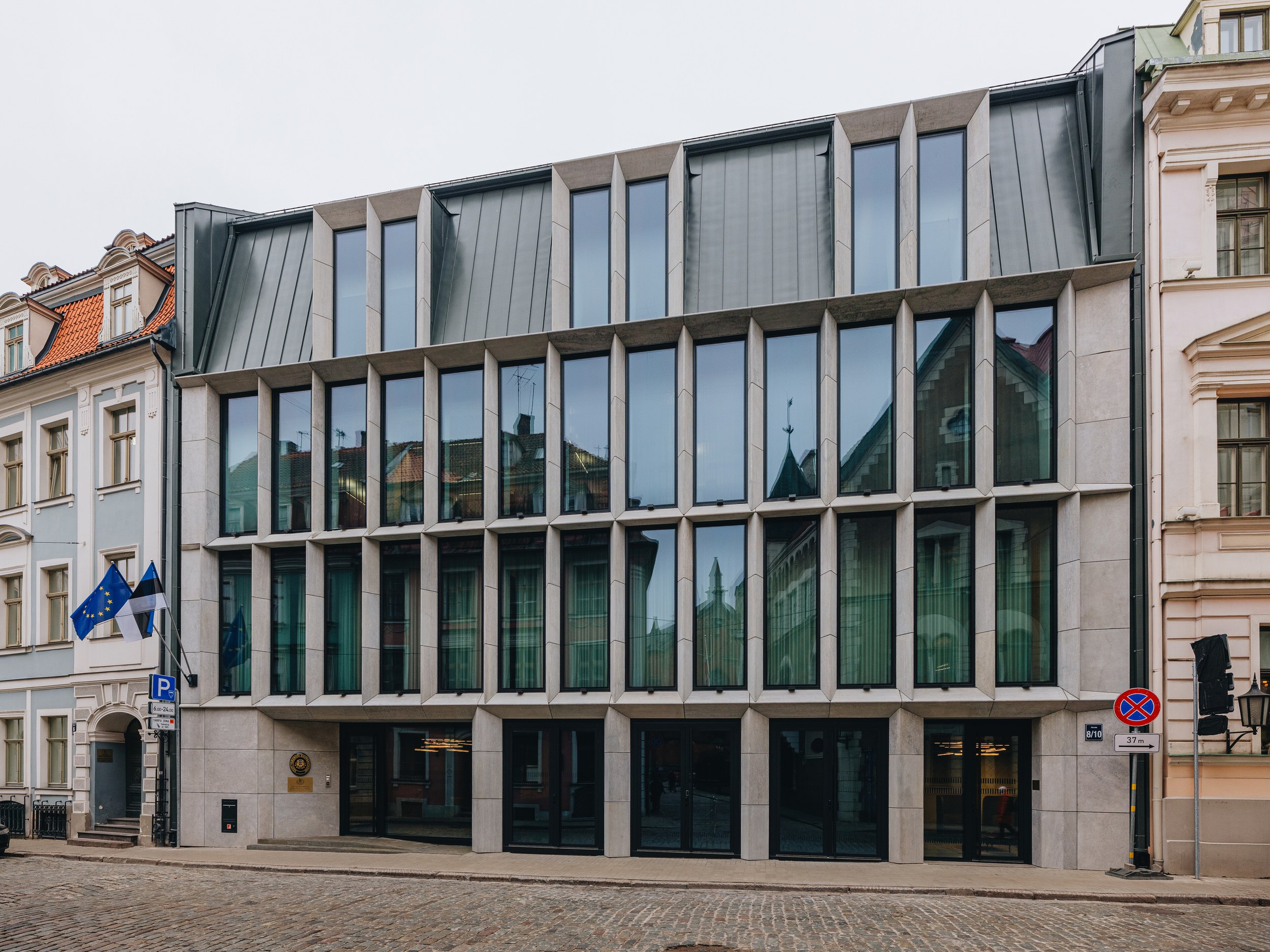 Посольство Эстонии в Риге – пример того, как можно переосмыслить модернизм средствами современной архитектуры. Здание, с одной стороны, представляет собой образец международного офисного стиля, а с другой – воплощает национальную идентичность Эстонии. Архитекторам удалось согласовать – причем дважды! – проект со всеми инстанциями и при этом сохранить до конца авторскую концепцию.