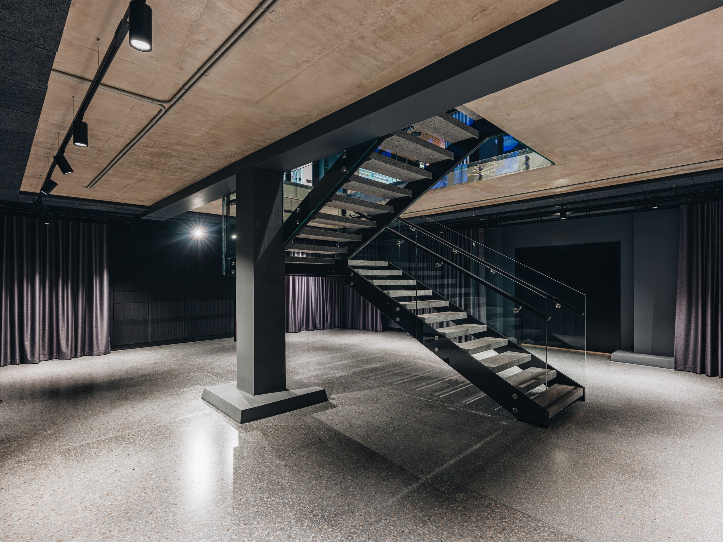 Архитектурный образ строится на контрасте стекла и камня. Простота геометрии компенсируется глубокой проработкой деталей. Цветовая гамма нейтральна – серый и черный в сочетании с прозрачным стеклом, что отражает современный деловой характер объекта и не вступает в конфликт с окружением.