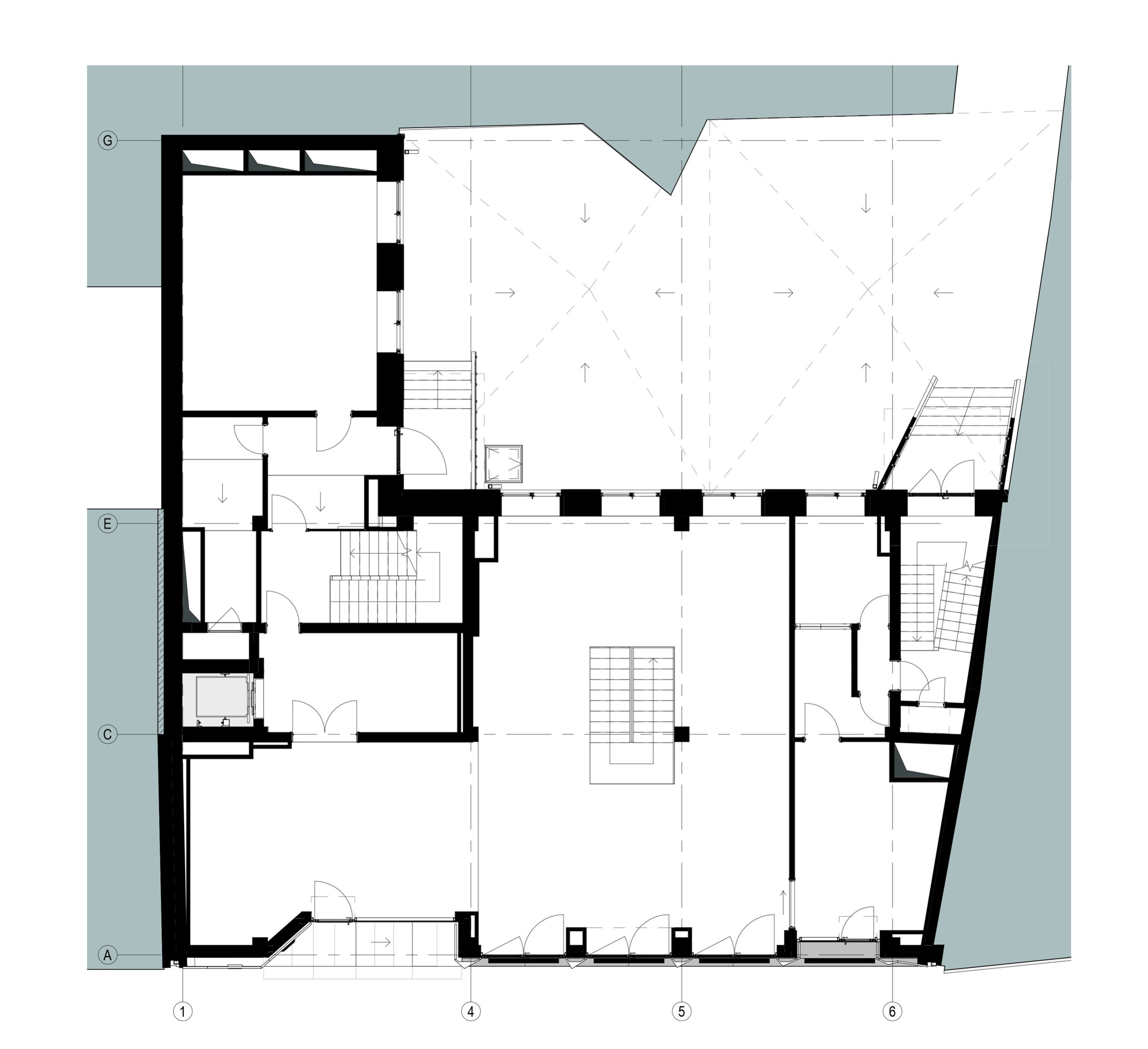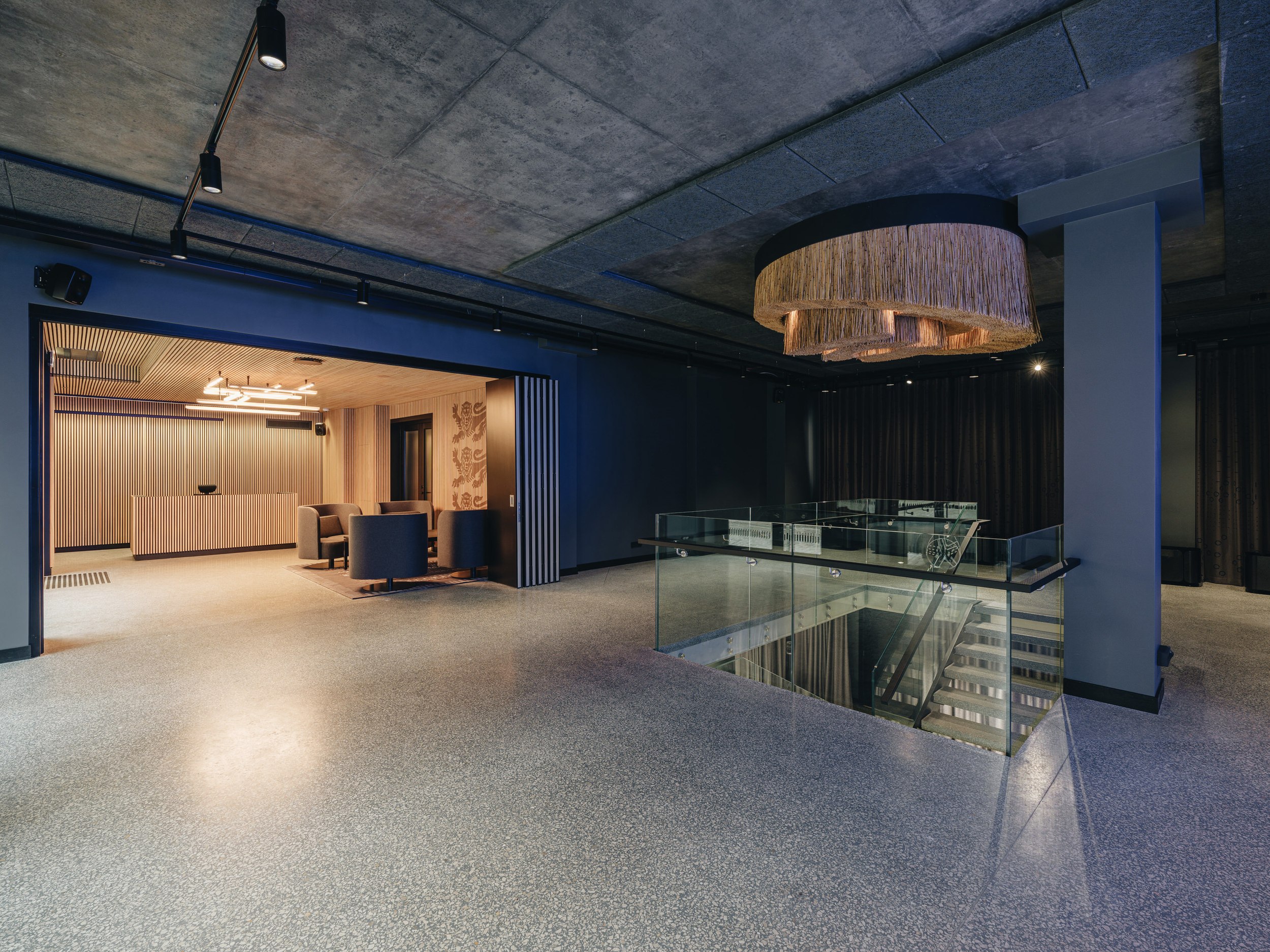 Планировка здания проста и функциональна: на цокольном и первом этажах размещены выставочные залы e-Estonia и консульский отдел, второй этаж занимает офисная зона и трансформируемое пространство для проведения мероприятий, а верхние этажи отведены под официальную резиденцию посла и его служебную квартиру с террасой.