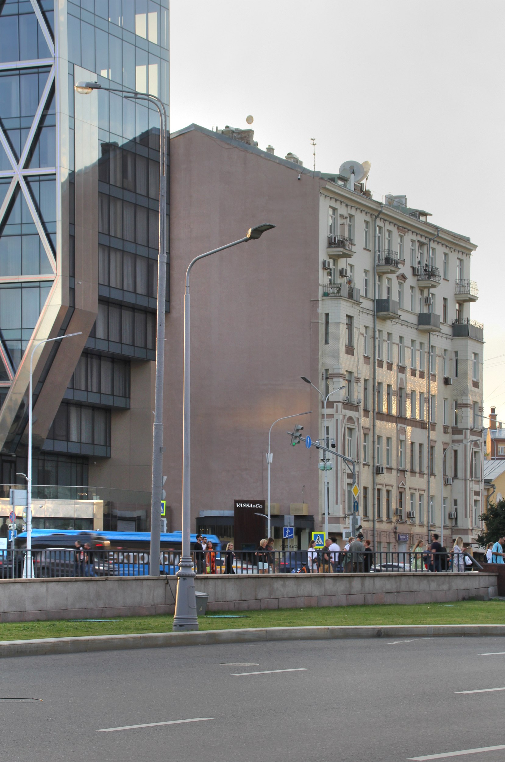 «В центре Москвы не так сложно построить здание с современной архитектурой, как в Петербурге, и всё же это тоже не то чтобы часто случается. Казалось бы, каждой возможностью такого рода необходимо пользоваться «на полную катушку», реализовывать проекты полностью, вместо того, чтобы с не очень понятной целью упрощать их в процессе реализации. Ну вот зачем? Сомневаюсь, что удалось много сэкономить, а сильную идею уполовинили.