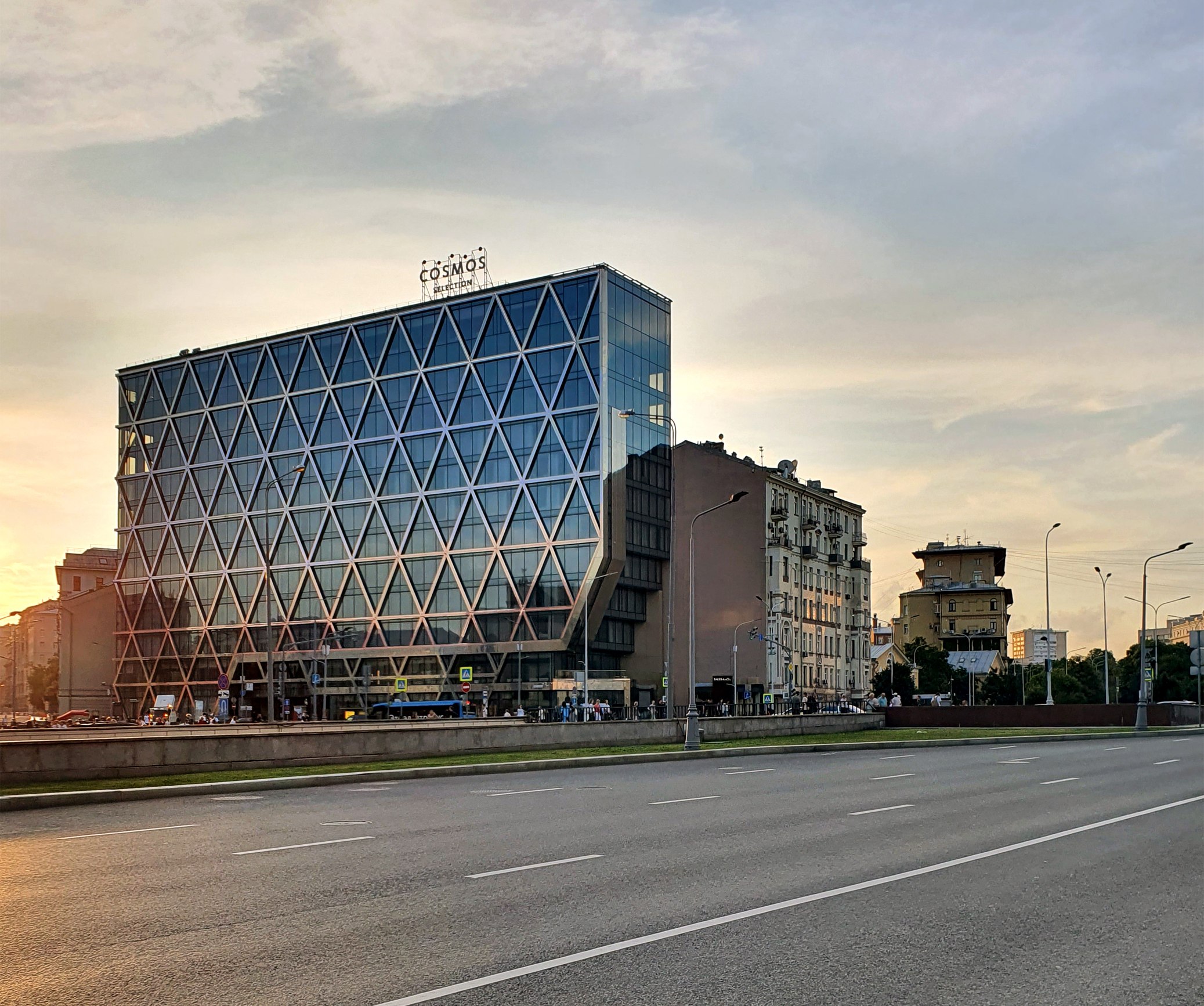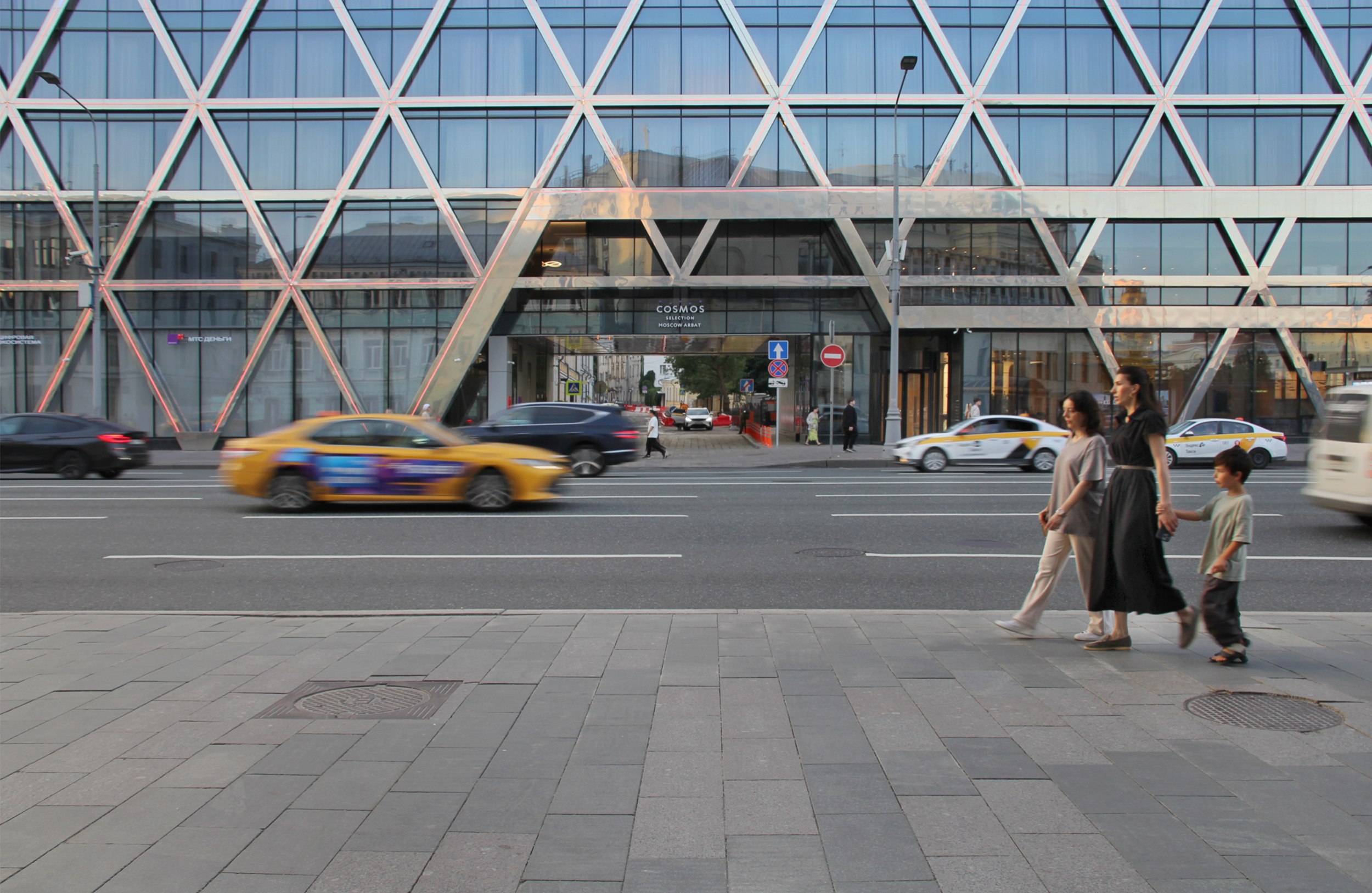 Cosmos стал заглавным акцентом Нового Арбата, бывшего Калининского проспекта, одного из самых известных модернистских проектов Москвы шестидесятых. И отвечает на Арбатской площади за четвертую часть ее «комплексной программы» – за современность.