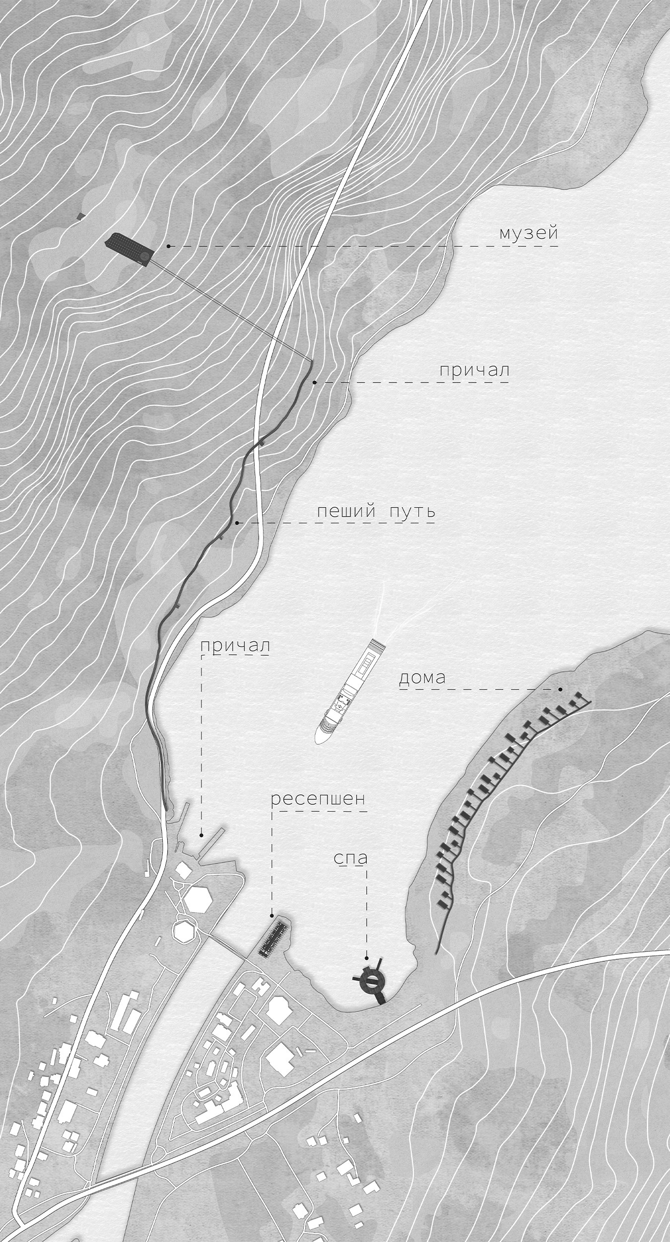 Проект направлен на решение этой проблемы, предлагая комплексную туристическую инфраструктуру, которая не только продлит пребывание туристов, но и укрепит связь между архитектурой и уникальной природой фьорда, создавая устойчивую модель взаимодействия человека и ландшафта.