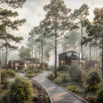 Задача проекта – превратить Великий Устюг из сезонной «родины Деда Мороза» в круглогодичное направление. Создается многофункциональный парк-отель в 15 минутах езды от города. Главная особенность – многоформатная архитектура. Территория разделена на тематические зоны с разными типами размещения: глэмпинг, коттеджи со спа, отель, таунхаусы. Композиционным центром становится открытое «Поле» – событийное пространство с амфитеатром и арт-объектами. Архитектура каждого кластера обладает уникальным, но узнаваемым образом, объединённым общей концепцией парка-отеля.