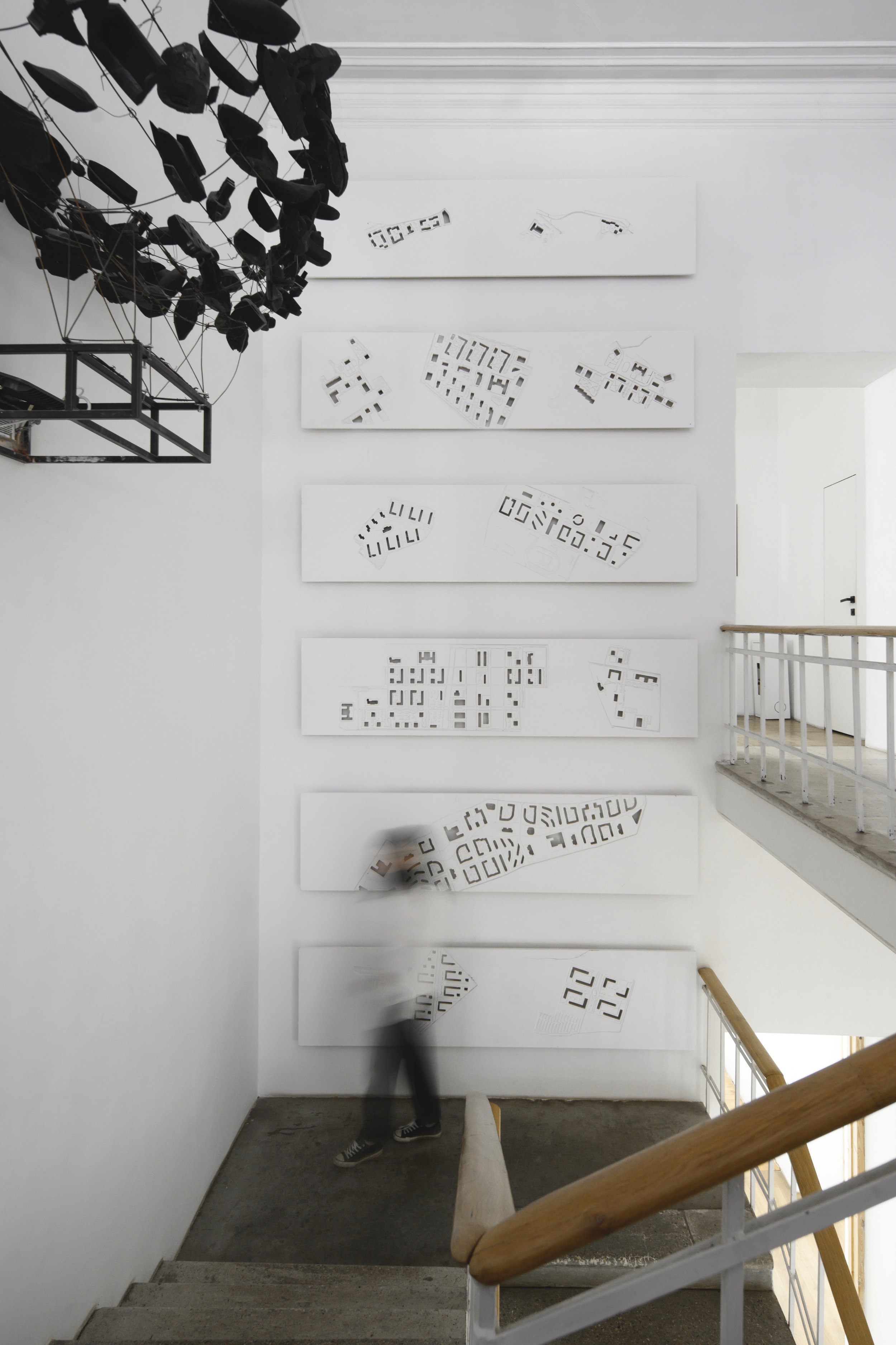 Как и прежде, помещения концентрируются вокруг двух лестниц. Парадная, ныне бетонная, лестница располагается у главного входа. Служебная, со сложным узором чугунных перил, – в северо-восточной части здания. Кольцевая планировка первого этажа добавляет объема и простора: мастерскую можно пройти по кругу.