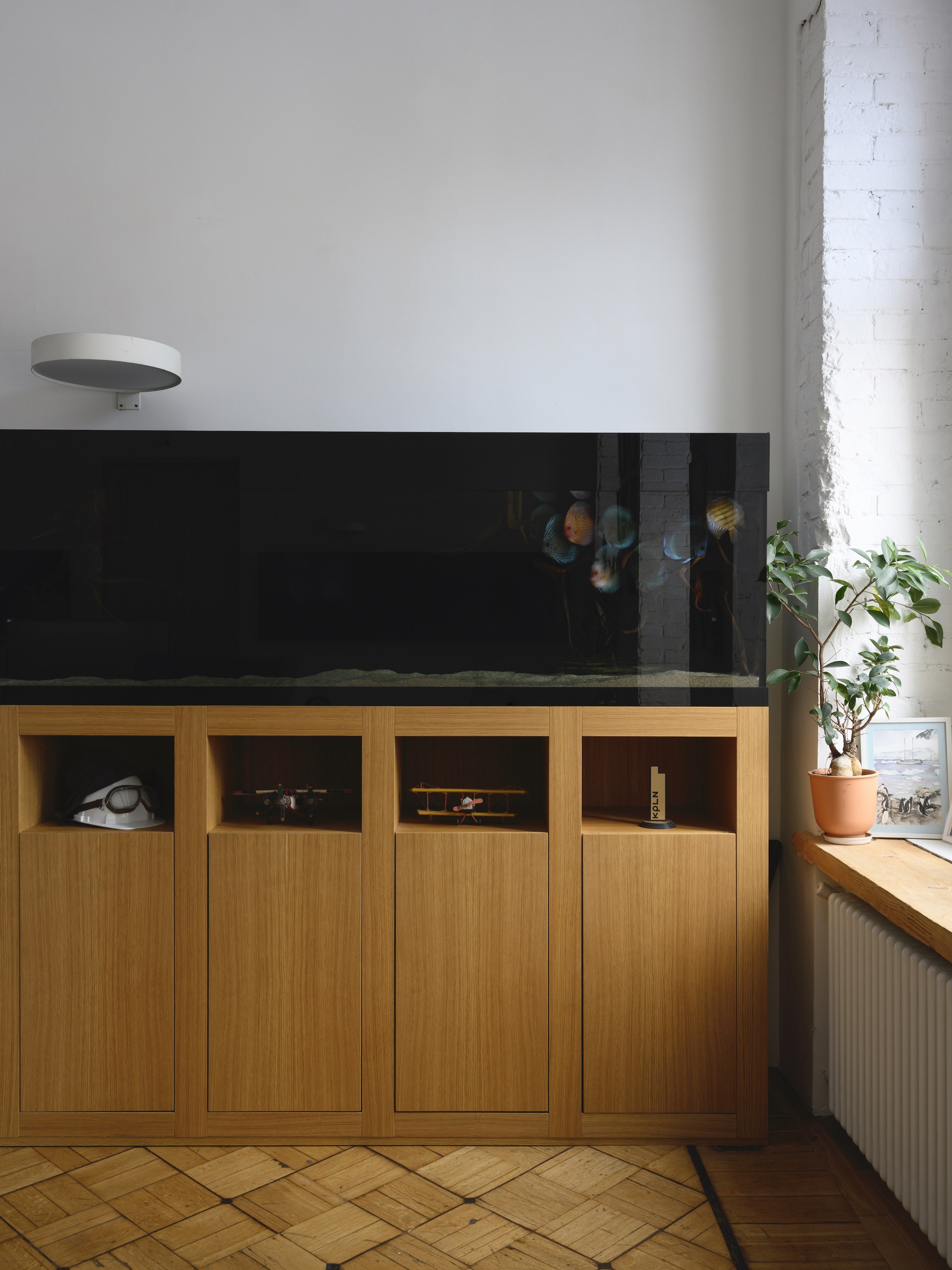 Многие детали, которые можно увидеть в интерьере, созданы лично сооснователем бюро и командой. Например, керамические буквы логотипа KPLN Сергей Никешкин сделал из глины и обжег в печи.