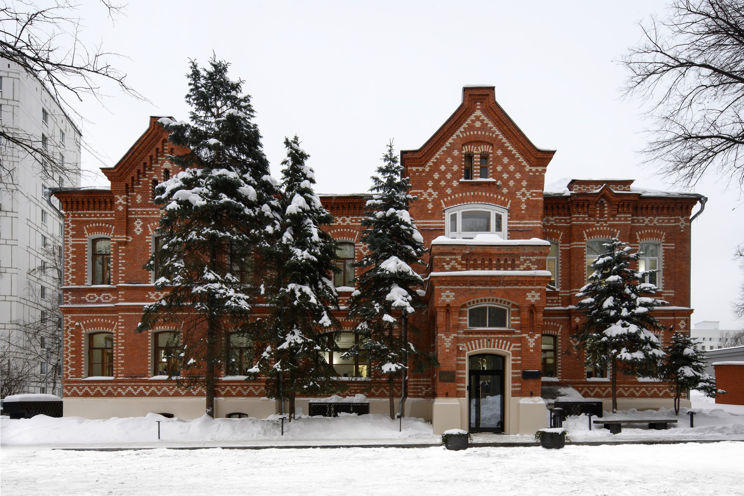Выбор KPLN в этом свете интересен: среди проектов бюро нет реставраций или приспособления исторических зданий, однако команда разместилась в нарядном кирпичном особняке XIX века, расположенном неподалеку от парка «Сокольники».