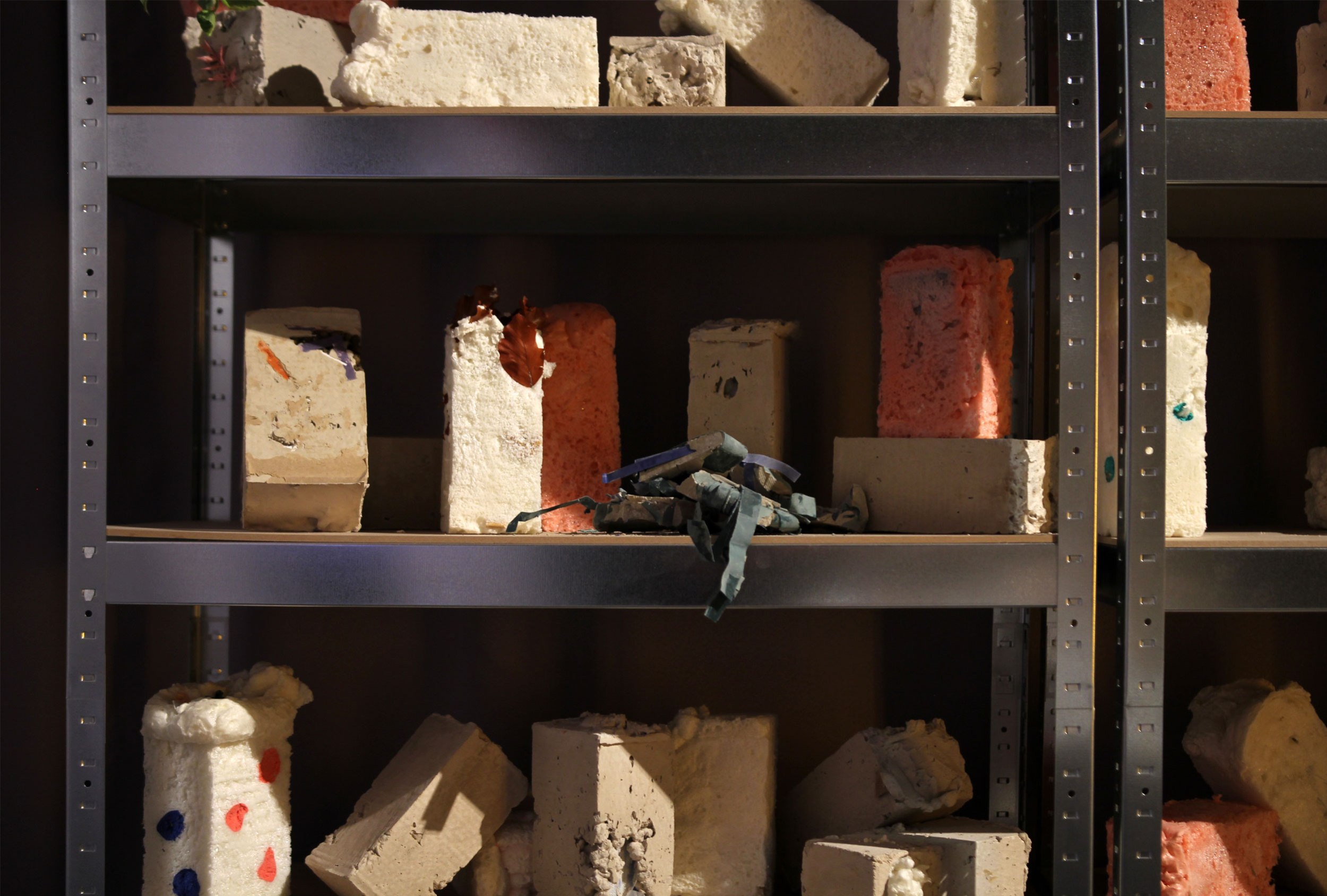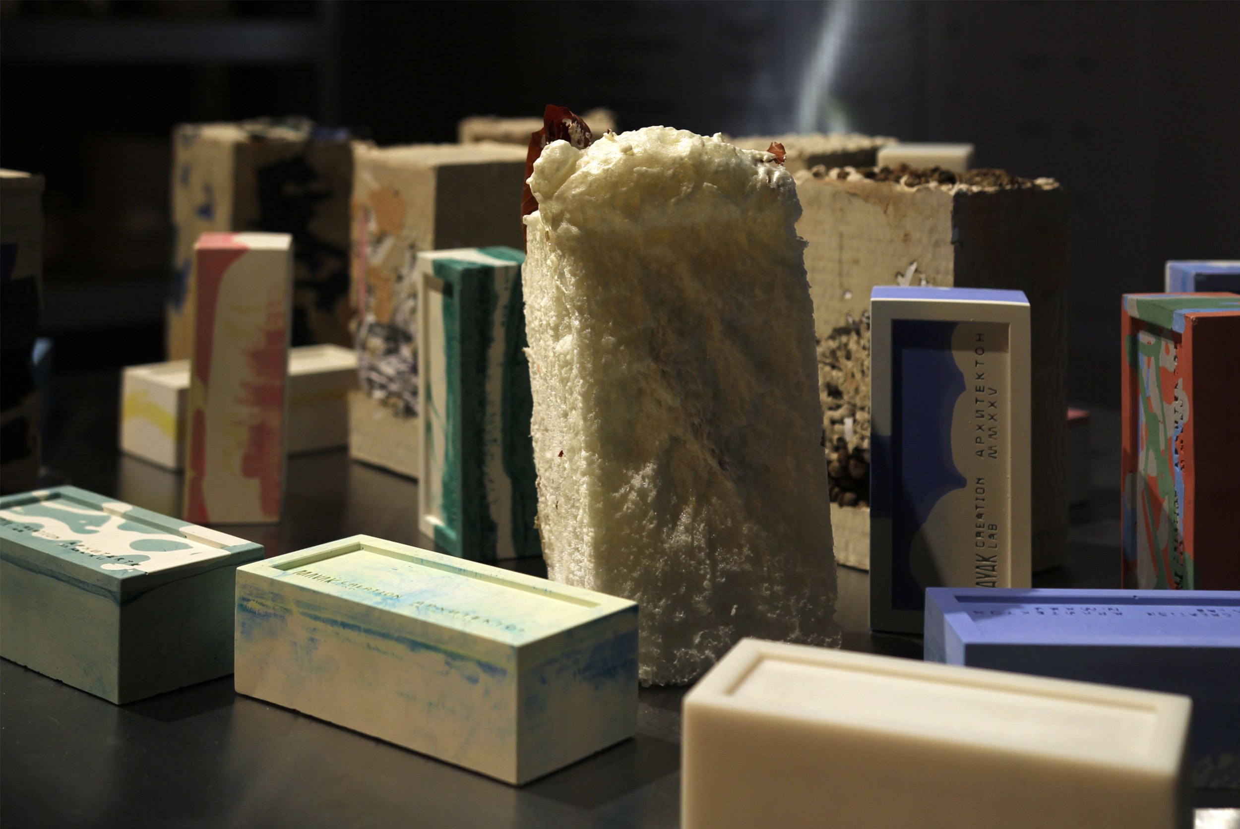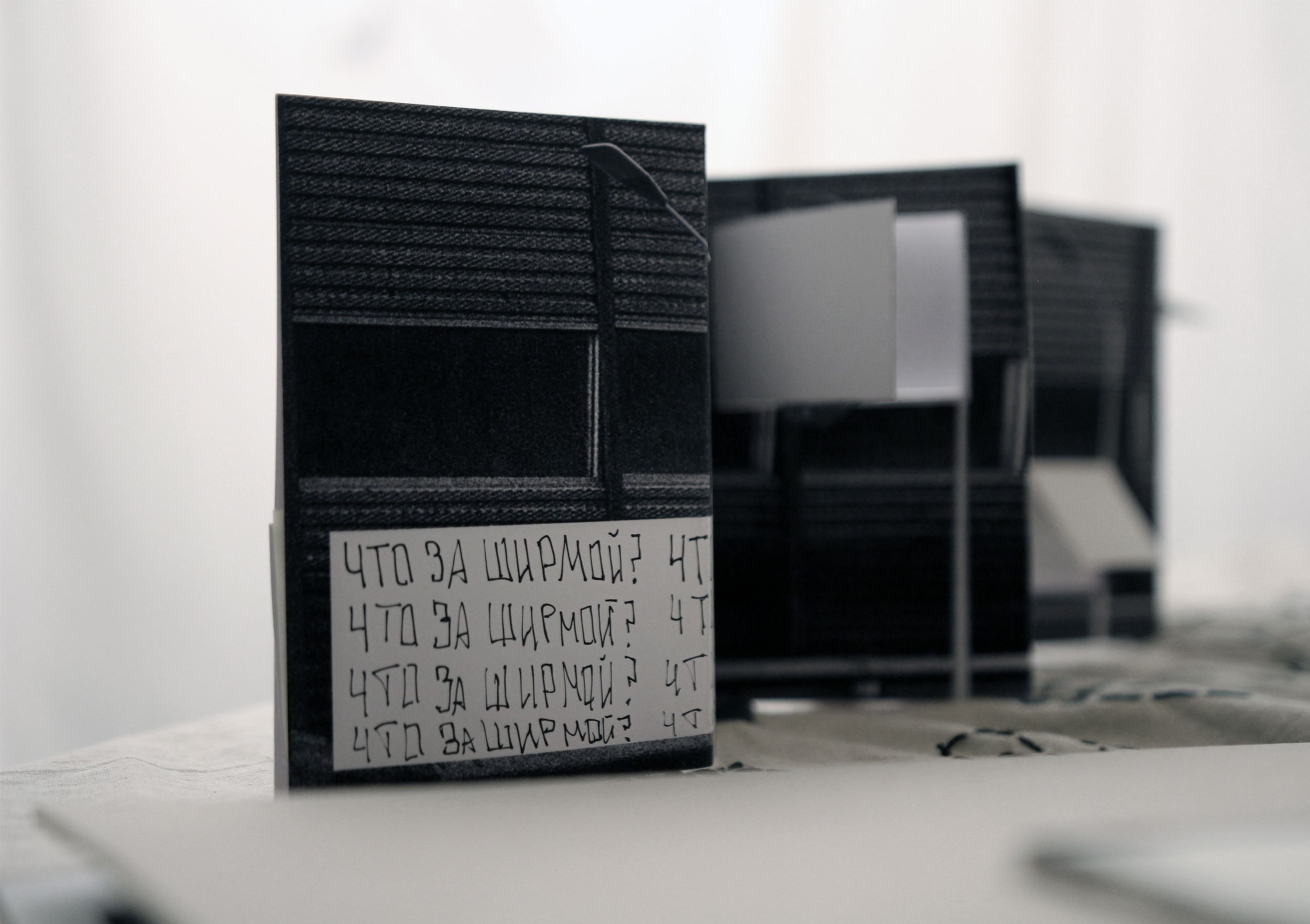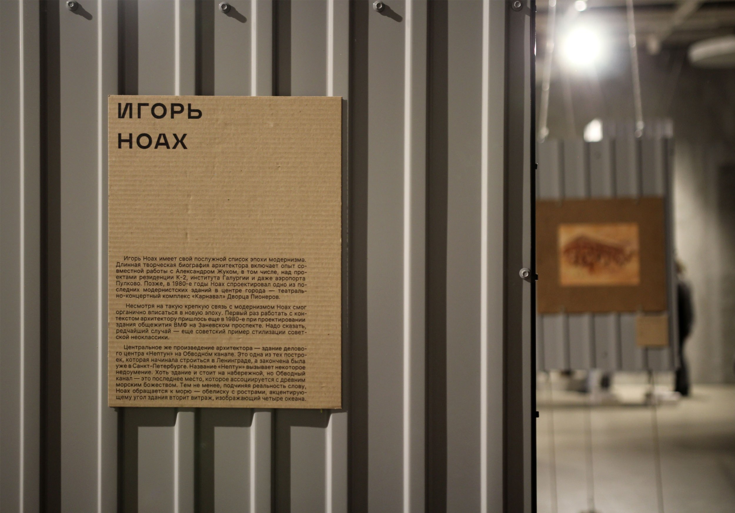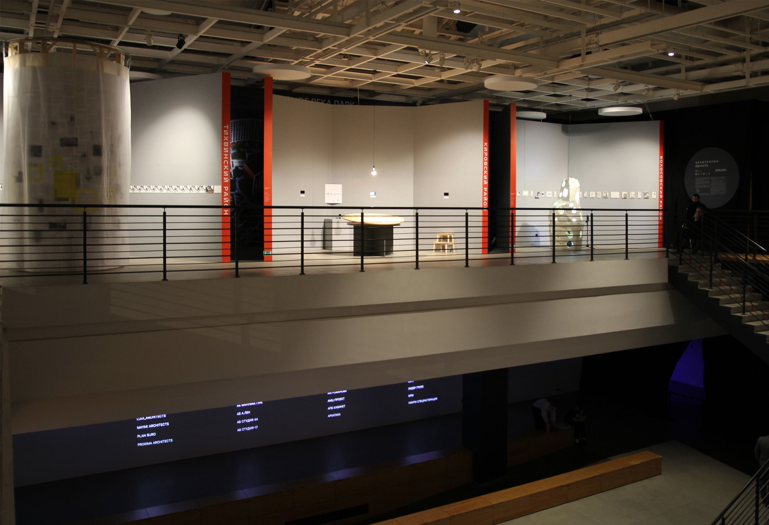 Чему отлично отвечает экспозиция, предложенная Сергеем Падалко: в отличие от спирали-ракушки, внутри которой на прошлом Архитектоне показывали архитектуру модернизма 1960-х – 1970-х, с которым, по словам Андрея Левашова, все более-менее понятно, – здесь экспонаты закреплены коробах из профнастила, которые парят в пространстве на растяжках и, кроме того, имеют четыре разные стороны: черную для синагоги, храмов, ЗАГСов и крематориев, а также белую, серую и металлическую для жилья и прочего. Бродя по выставке, быстро теряешься и приходится «встряхиваться», вспоминать, что где, так что эффект хаоса налицо.