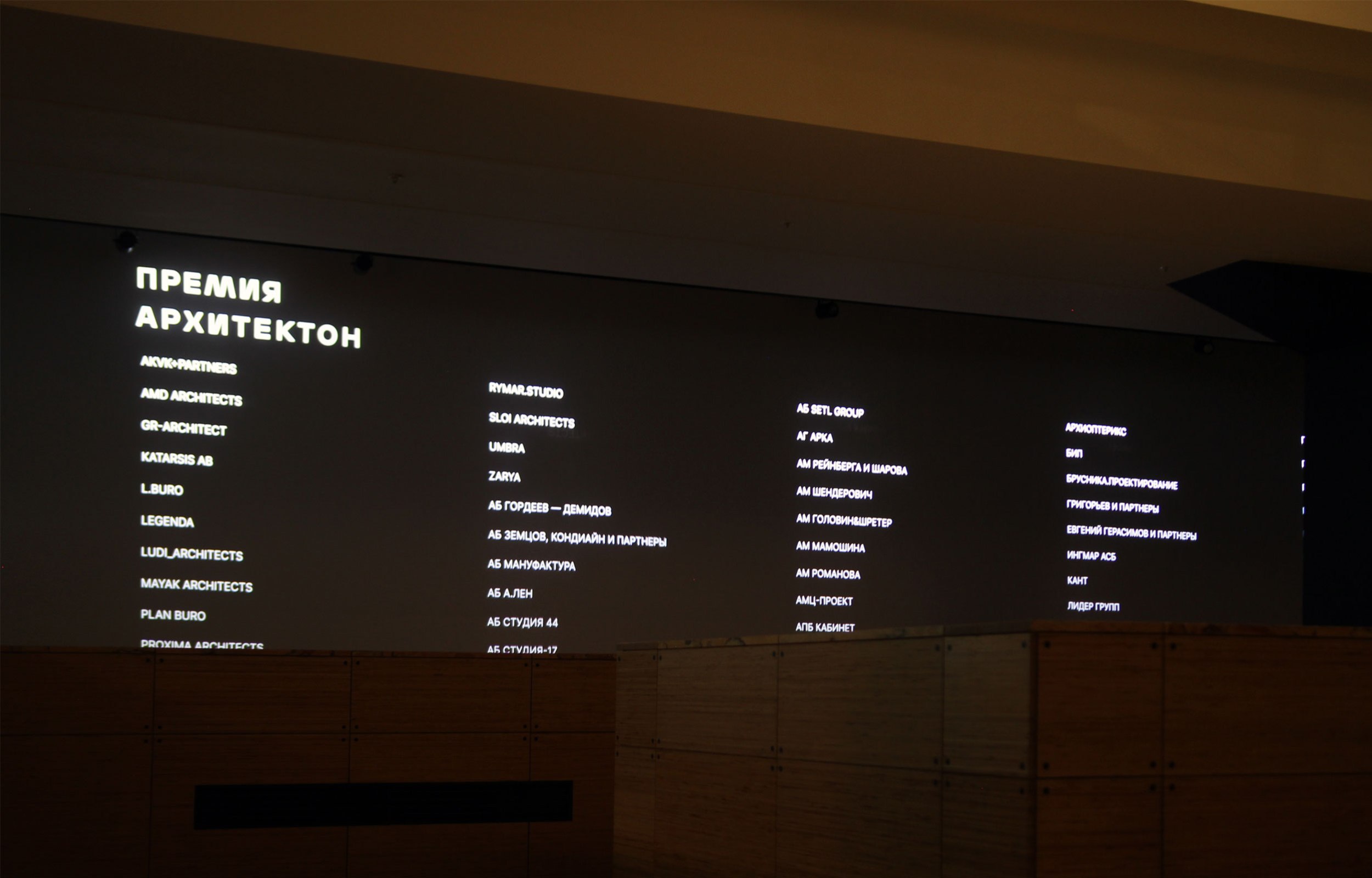 В тех галереях первого яруса, что очень удобно, показаны списки всех бюро-участников. А участвовать подавать работы на премию Архитектона могут любые архбюро с «пропиской» в Петербурге – то есть те, кто имеет в городе свой офис. К примеру, «Гордеев&Демидов» происходят из Екатеринбурга, а «Прохрам» – из Минска и имеет офис в Москве. Но поскольку они одновременно и »питерские", и и среди кандидатов на получение премии проекты обоих бюро можно найти.