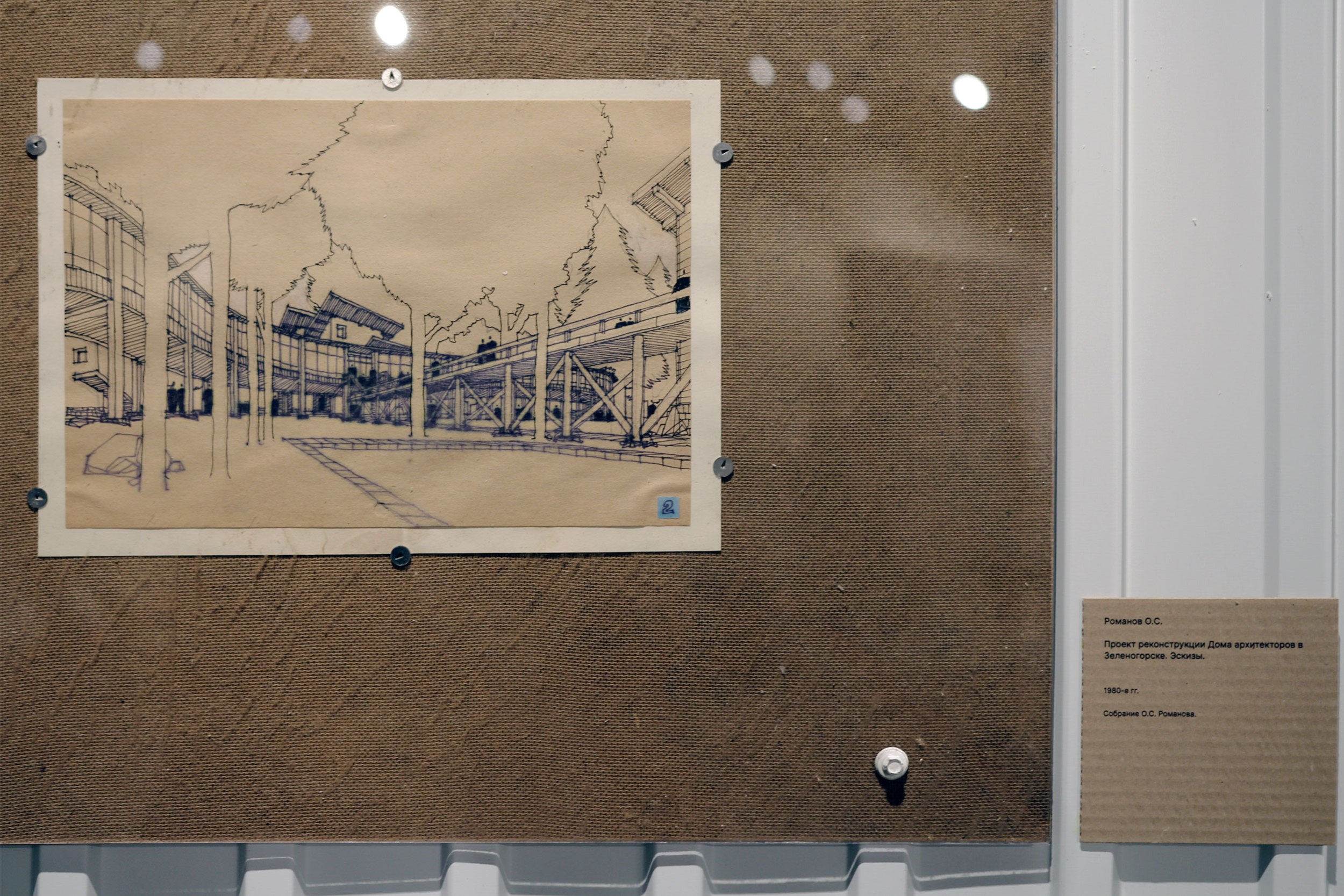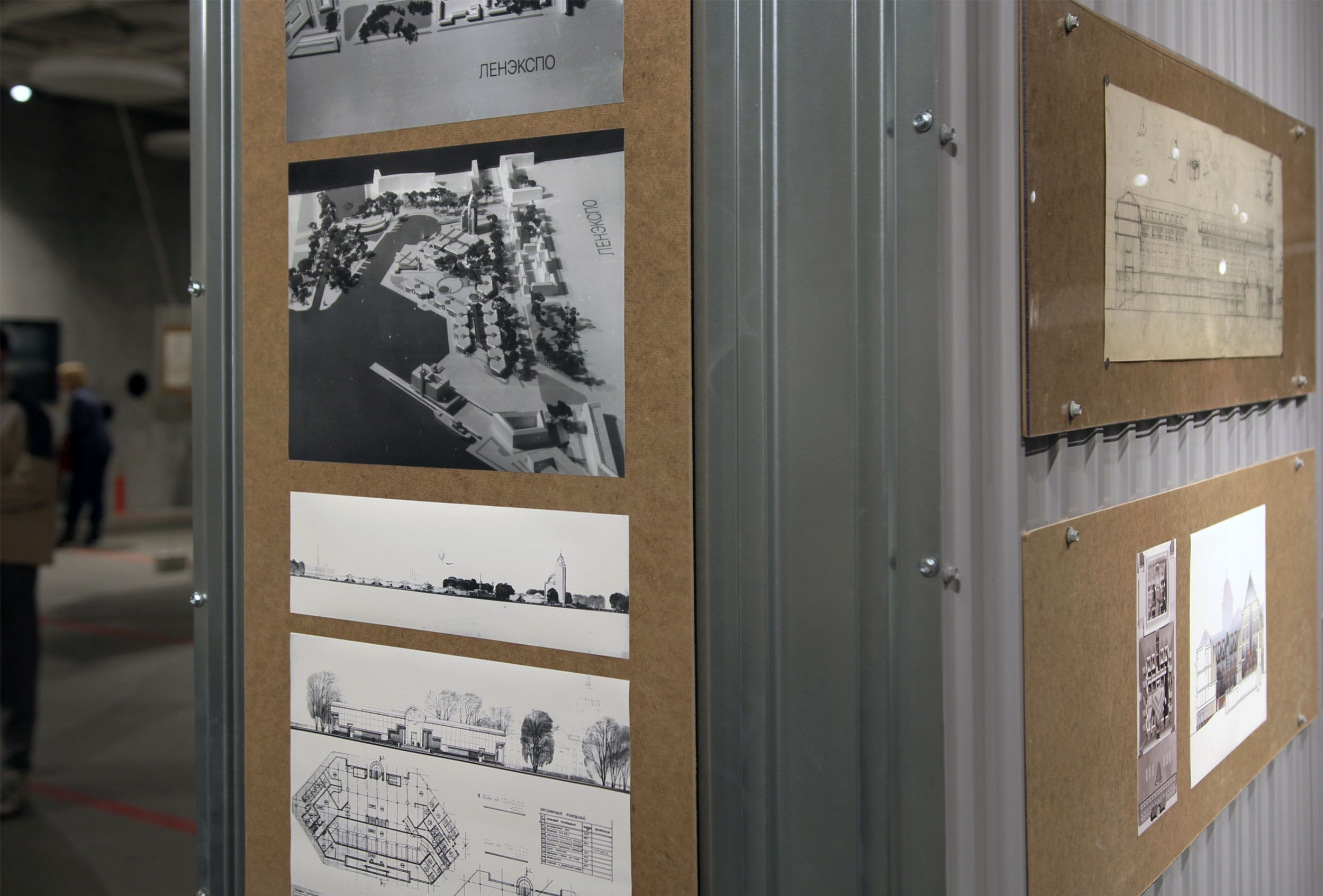 Дальше, в большом зале – информативная, но не изматывающая выставка, посвященная перестройке и девяностым, «революции наоборот» и «наоборот революции». Здесь Андрей Ларионов собрал архитектурные проекты – попутно сделав ряд архивных открытий. К примеру, ему с коллегами удалось обнаружить авторство учебно-гребной базы Кораблестроительного института, проекта 1973 года, который представлен как первый пример постмодернизма в Ленинграде. Автор – архитектор Игорь Буслович, а проект был реализован через 10 лет, в 1983. Таких историй здесь полно; кураторы дают для периода определение «хаоса», принципиально не поддающегося полной систематизации.