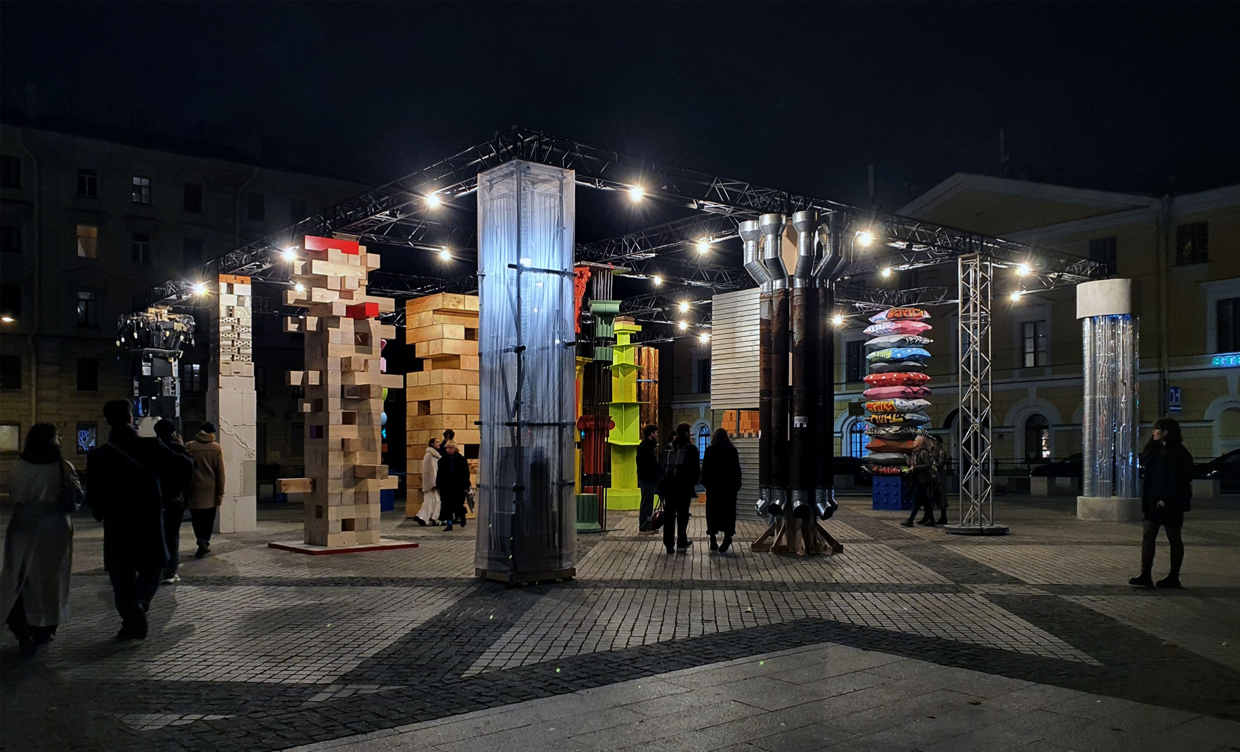 Еще элемент, который перекликается с фестивалем 2023 года – инсталляции на площади. Участников, среди которых есть и Брусника, и студенты, определили с помощью опен-колла и попросили каждого сделать колонну.