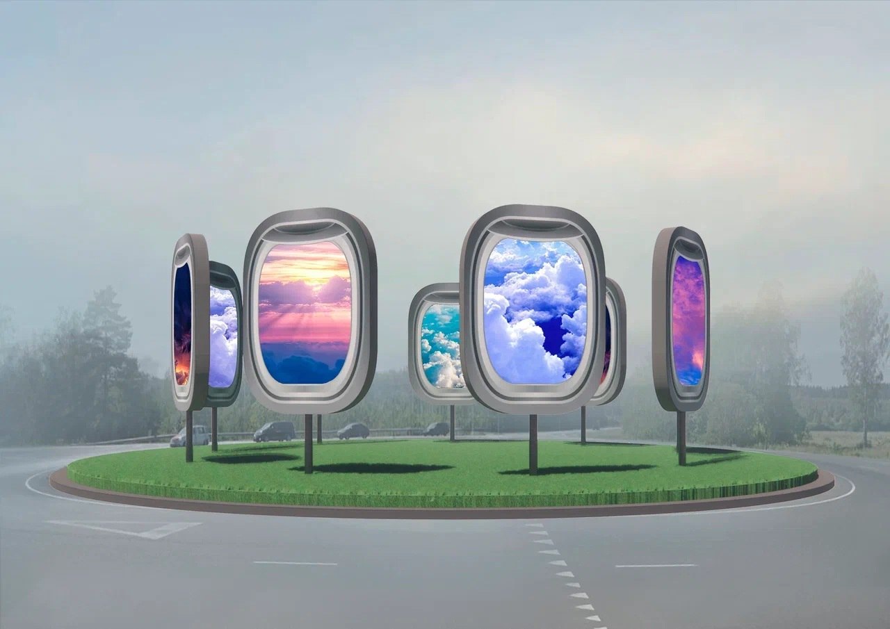 Инсталляция из десяти иллюминаторов с изображениями неба и стереозвуком может быть установлена на круговом перекрестке. Она создает эффект движущегося пространства, намекая на эмоциональную связь человека с небом.