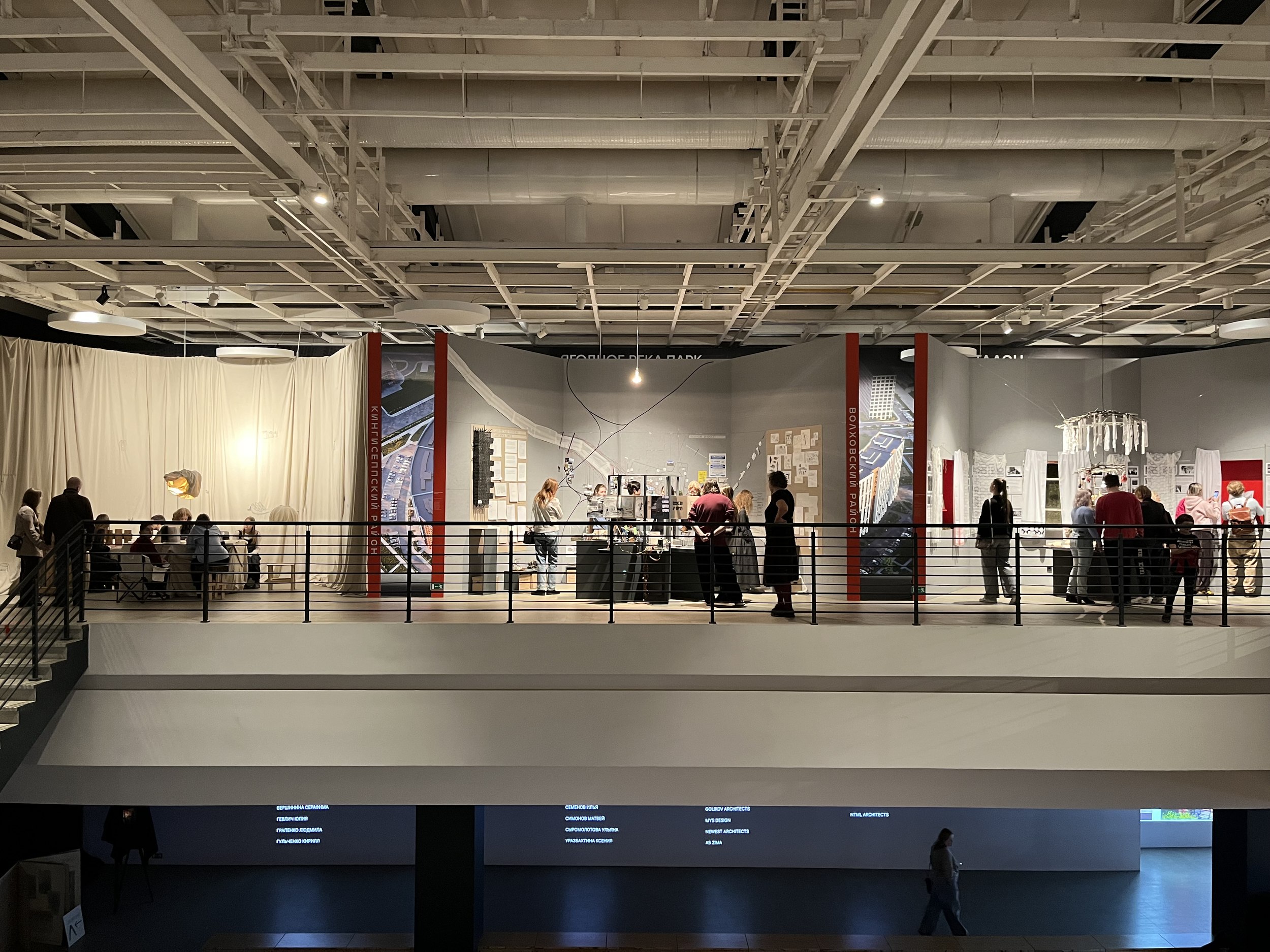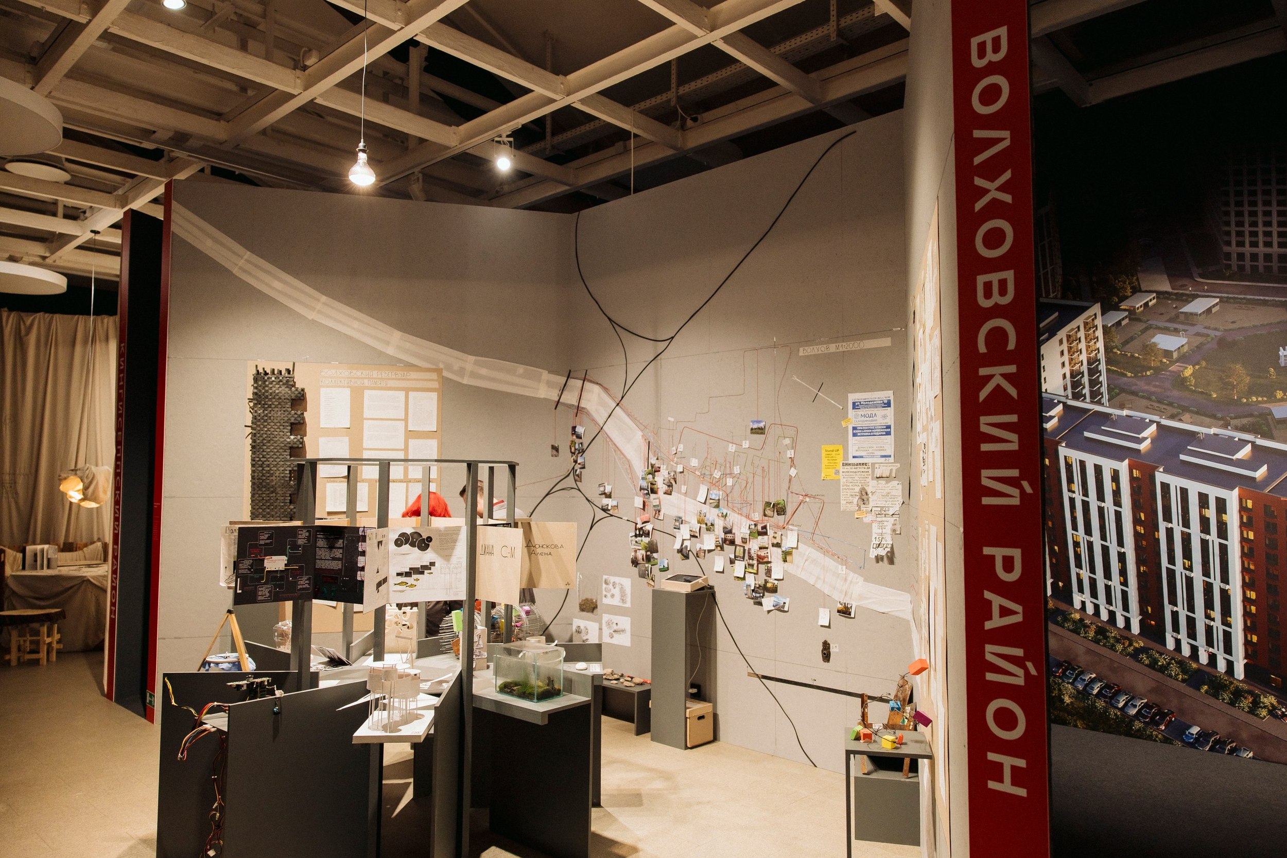 У выставки «Область» есть еще одно измерение. Один из кураторов фестиваля Сергей Падалко предложил разместить в зазорах между экспозициями студентов стенды с объектами застройщиков – спонсоров «Архитектона». И это, конечно, тоже часть Ленинградской области.