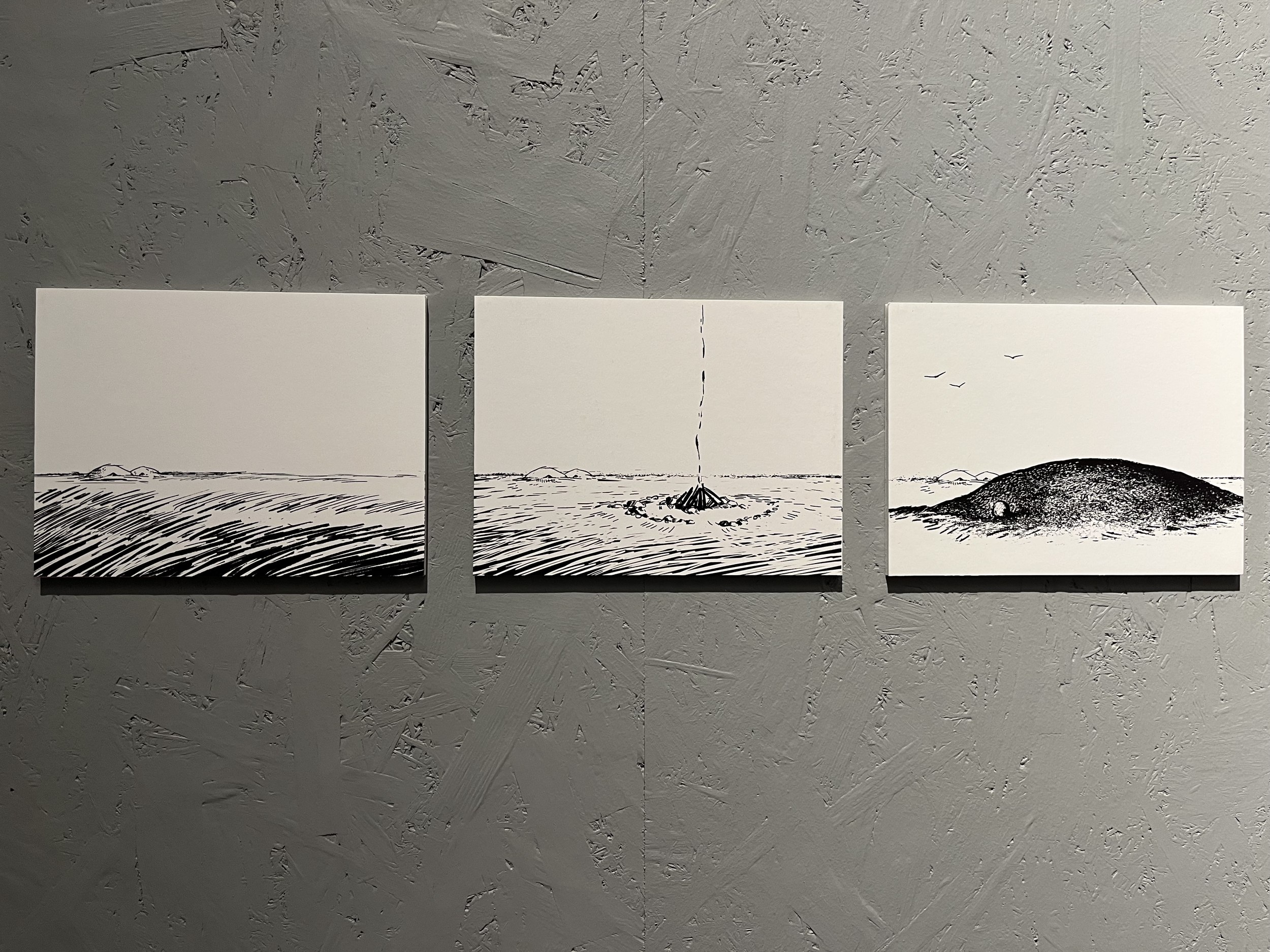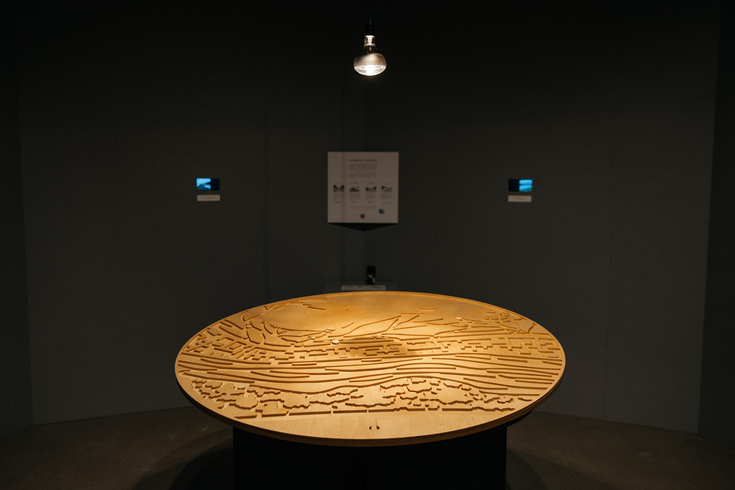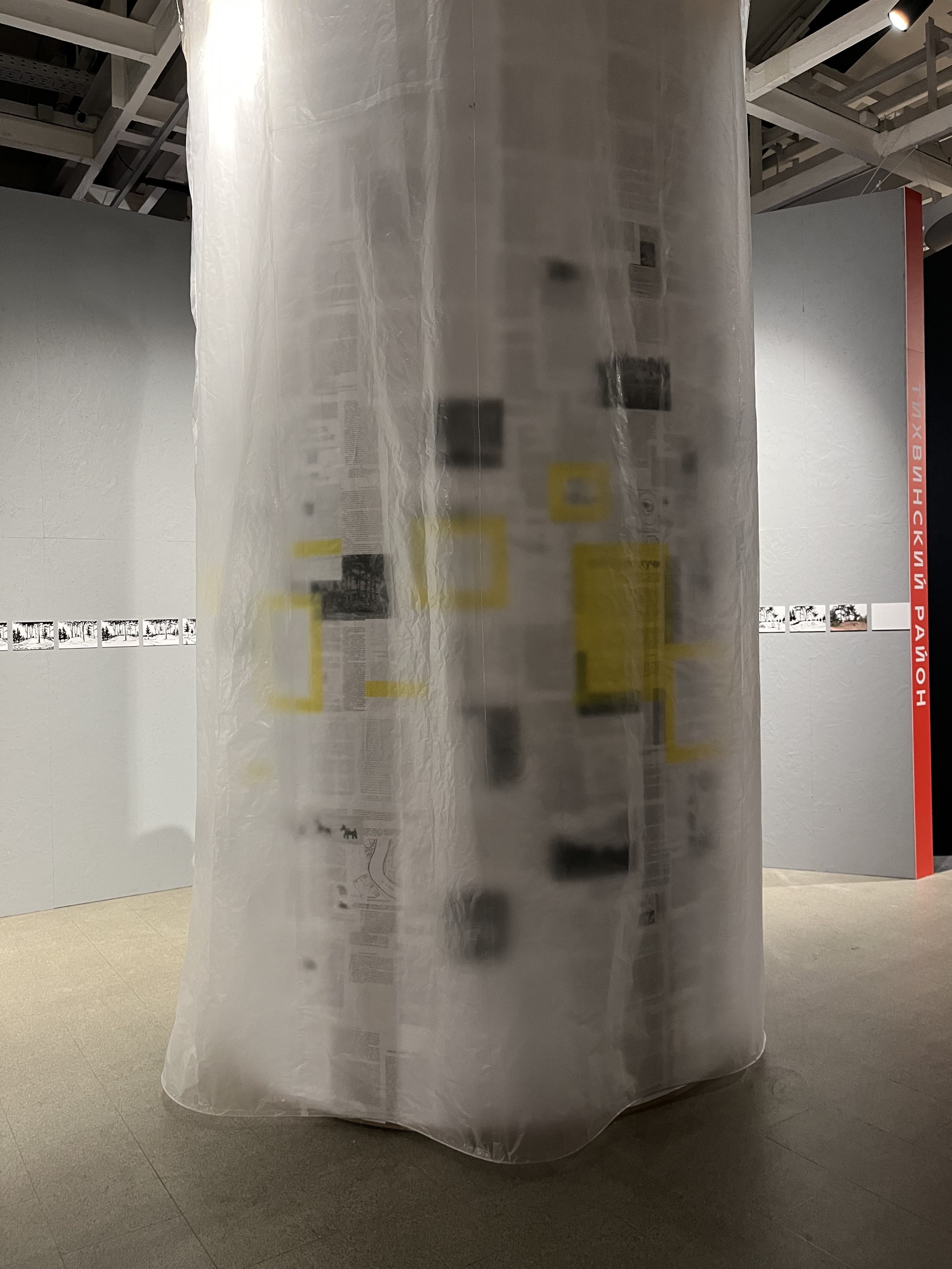 Андрей Воронов выбрал для своей группы курганы Приладожья – такой объект, который заставляет думать, философствовать и признавать собственное бессилие. Для архитекторов они представляют собой один сплошной парадокс. Лучше всего для кургана, чтобы о нем никто не знал, кроме ученых и археологов. С другой стороны, без охраны и особого статуса курган могут срыть, превратить в велотрек или погреб. Курган – это насыпь, но не любая насыпь – курган. О них сохранилось мало достоверной информации, основной способ исследования – послойное снятие грунта, которое приводит к разрушению памятника. Поэтому ученые ждут появления более щадящих способов и хранят расположение курганов в секрете. Трехчастная экспозиция смогла отразить эти противоречия. Листы с описаниями и исследованиями находятся за полупрозрачным слоем, прижимая который можно прочитать тексты. Но как только убираешь руку – их снова заволакивает туманом. Внутри столпа – тихое темное место, где ты можешь побыть с курганом наедине. На стенах – эволюция места от рождения до исчезновения.