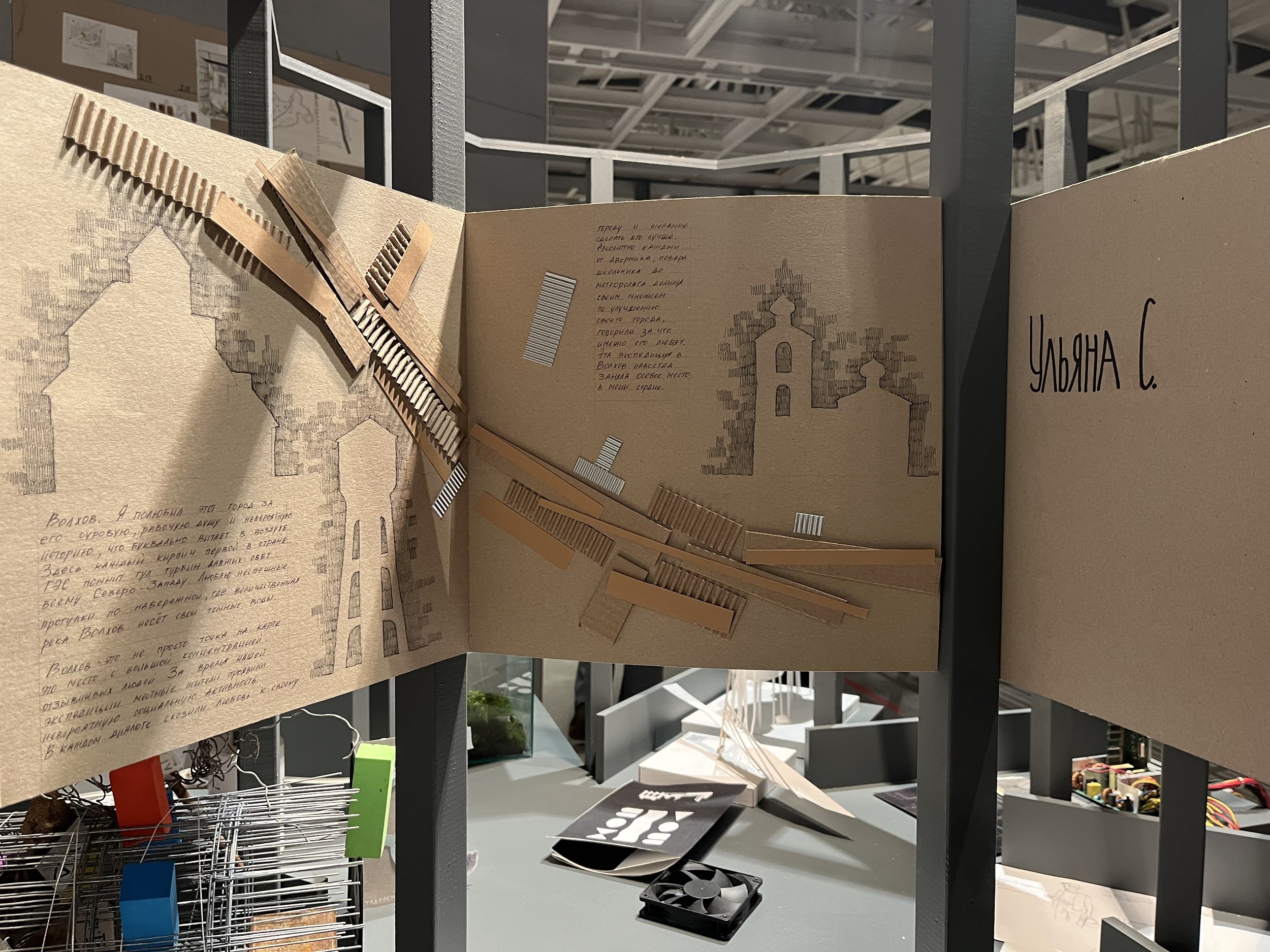 Здорово увидеть Ленобласть через призму школы МАРШ. Илья Мукосей, сам ничего не зная о месте, куда отправится, предложил студентам «порыться в интернете» и собрать личный путеводитель из самого удивительного. На месте же выяснилось, что даже краеведческий музей не отражает все многообразие района. Поэтому группа вступила в диалог с местной средой через сбор материальных предметов и в быстром темпе их музеефицировала. Студенты превратились в музейных сотрудников с каталогами и классификациями, подготовив для «Архитектона» несколько отделов, заполняющих лакуны Волховского музея. На презентации впечатлила глубина и серьезность подхода, в павильоне – количество материала и фактуры, собранных в такой короткий срок.