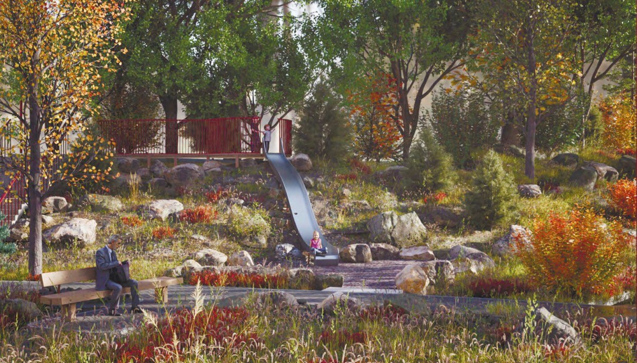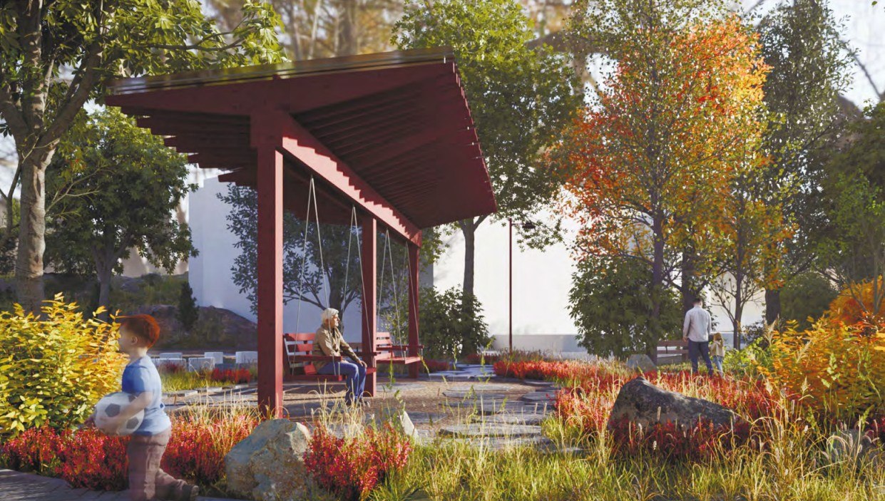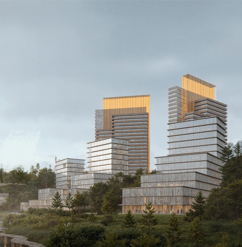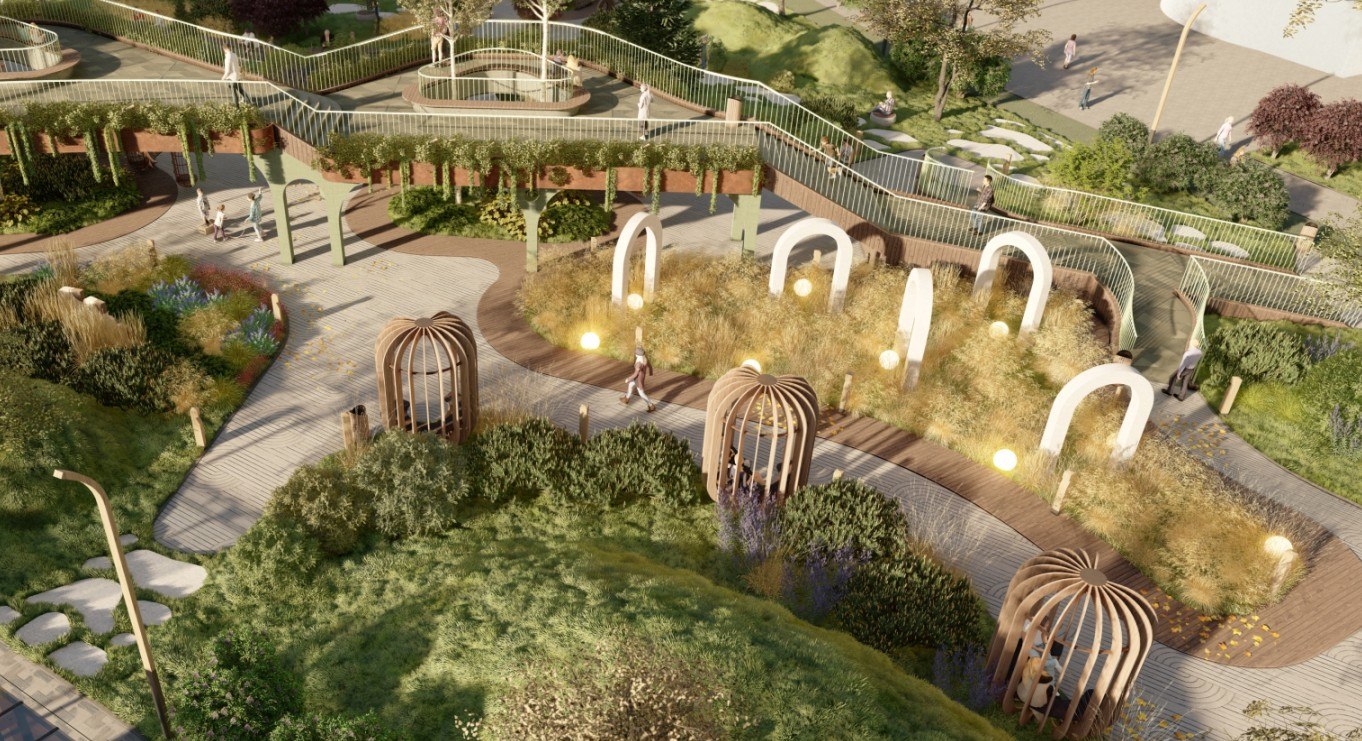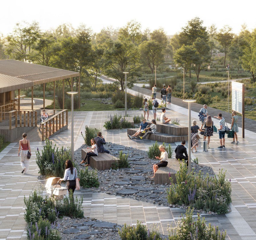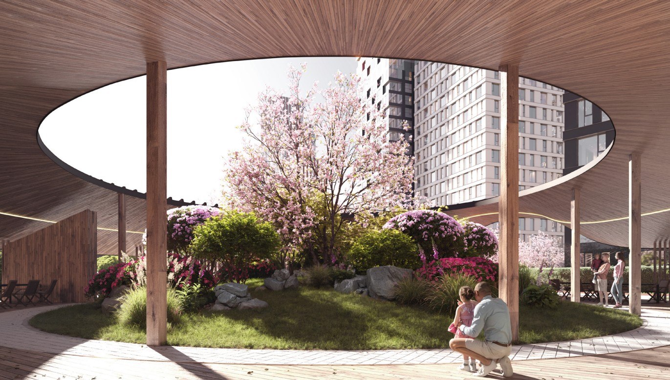 Благодаря тому, что жилые этажи ЖК STARK подняты на 6 метров стилобата, внизу, на первом уровне, открылось пространство для магазинов, кафе, всевозможных сервисов в окружении зеленых зон, плавно огибающих здание. А наверху стилобата, на его кровле, запроектирован приватный двор-сад, защищенный от шума, который коллеги из Concrete Jungle условно разделили на “восточную” часть с павильонами для отдыха и медитации, и активную “западную” с площадками для игр и спорта. Таким образом этот проект становится не только символом трансформации городской среды, но и диалогом между природой и городской жизнью, что является необходимым для устойчивого и гармоничного развития.