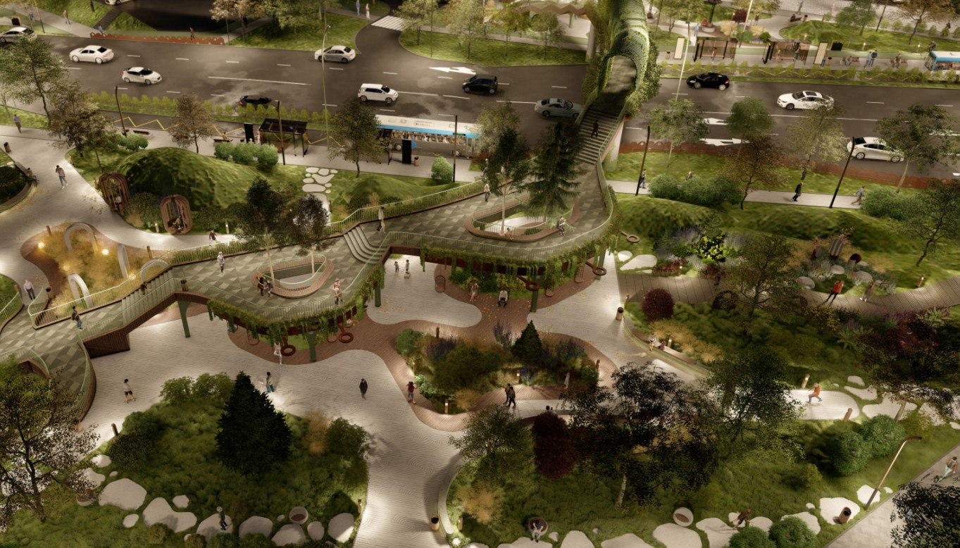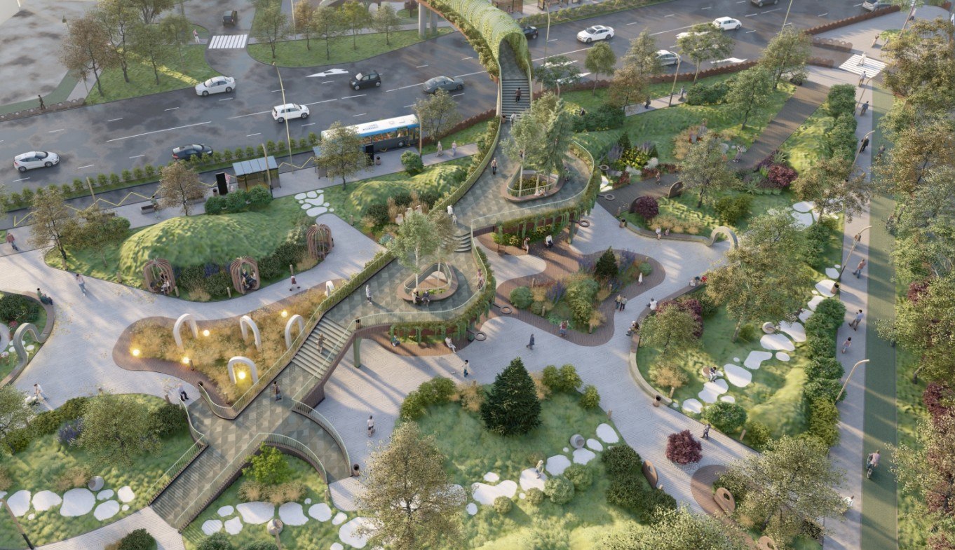«Проект благоустройства площади Серышева сочетает транзитную функцию с пространством для отдыха, прогулок и культурных мероприятий. Велодорожка проходит по боковым пешеходным путям, парковки сохраняются вдоль улицы и на парковке ТЦ «Счастья». Центральный памятник С.М.Серышеву окружен мемориальной зоной с арт-инсталляцией и информационными стендами о истории города. Пешеходный «зеленый» мост с озеленением и смотровыми площадками соединяет стороны улицы и формирует естественный барьер от магистрали. Озеленение выполнено местными деревьями и кустарниками, крупномеры дают тень, создавая оазис среди городской застройки. Освещение комбинирует парковое, низкое ландшафтное и акцентное для арт-объектов и моста. Площадь используется для фестивалей, мастер-классов и праздничных мероприятий. Территория станет безопасным транзитом и точкой притяжения для всех жителей, включая МГН, с тротуарными пандусами, тактильной плиткой и звуковым сопровождением светофоров».