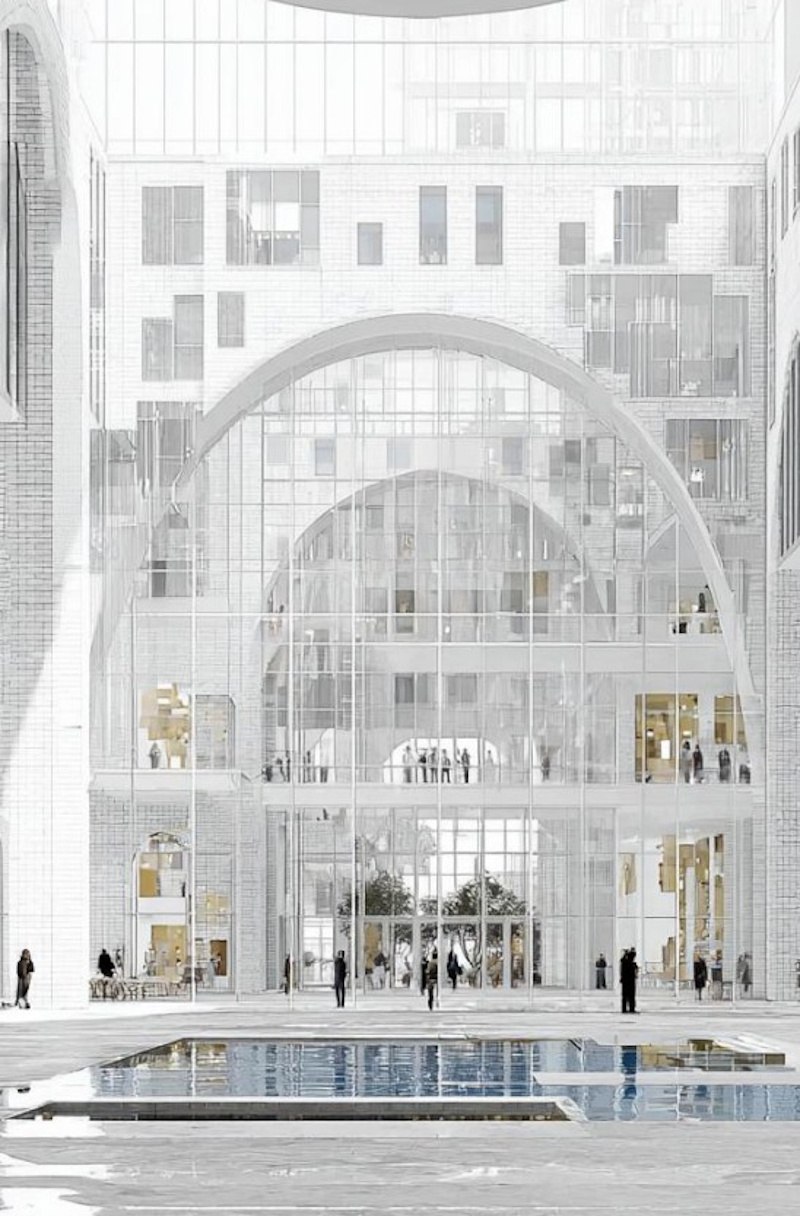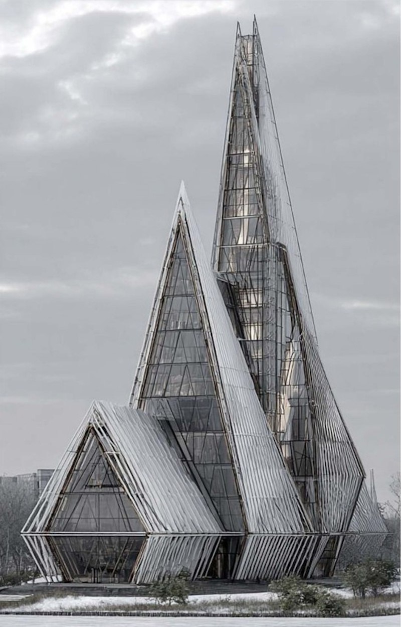 «В ходе работы мы использовали нейросеть Midjourney для генерации идей и создания рендеров. На основе полученных результатов перешли к моделированию в Revit, где разрабатывали архитектурные формы и планировочные решения».