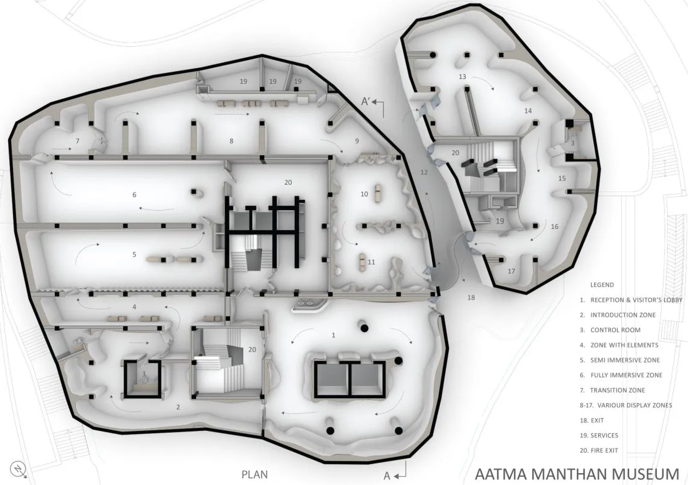 Концепция музея посвящена самоанализу и пути объединения души (Атмана), разума (мана) и тела (танна). Каждому аспекту посвящены отдельные залы с оформлением и экспозициями, изображающими различные природные стихии. Посетитель, переходя из зала в зал, проходит через определенные эмоциональные и энергетические состояния посредством дизайнерских, аудиовизуальных и иммерсивных эффектов.