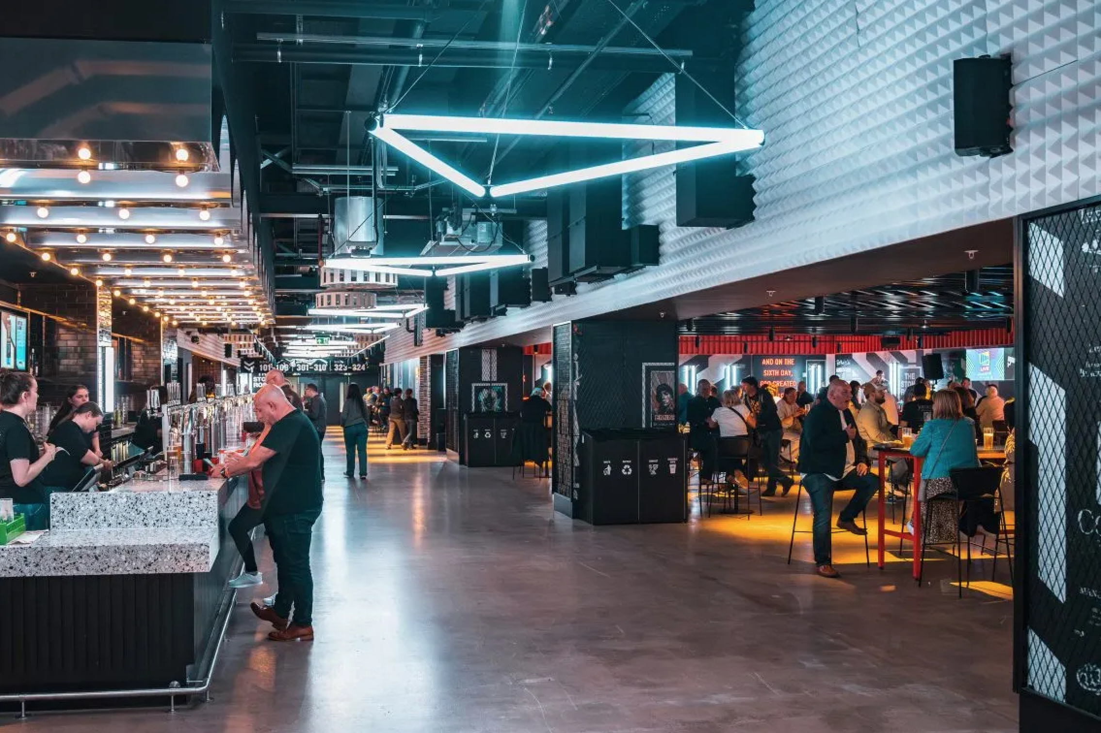 Огромный комплекс Co-op Live представляет собой крытую арену, расположенную рядом со стадионом Etihad в Манчестере, на северо-западе Англии. Под одной крышей собраны 41 заведение: бары, клубные зоны, закусочные, рестораны и даже фуд-маркет.