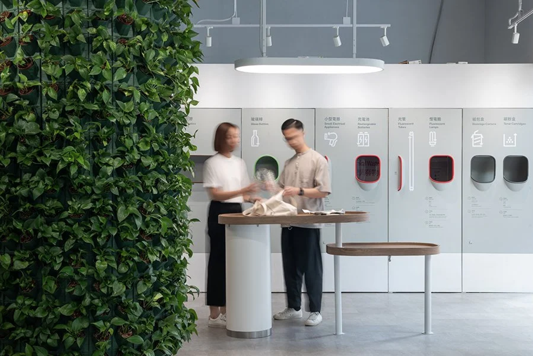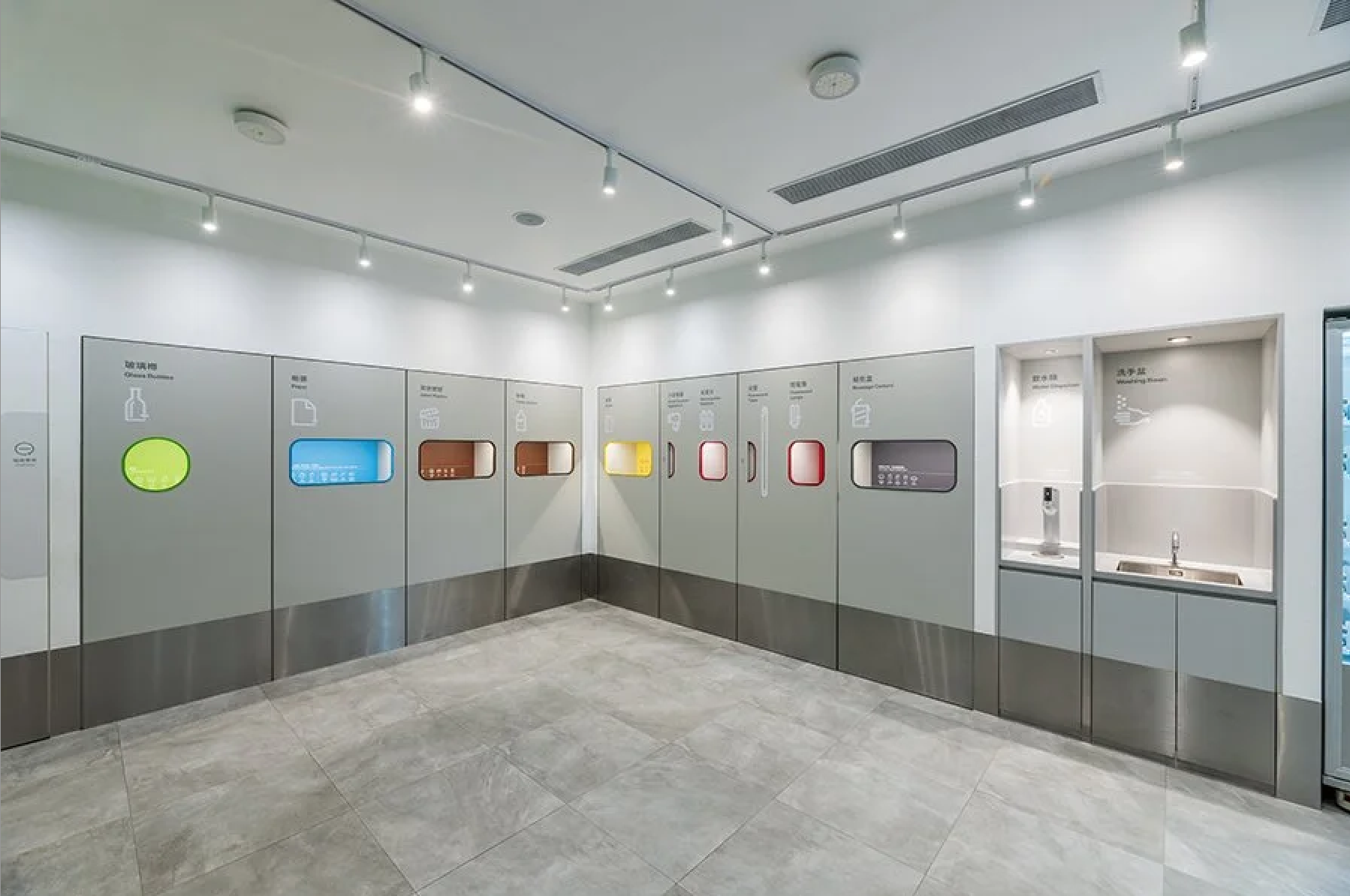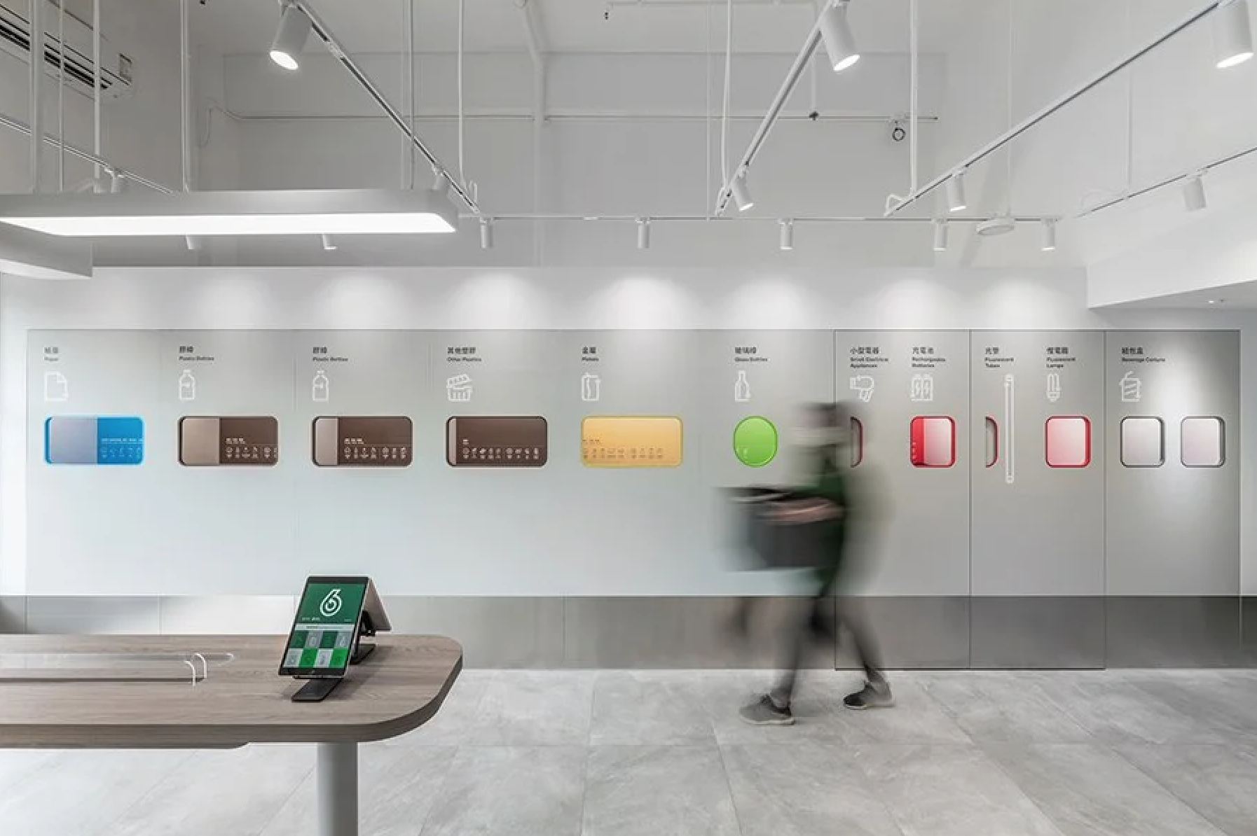 Юго-Восточная Азия вновь опережает весь мир и задает новые тренды – на этот раз в сборе и переработке отходов. Департамент охраны окружающей среды правительства Гонконга решил системно подойти к задаче популяризации и организации сбора отходов в городе и разработал программу создания специальных районных центров, где жители могут утилизировать свои отходы. Проект предусматривает создание 82 центров в 18 районах рядом с крупными жилыми комплексами. Для программы разработан дизайн-код оформления интерьеров центров с акцентом на минимализм, технологичность, эргономику и доступность. В интерьере активно используется белый цвет, олицетворяющий чистоту, и яркие позитивные цвета, символизирующие одну из девяти категорий перерабатываемых отходов. Узнаваемый стиль, автоматизация и понятная навигация делают пользование центрами простым и эффективным.