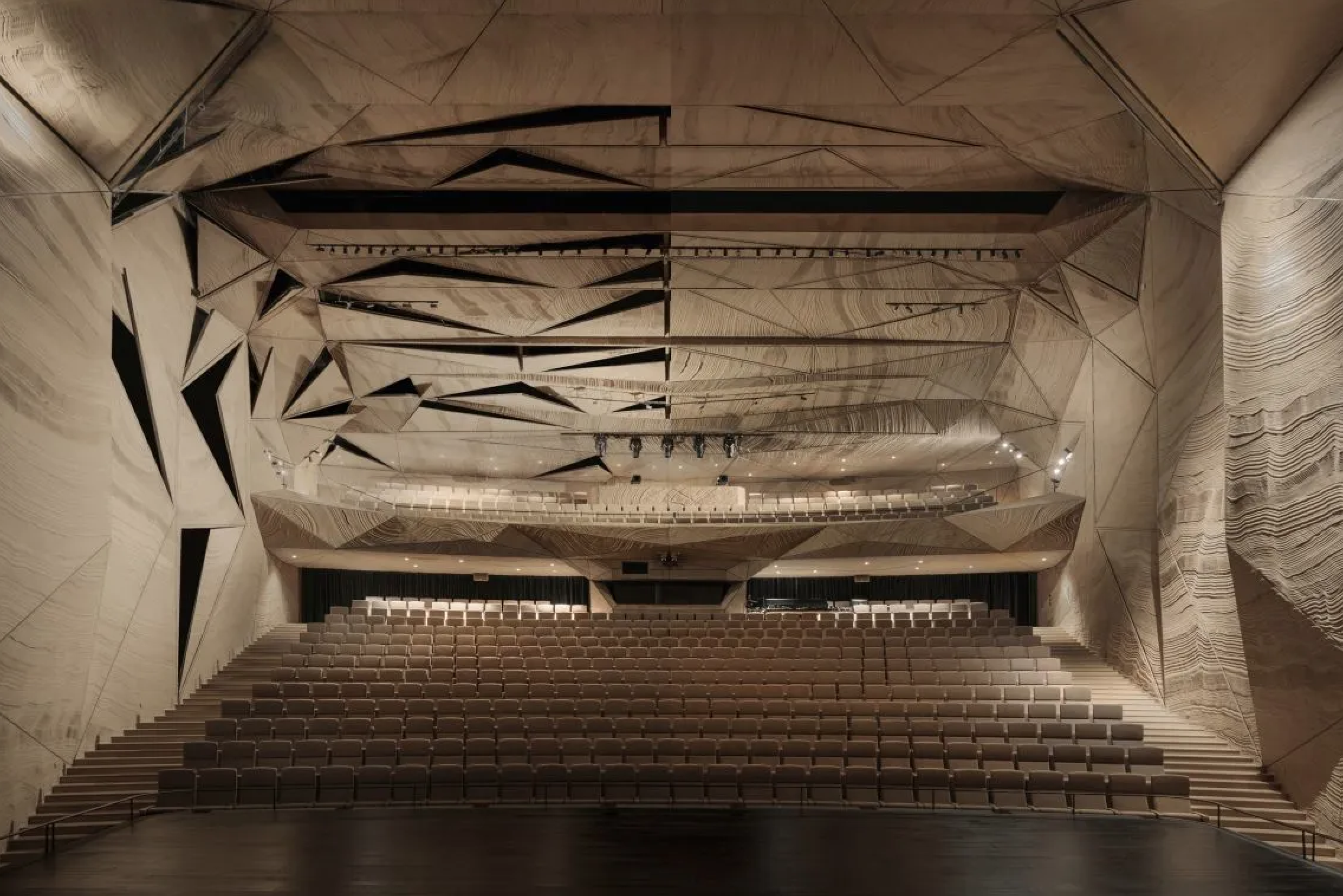 Весной 2024 года в городе Клайпеда открылось новое здание Государственного музыкального театра – крупнейшего музыкального театра Литвы. Проект здания разработали компании Inžinerinė mintis и Studio GA, а дизайн интерьеров – MAMA Architects. В интерьере архитекторы постарались передать природную эстетику побережья Балтийского моря – песчаные дюны, испещренные рябью и складками от бесконечных ветров. В противовес традиционному пышному оформлению залов и фойе здесь царит минимализм и естественность. Колористика интерьера построена на коричневатых и охристых оттенках. В фойе преобладают пластичные формы, а в зале, для обеспечения идеальной акустики, используются панели ломаной конфигурации, покрытые вручную специальной штукатуркой. Интерьерные решения включают тщательную работу с декоративной подсветкой, акцентирующей богатые фактуры.