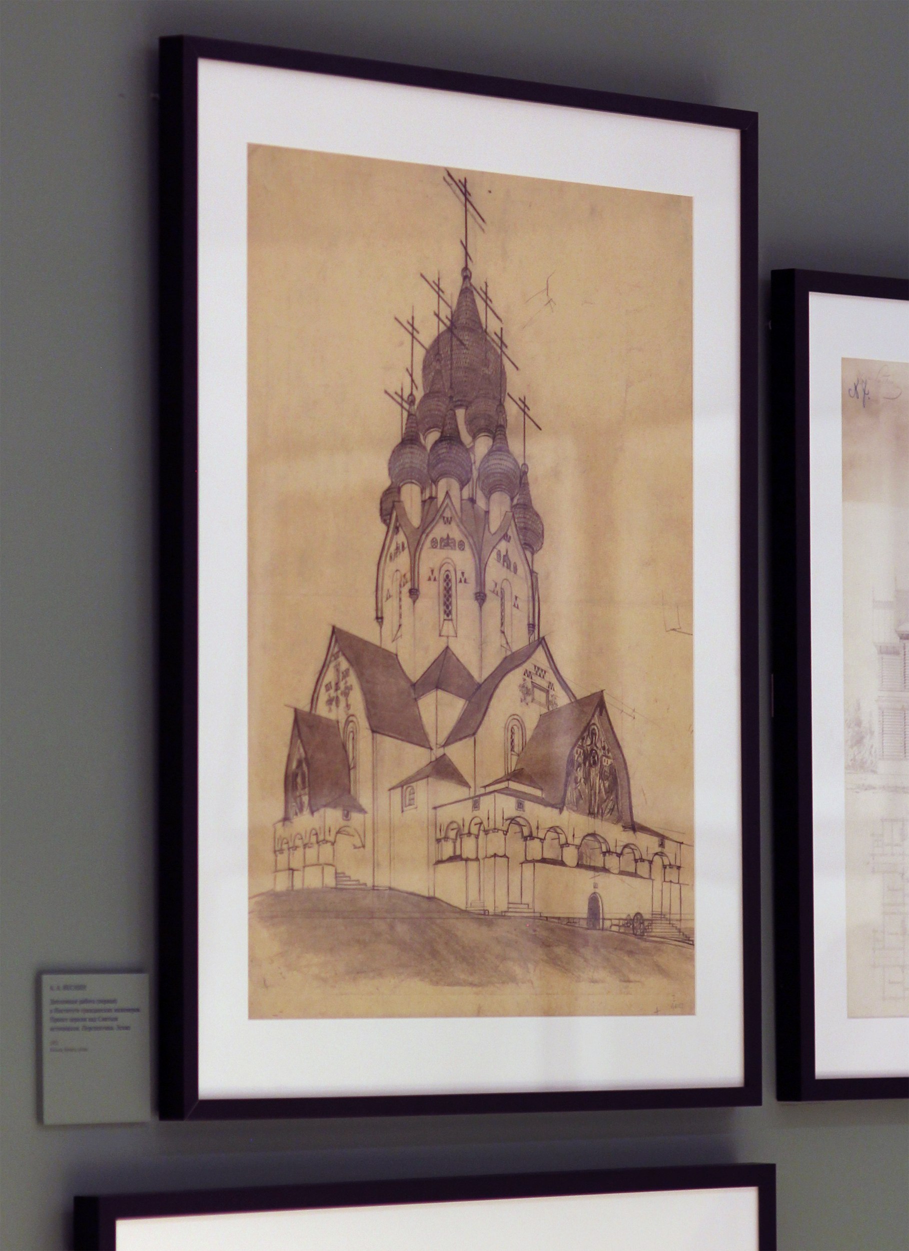 Тем не менее выставка поднимает новый, никем не виденный материал. Но главное – непривычный, не типичный, такой, какой не ждешь увидеть, идя на на открытие по ключевому слову «Веснины». Так что как остранение, так и радость узнавания гарантированы. О себе признаюсь: вроде бы изучала историю архитектуры, но год назад была искренне удивлена, увидев «многоглавые» проекты Весниных, в том числе в дипломной работе брата Александра. На выставке же присутствуют и храмы, и всем известный эскиз к первой советской праздничной демонстрации.