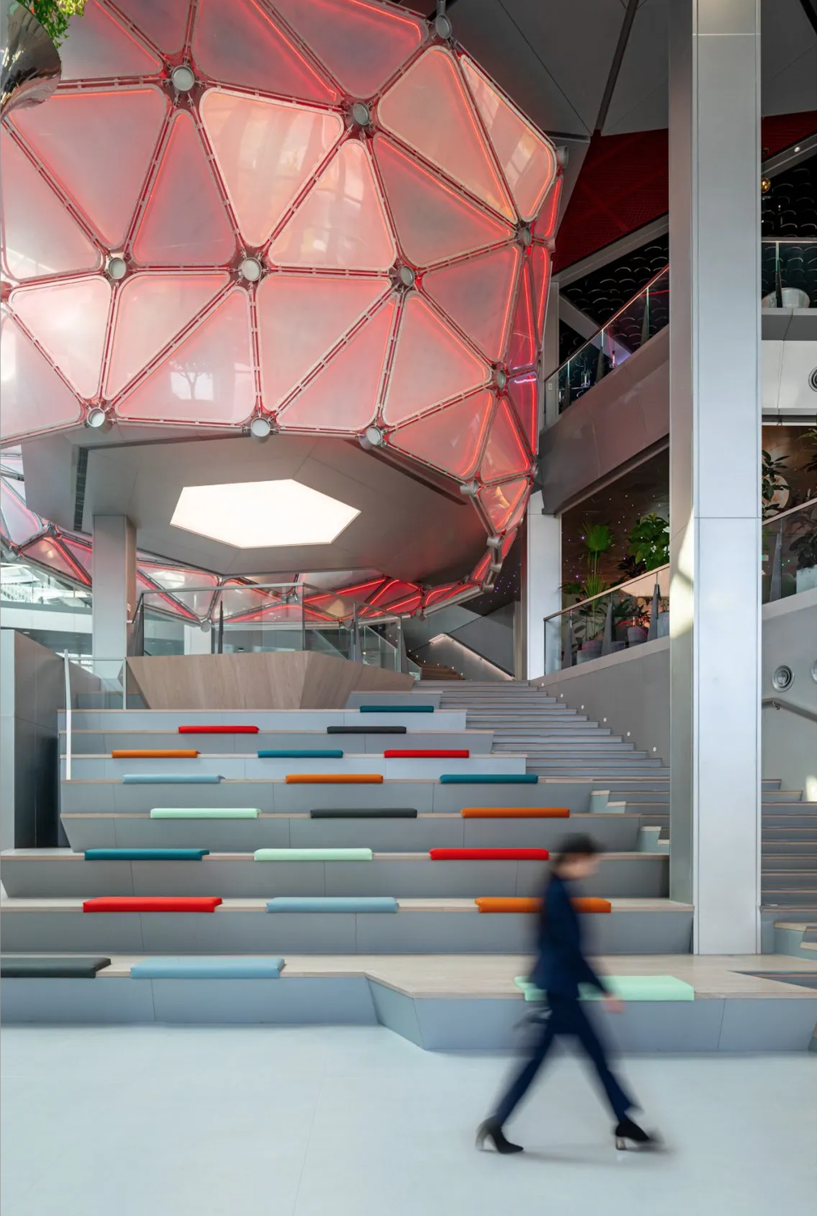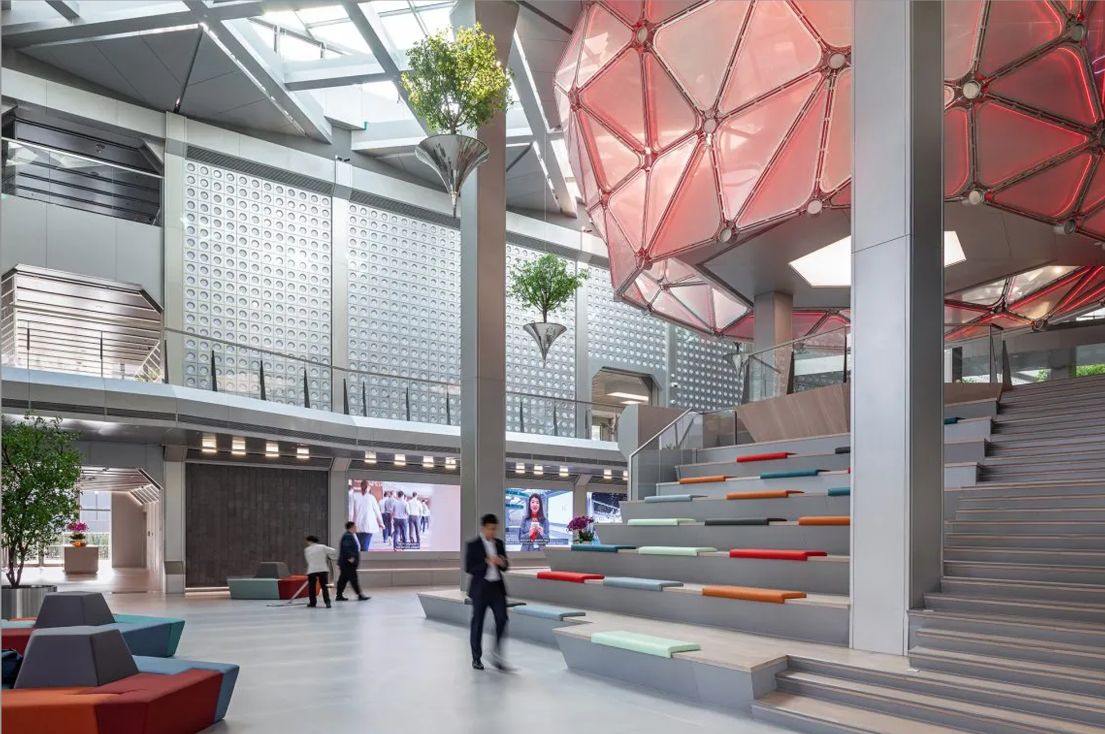 В пекинском центре используются элементы китайской культуры, благодаря которым создается оригинальный микс традиций и футуризма. Примером может служить огромная сфера в вестибюле, напоминающая традиционный китайский фонарь. Сфера сделана из двухслойной полупрозрачной пленки ETFE. Под ней устроен амфитеатр, где студенты могут заниматься и общаться.